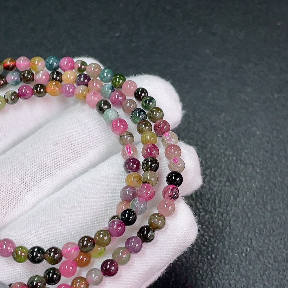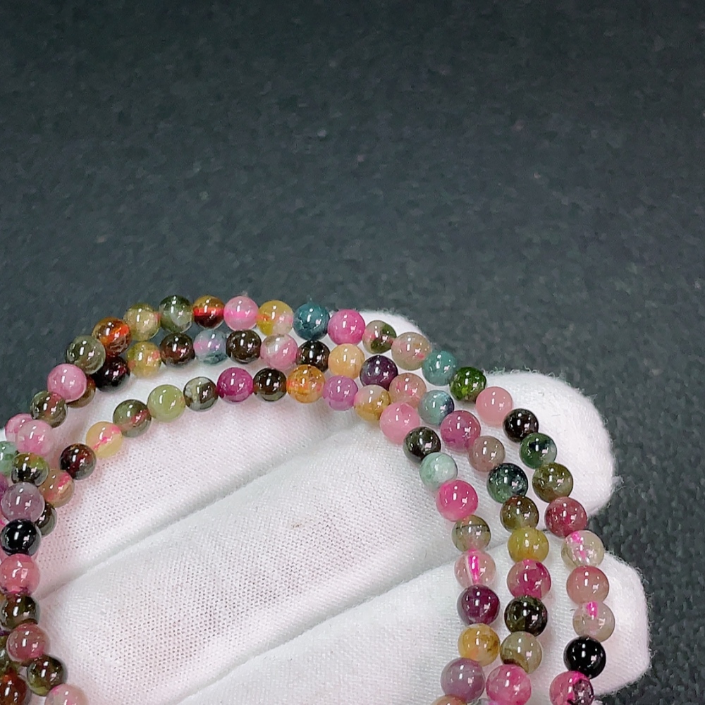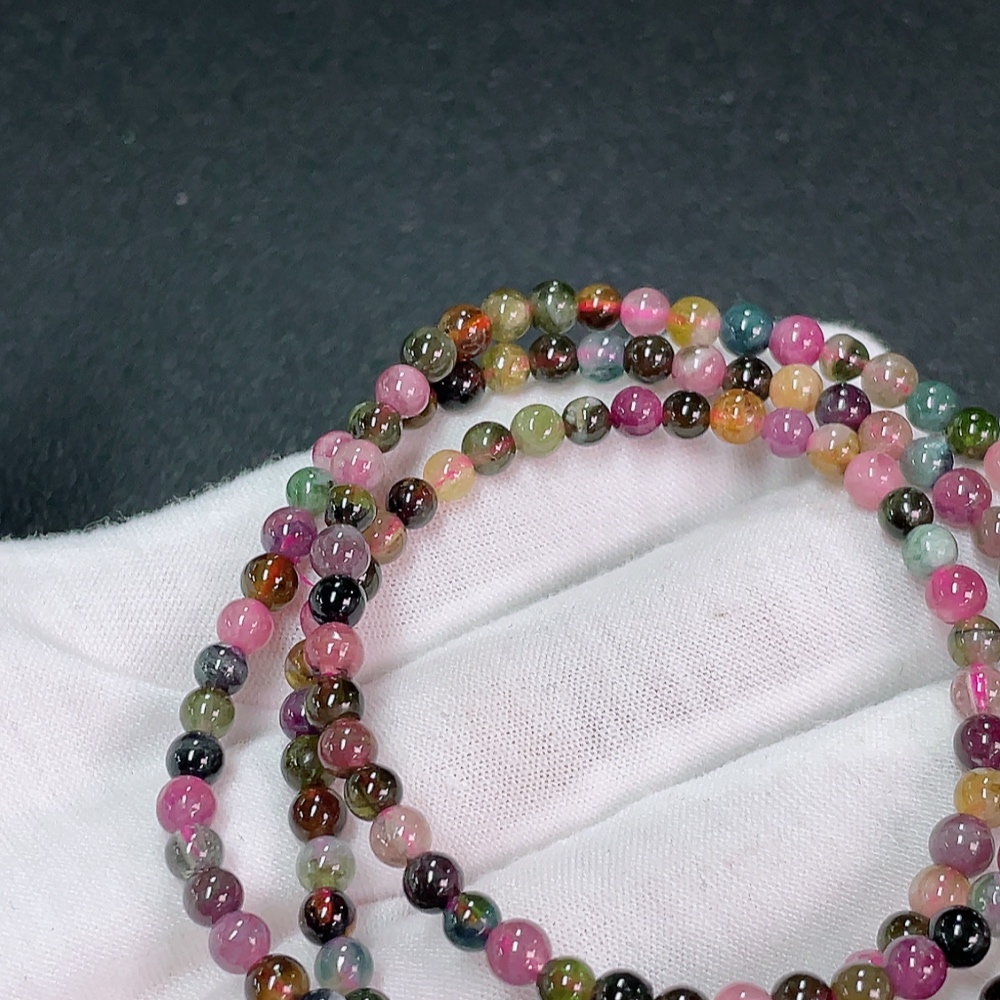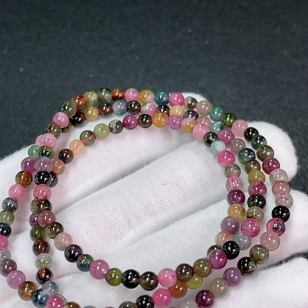Tourmaline bead bracelet containing other mineral components with visible organic matter, total weight approx. 15.1g, bead size approx. 4.2mm