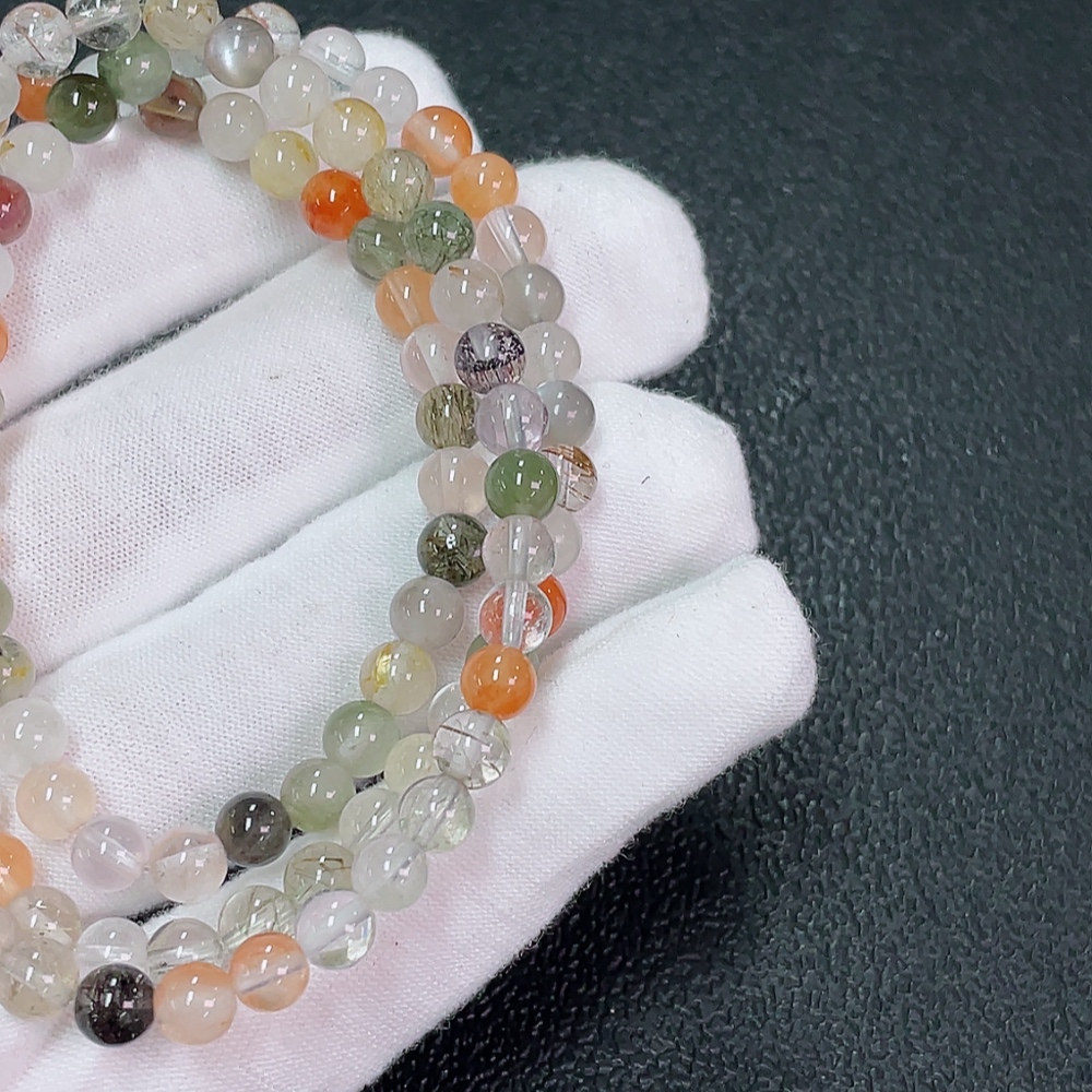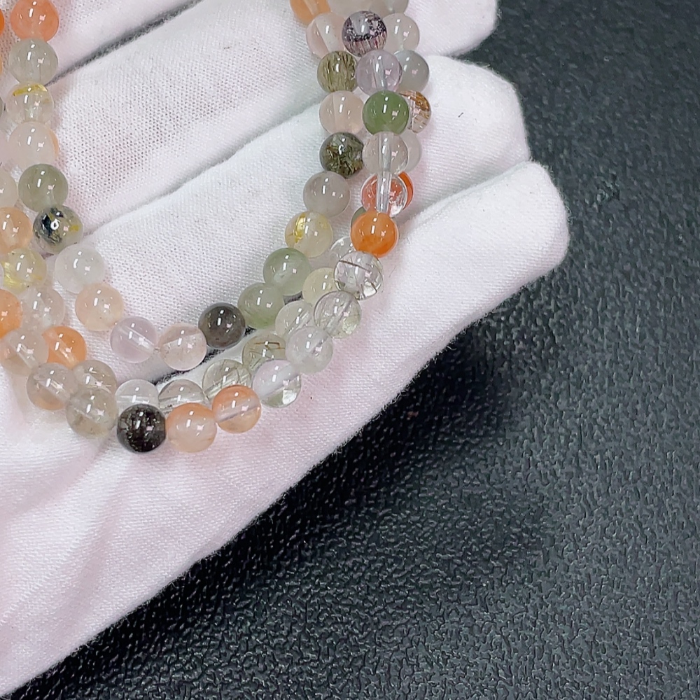 Crystal Bead Strand, Color Origin Undetermined, Visible Organic Matter, Total Weight Approx. 21.02g, Size ca. 5.4mm (Color)