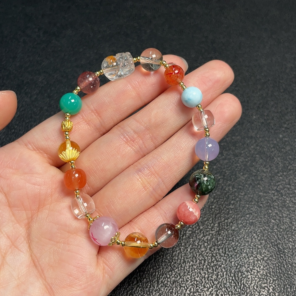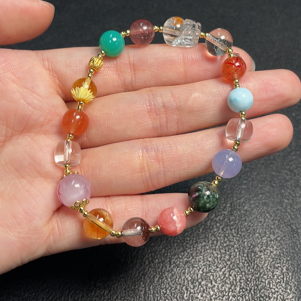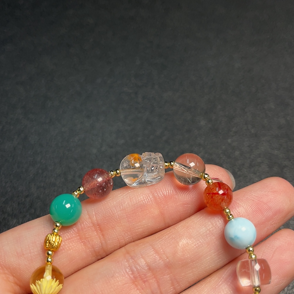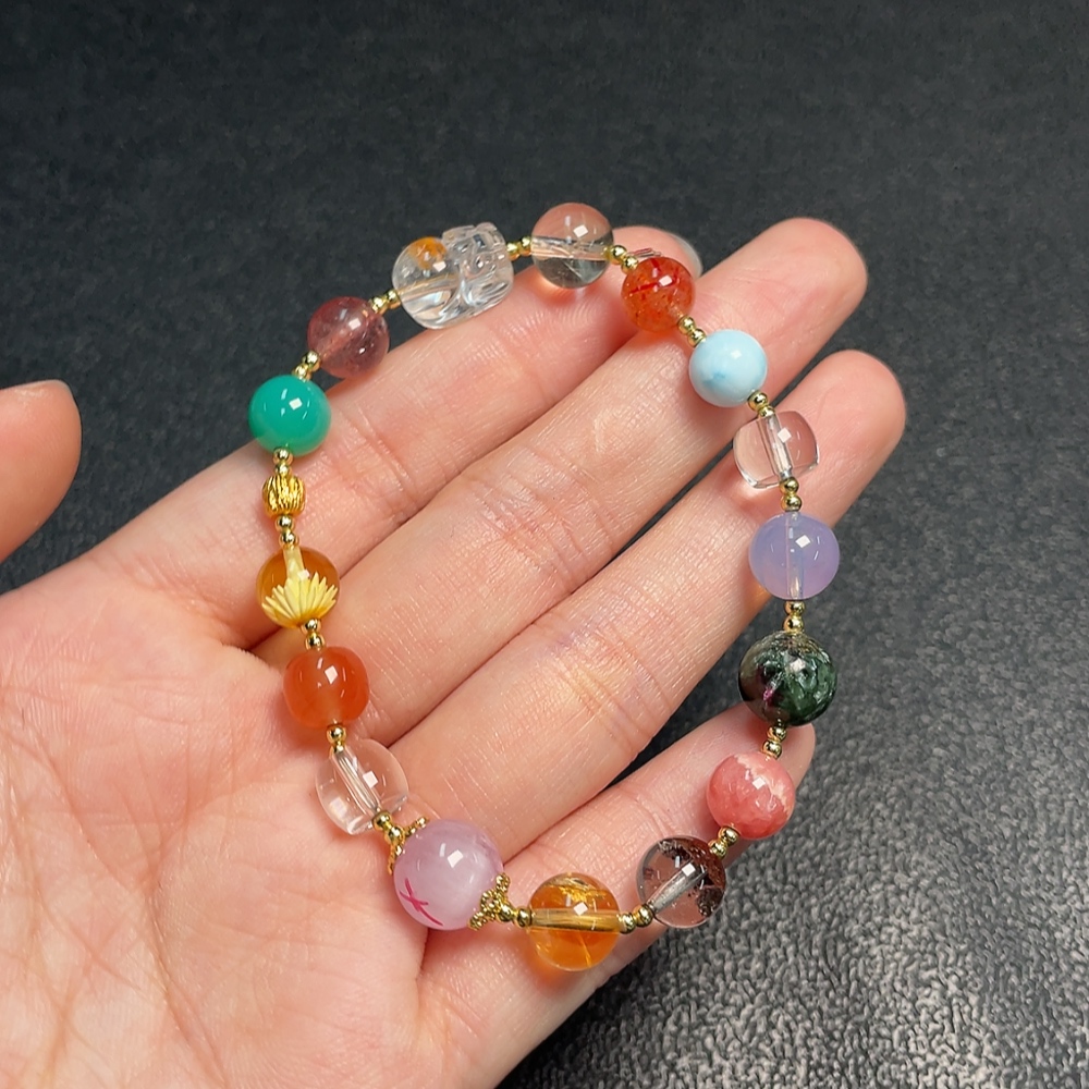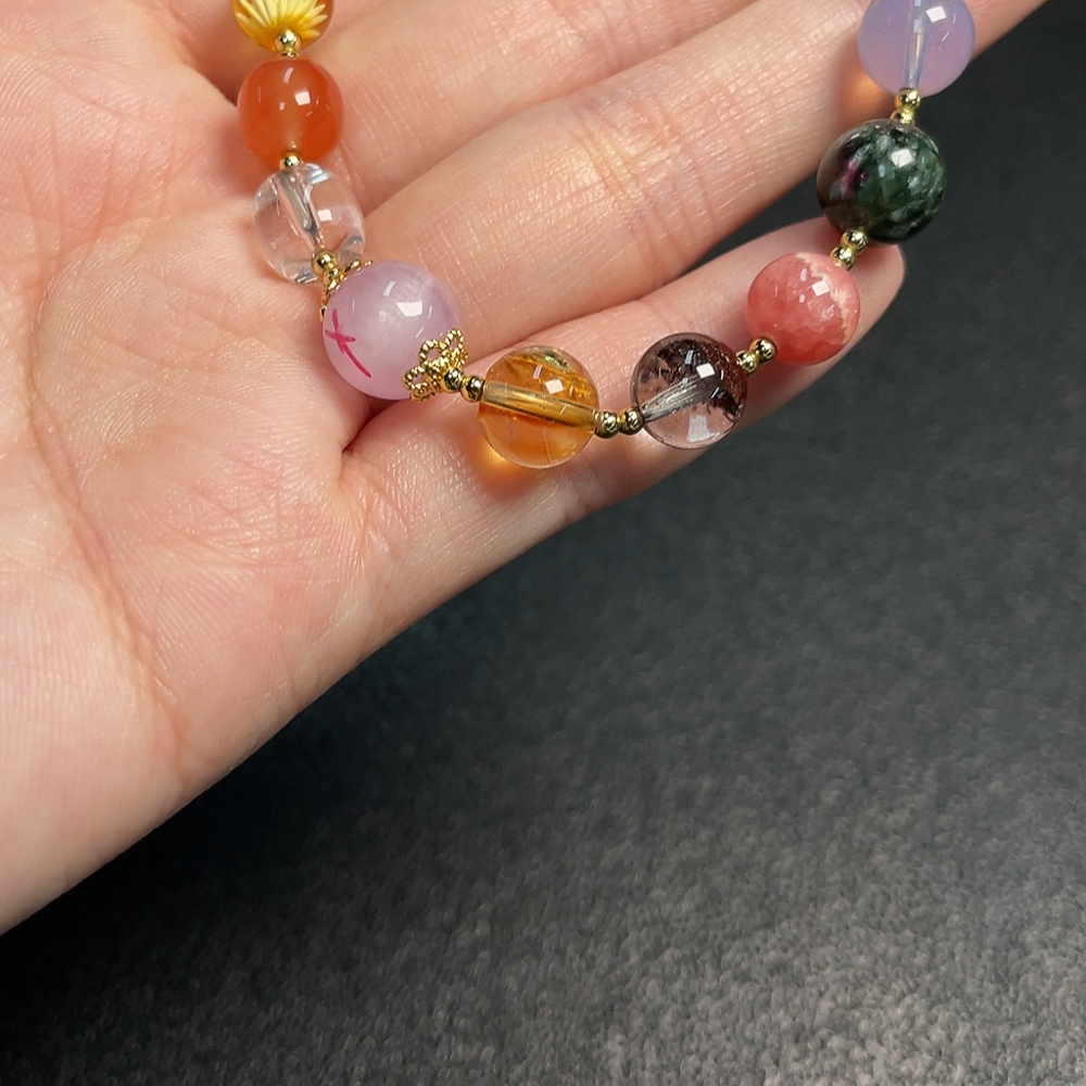 Crystal Bracelet with Southern Red Agate + Amber Beeswax + Larimar + Rhodochrosite (Non-Natural Accent Stones, Non-Gold, Total Weight Approx. 14.62g) (Assorted Stones)
