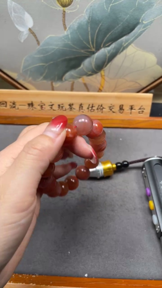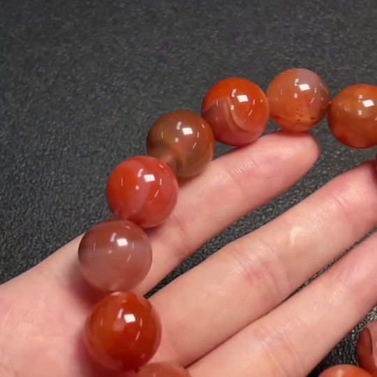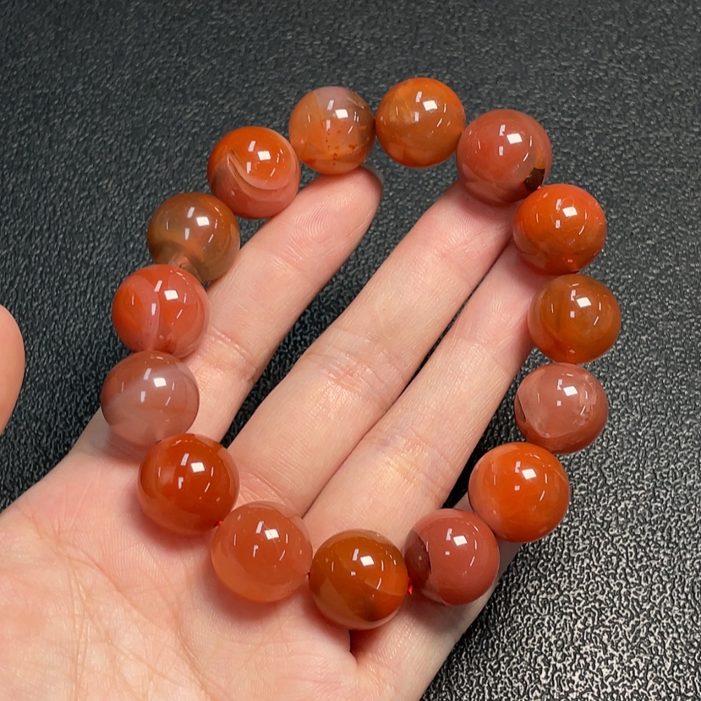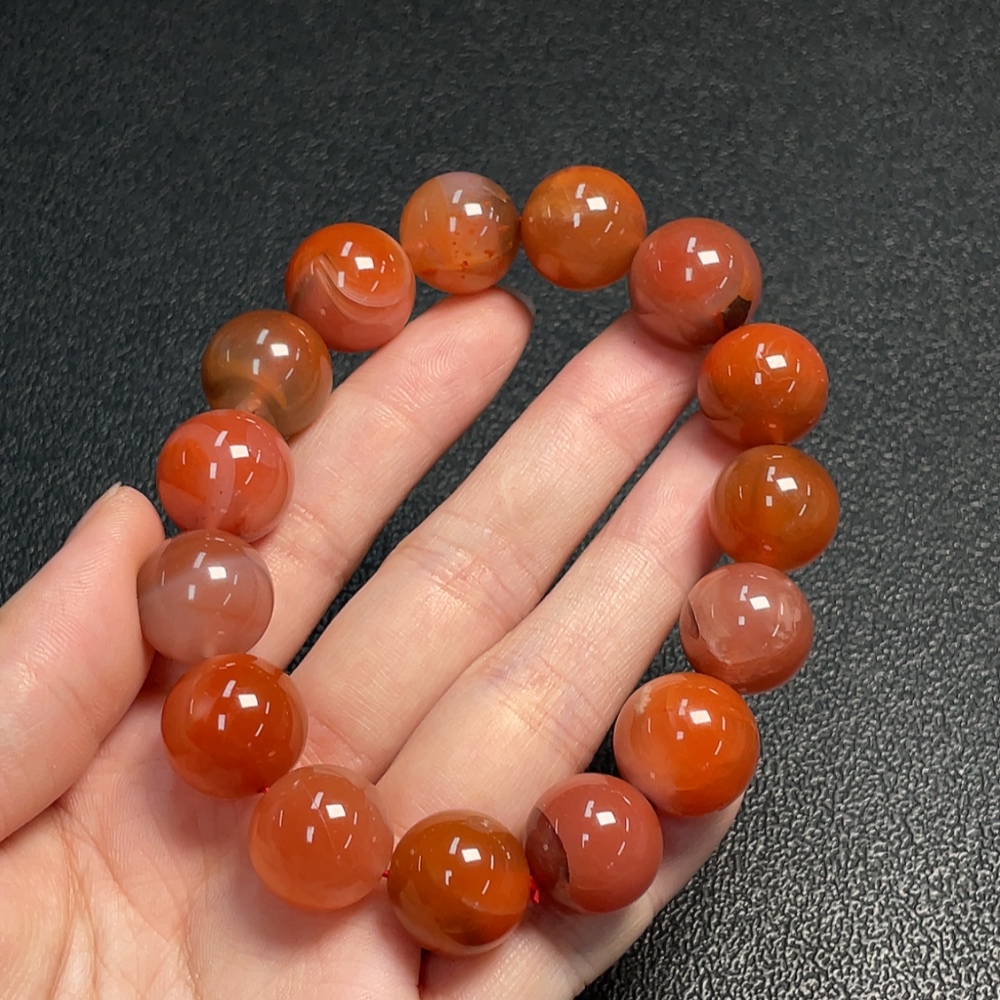 Red Agate Bracelet with Visible Organic Matter, Total Weight Approximately 75.02g, Size About 15.2mm