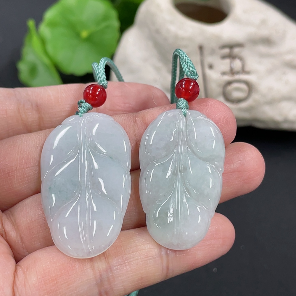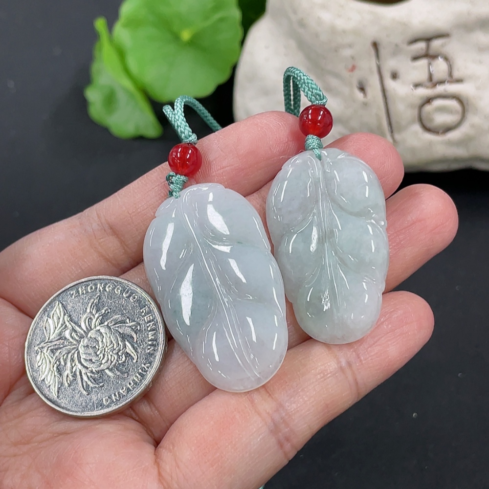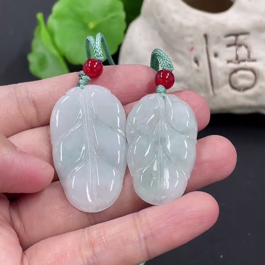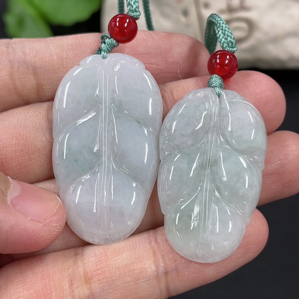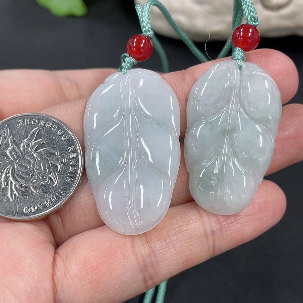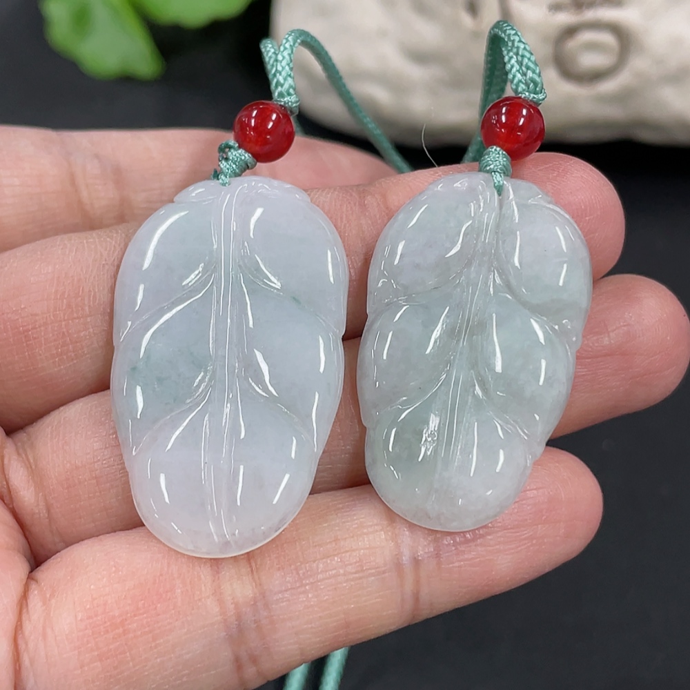 Jadeite Leaf Pendant Total Weight Approx. 12.69g With Non-Grade A Beads