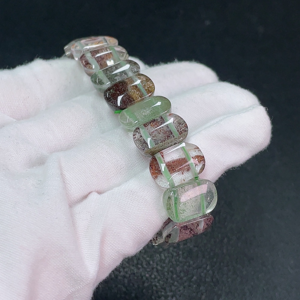 Crystal Bracelet, Color Origin Undetermined, Visible Organic Matter, Total Weight Approx. 29.67g, Size About 14.9mm (Filled)