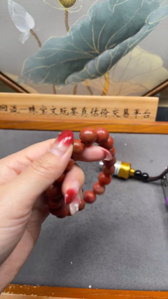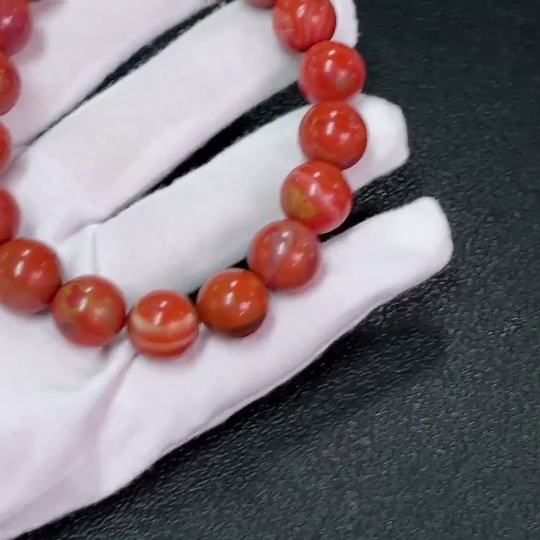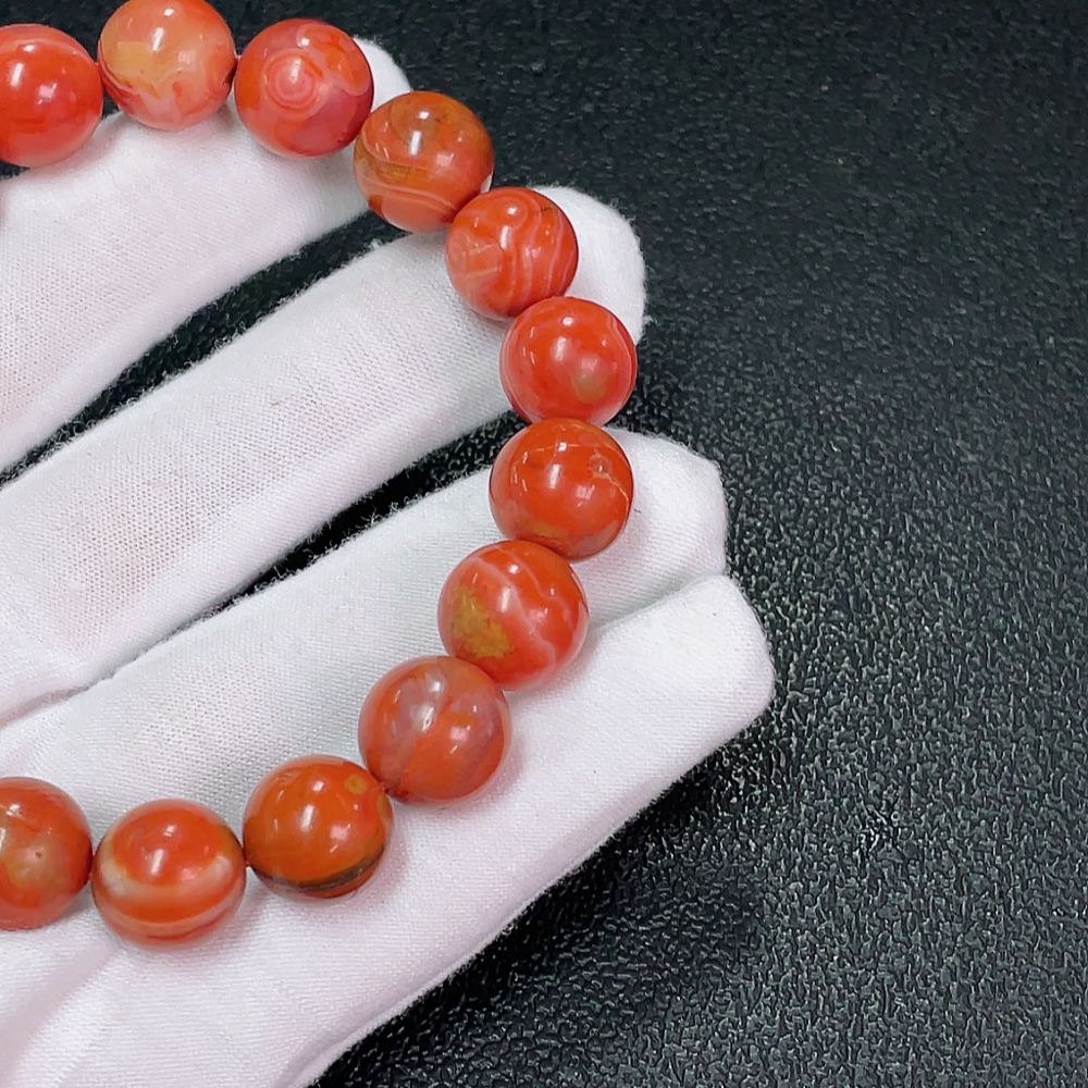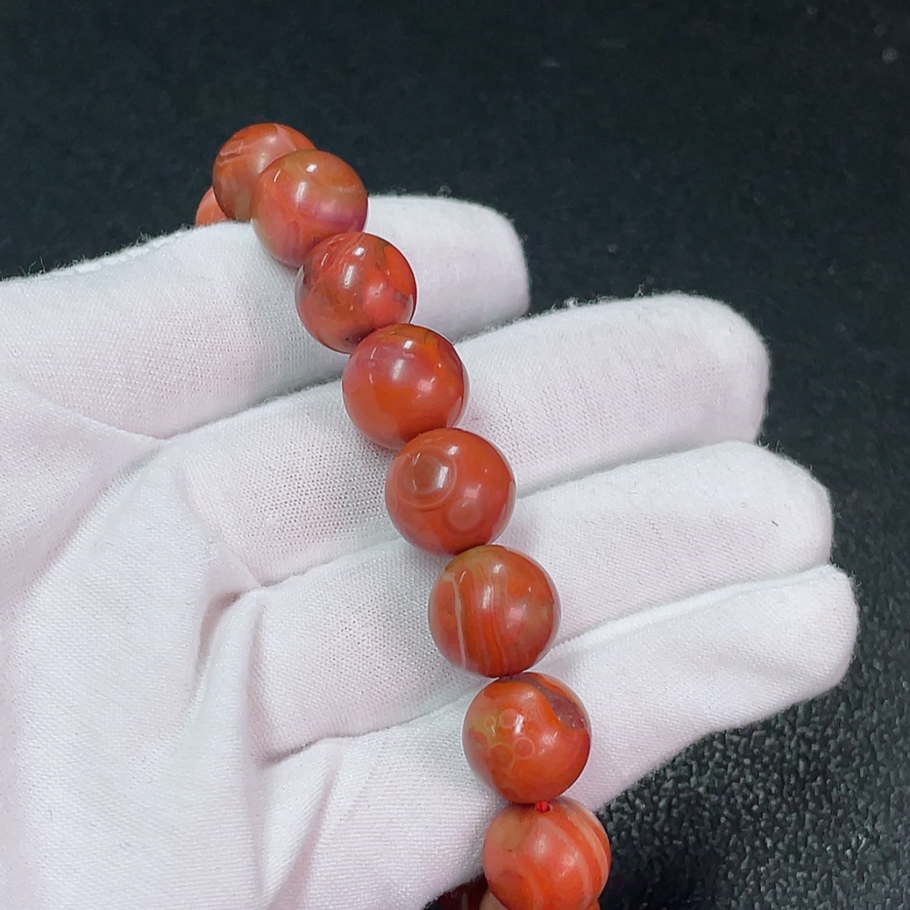 South Red Agate Bracelet with Visible Organic Matter, Total Weight Approximately 47.57g, Size About 12.5mm
