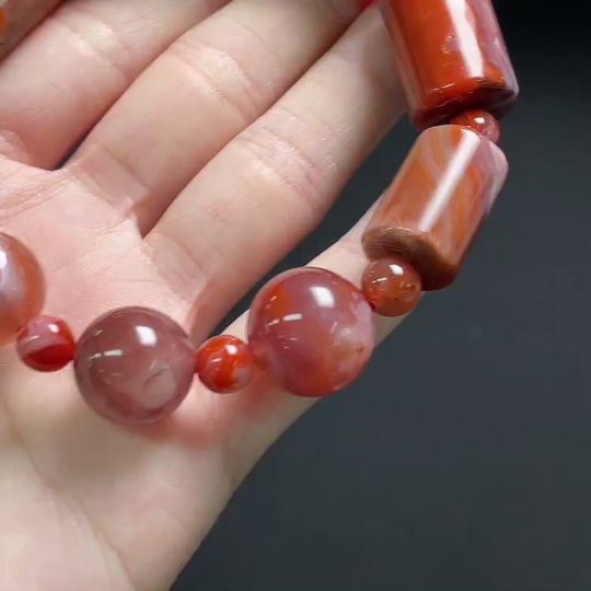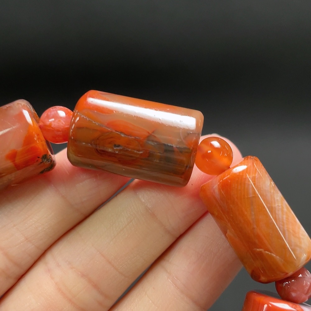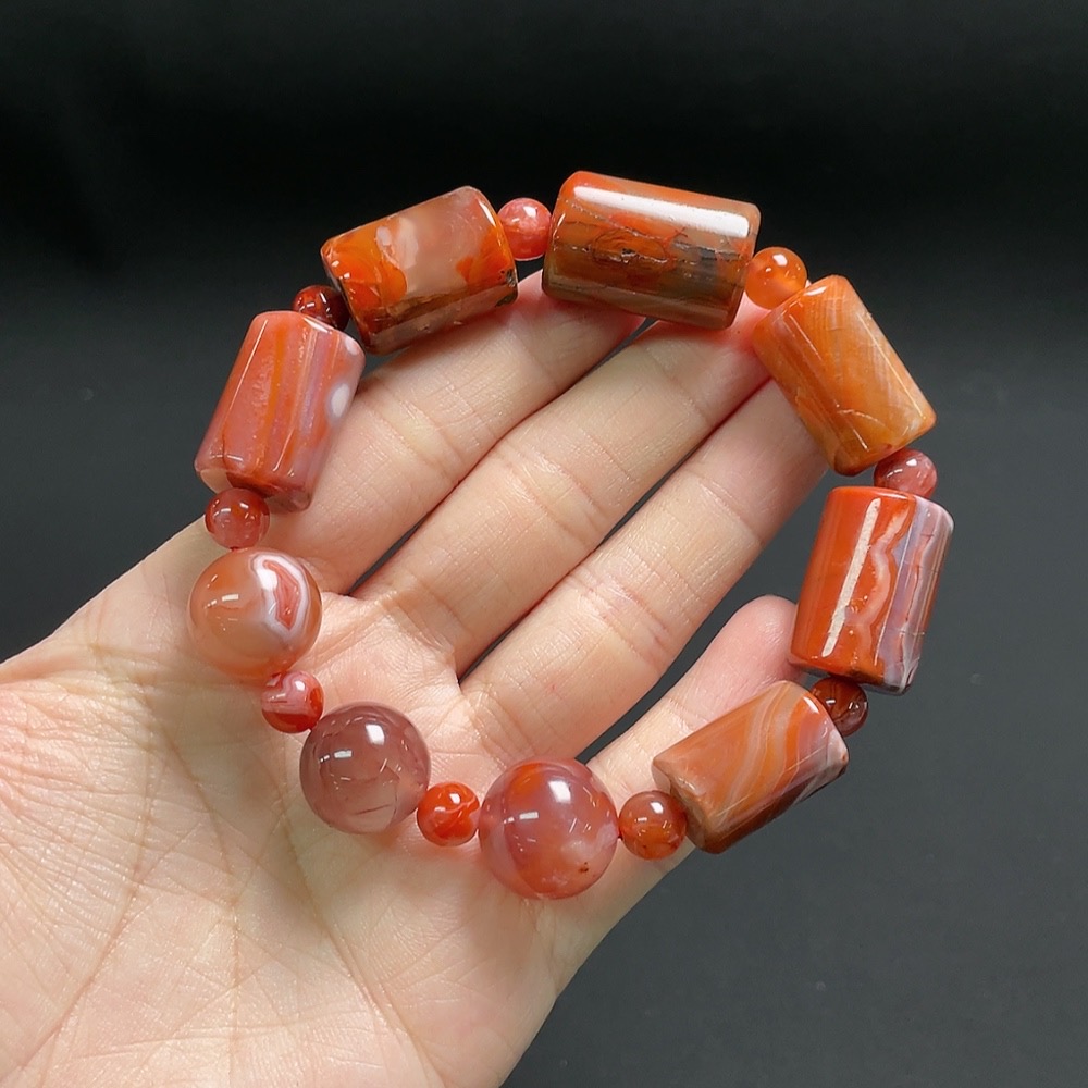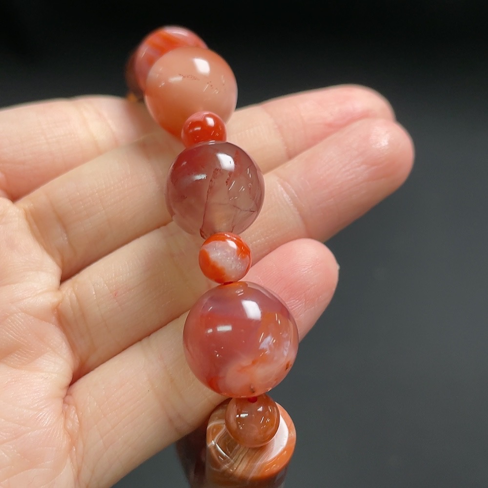 Red Agate Bracelet with Visible Organic Matter, Total Weight Approx. 56.3g, Size Approx. 14.3mm