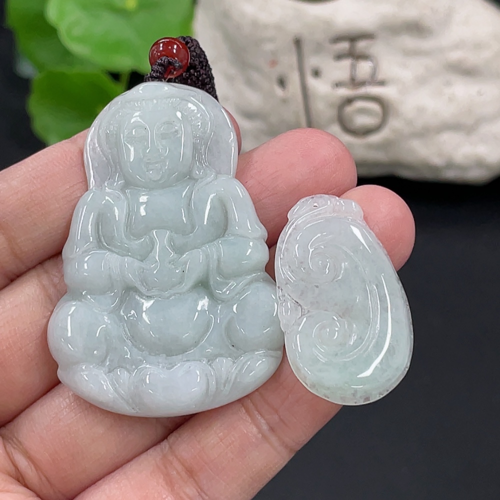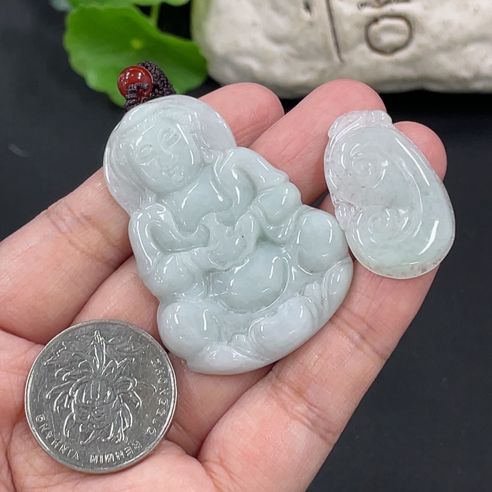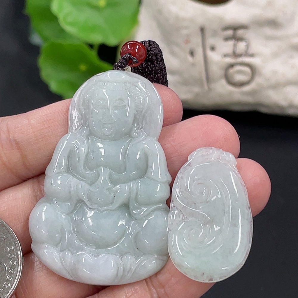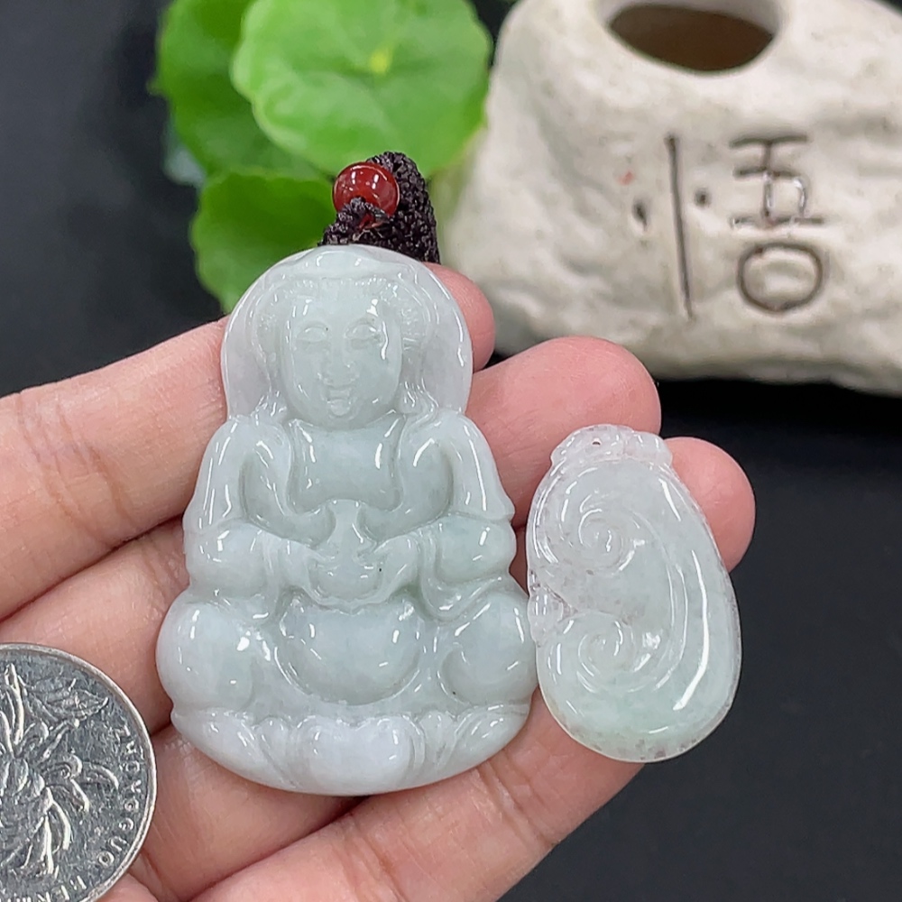 Jadeite Pendant Ruyi Guanyin Total Weight Approx. 23.3g With Non-Grade A Beads