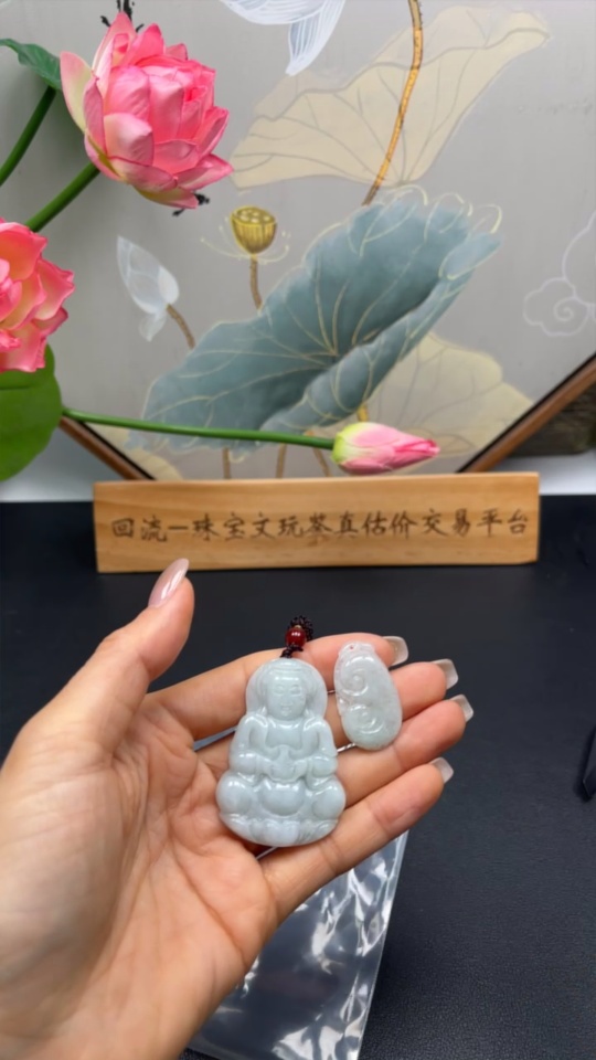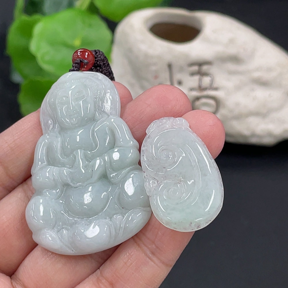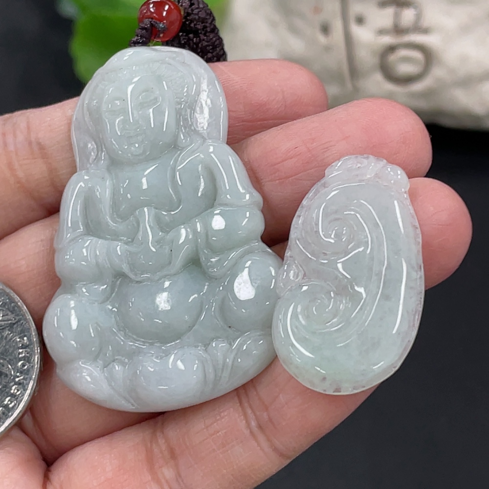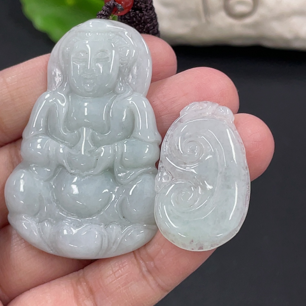 Jadeite Pendant Ruyi Guanyin Total Weight Approx. 23.3g With Non-Grade A Beads