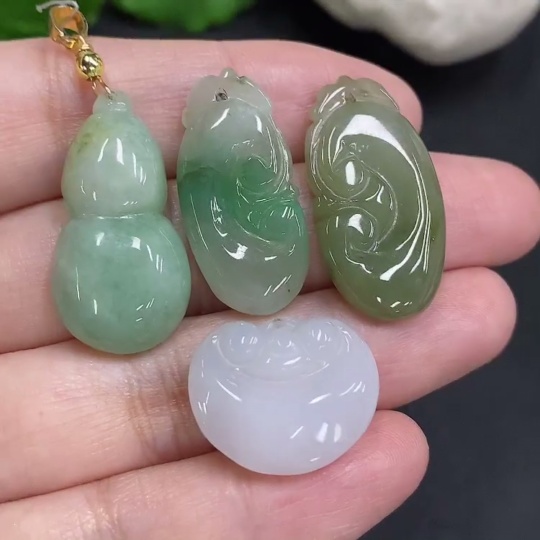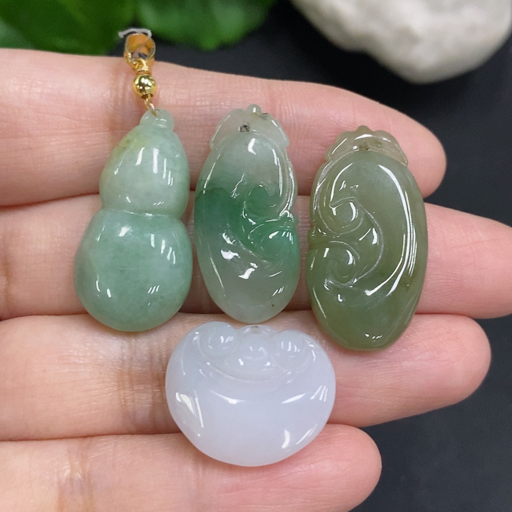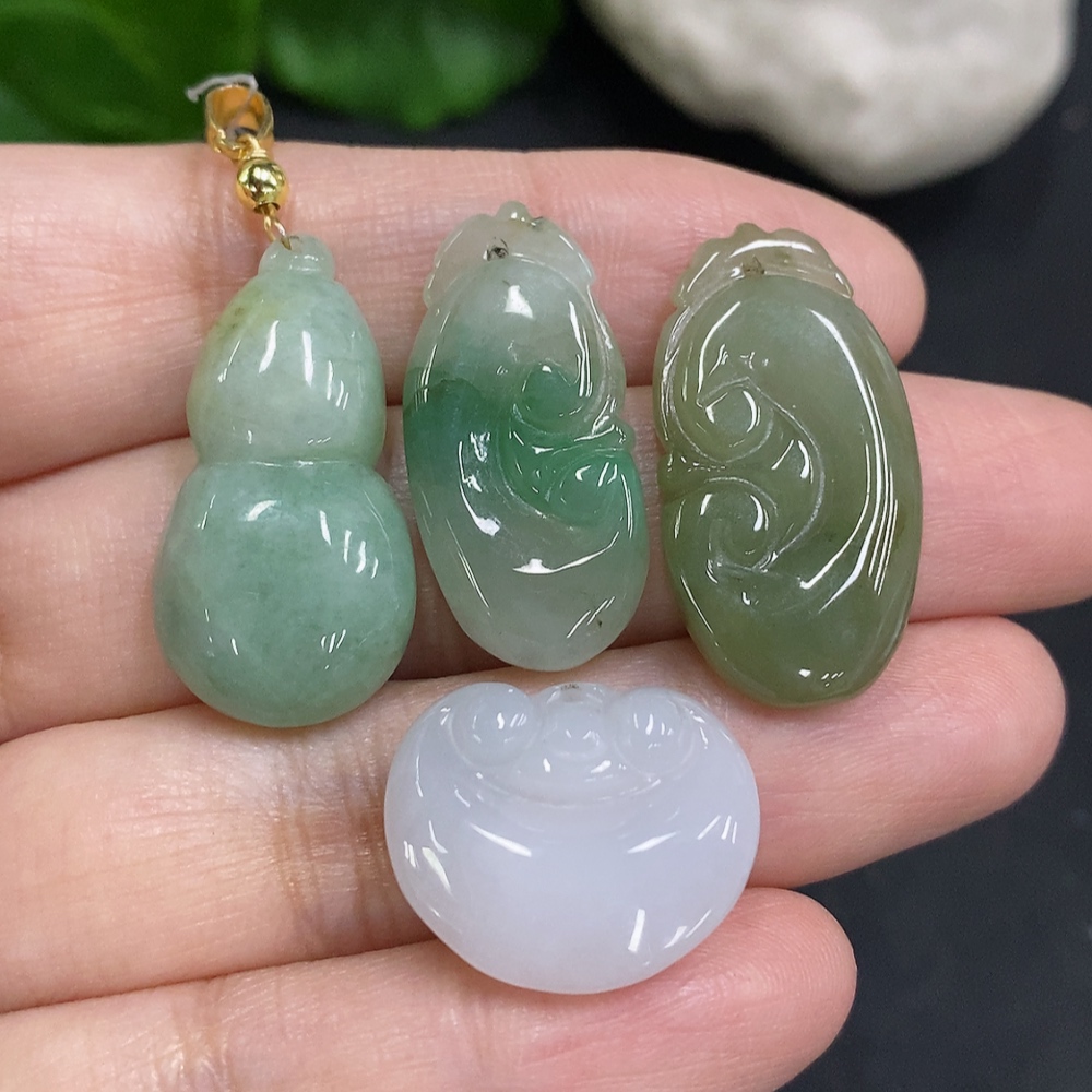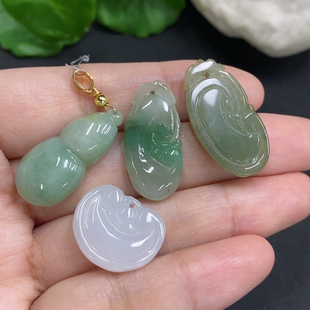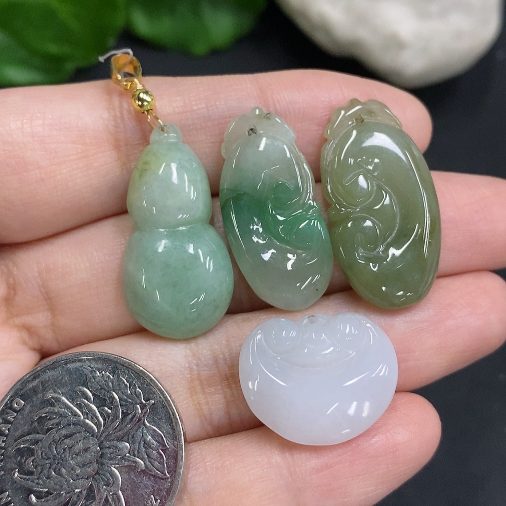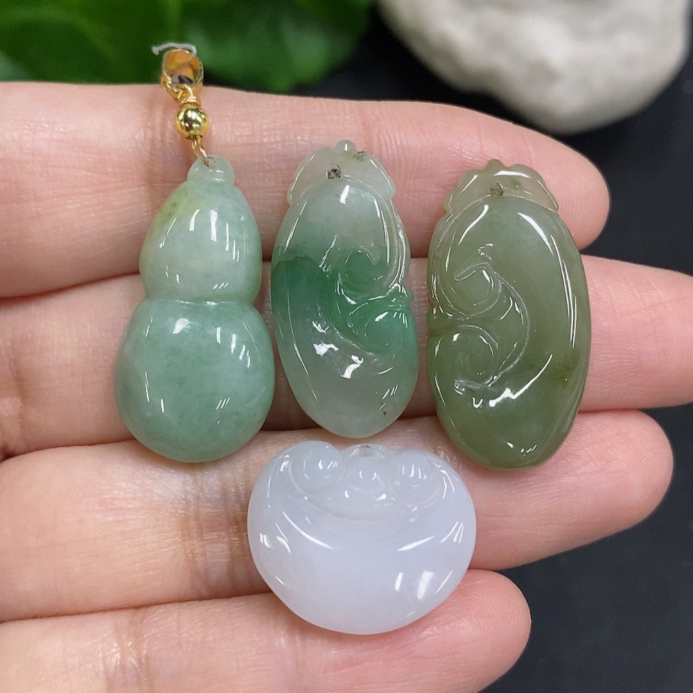 Jadeite Pendants Sell as a Lot Non-Gold Inlaid