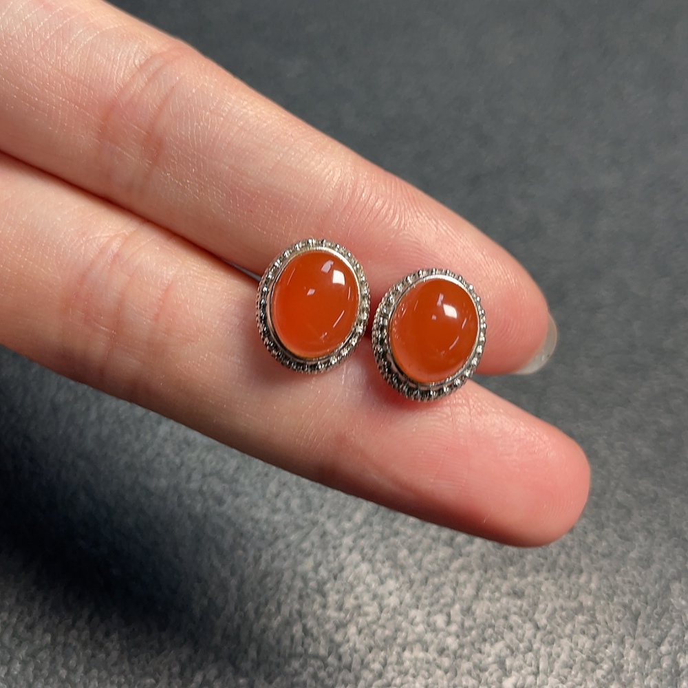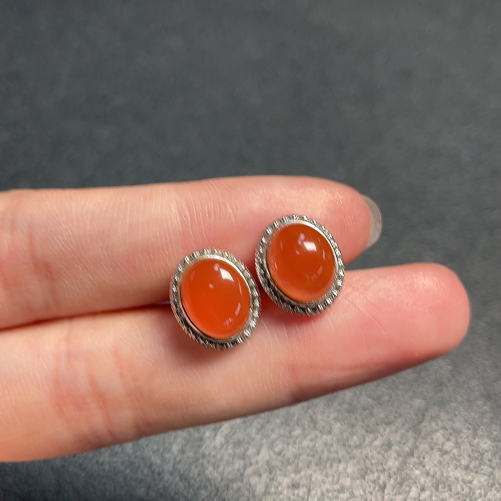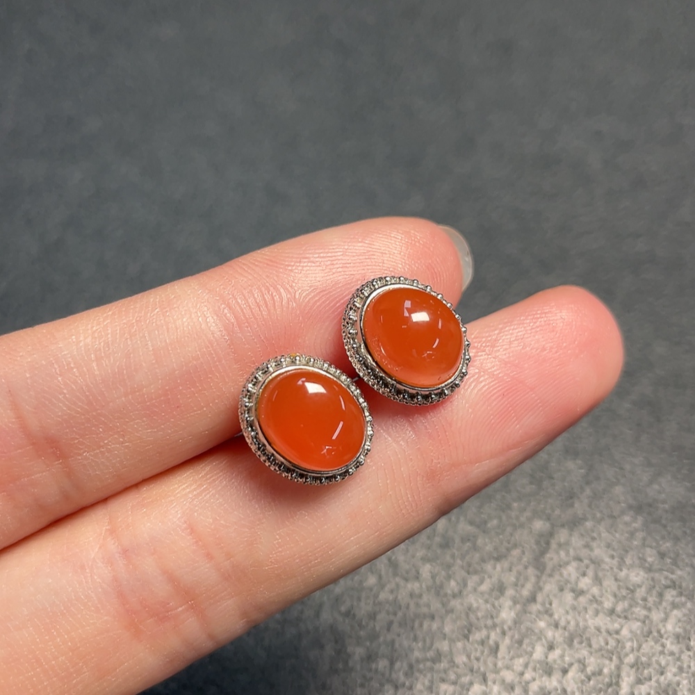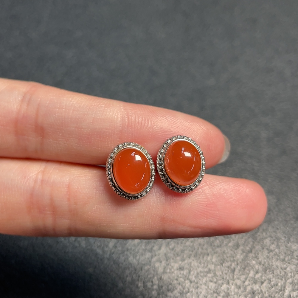 South Red Agate Earrings Non-Gold Total Weight Approx. 2.79g
