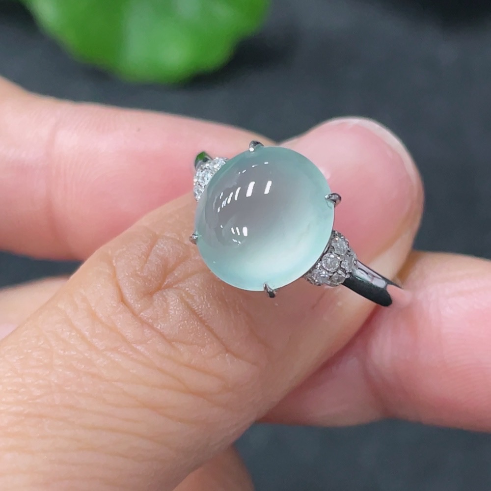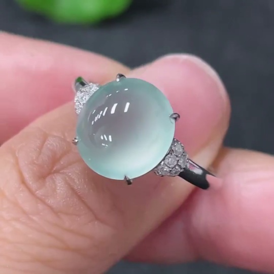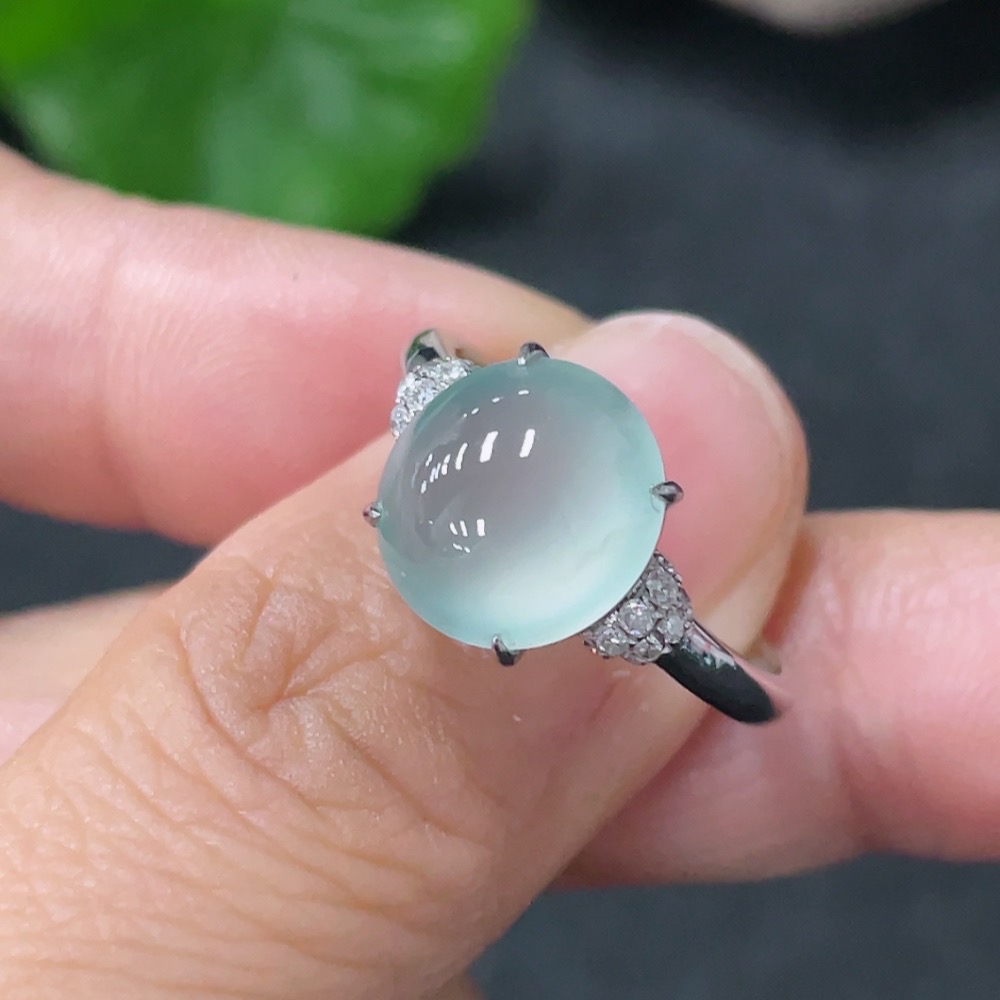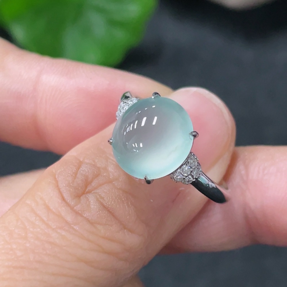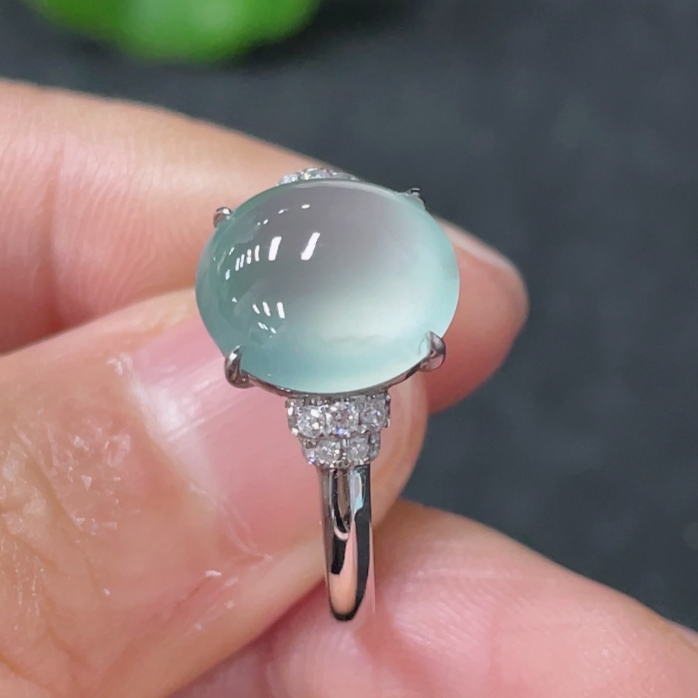 Jadeite Inlaid Ring 18k with Diamond Accents Size 14 Total Weight Approx. 2.87g