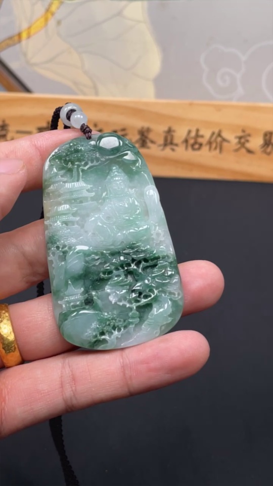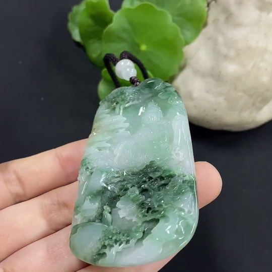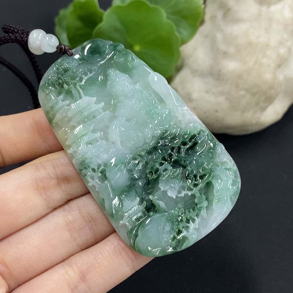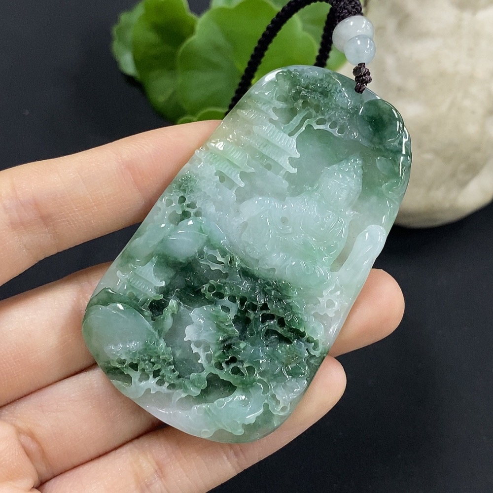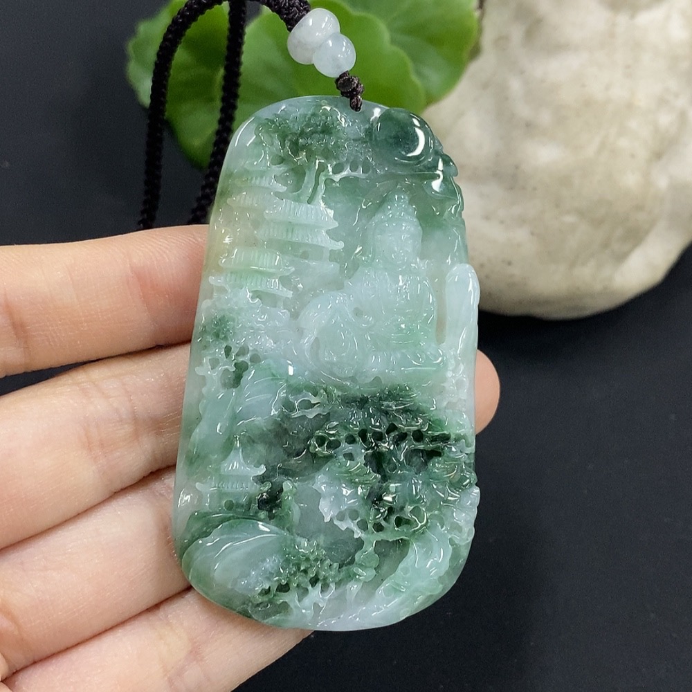 Jadeite Landscape Guanyin Pendant Total Weight Approx. 33.77g with Non-Grade A Beads