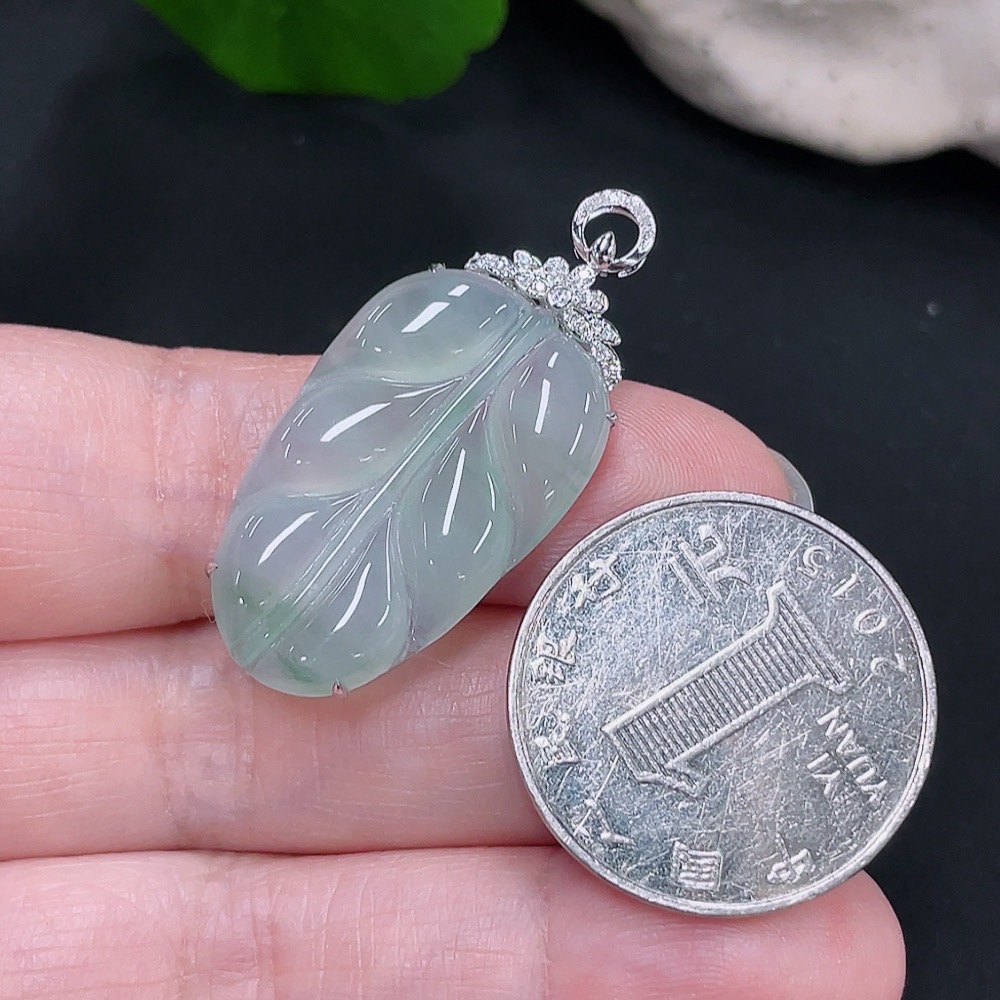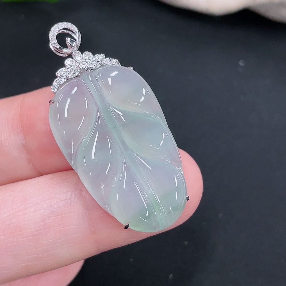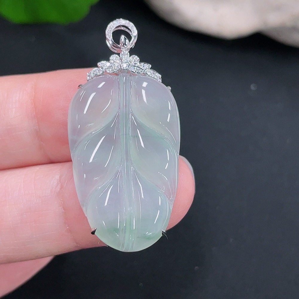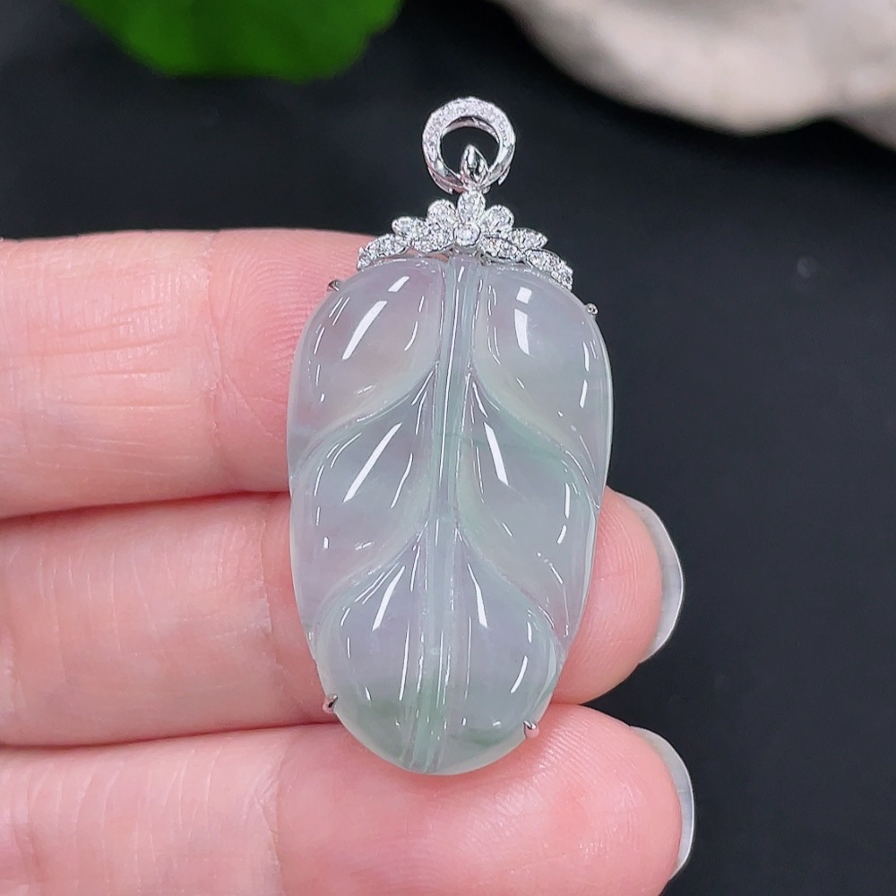 Jadeite Pendant Leaf 18k with Diamond Accents Total Weight Approx. 4.34g