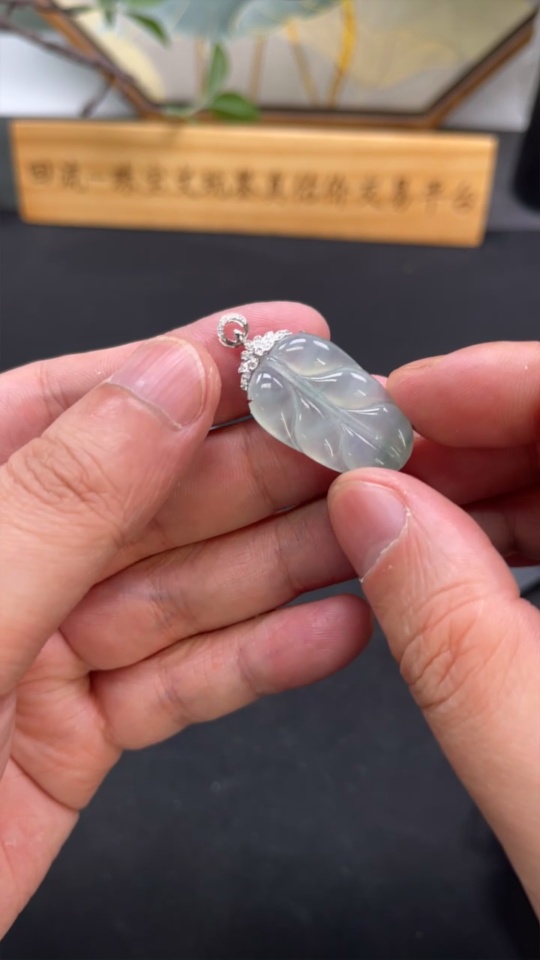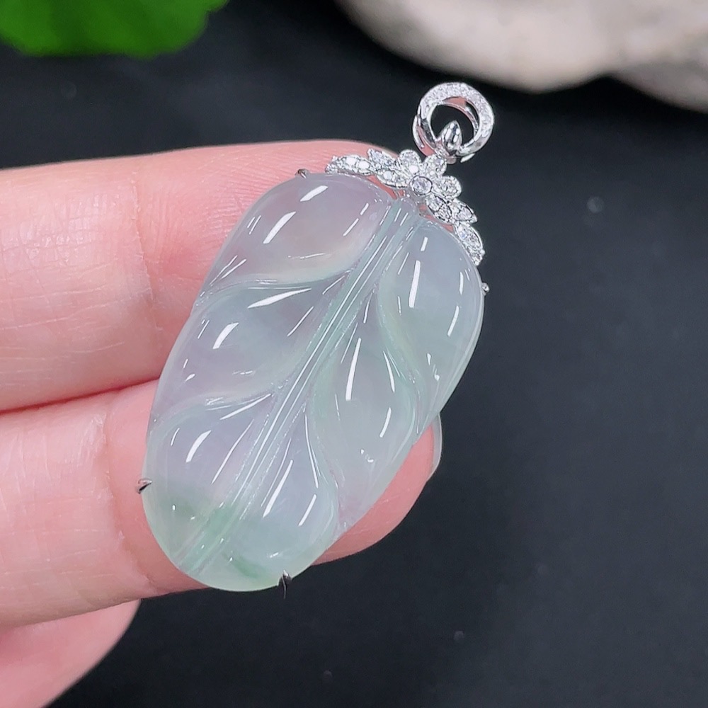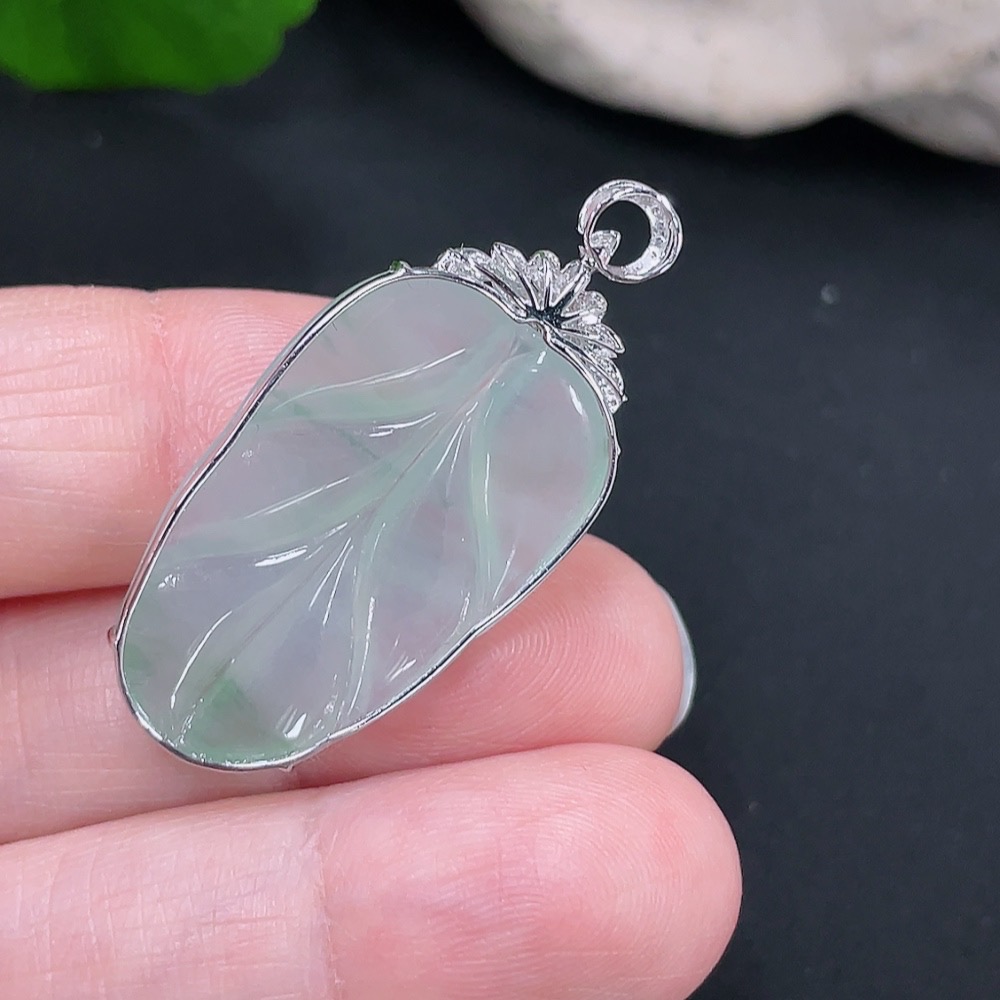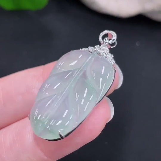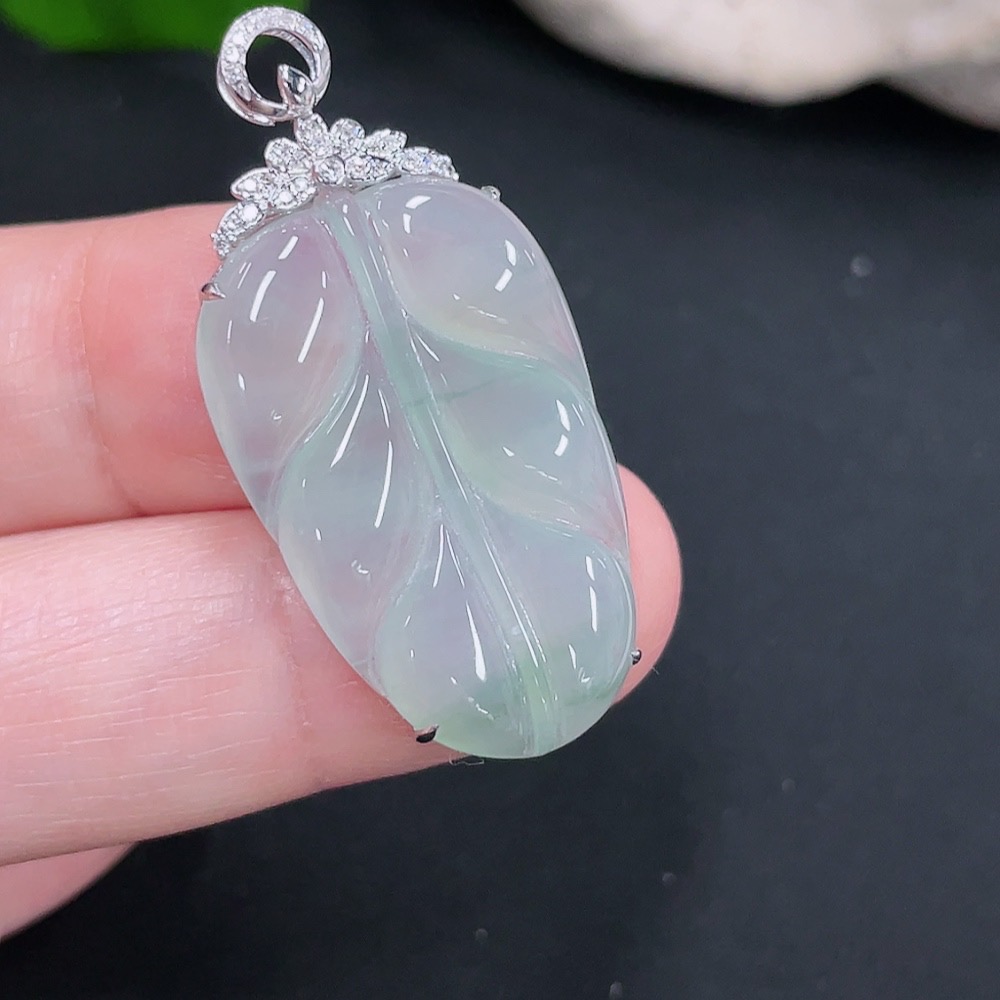 Jadeite Pendant Leaf 18k with Diamond Accents Total Weight Approx. 4.34g