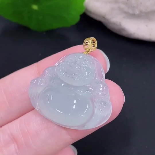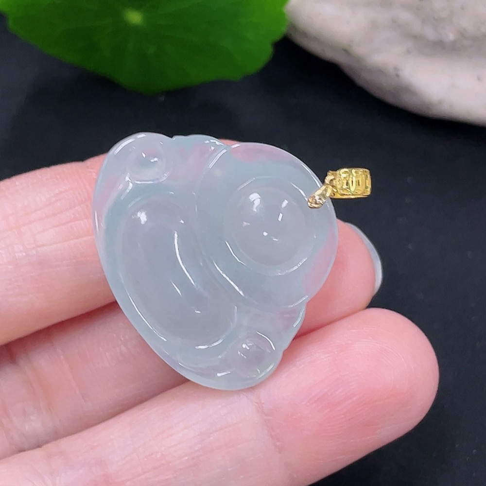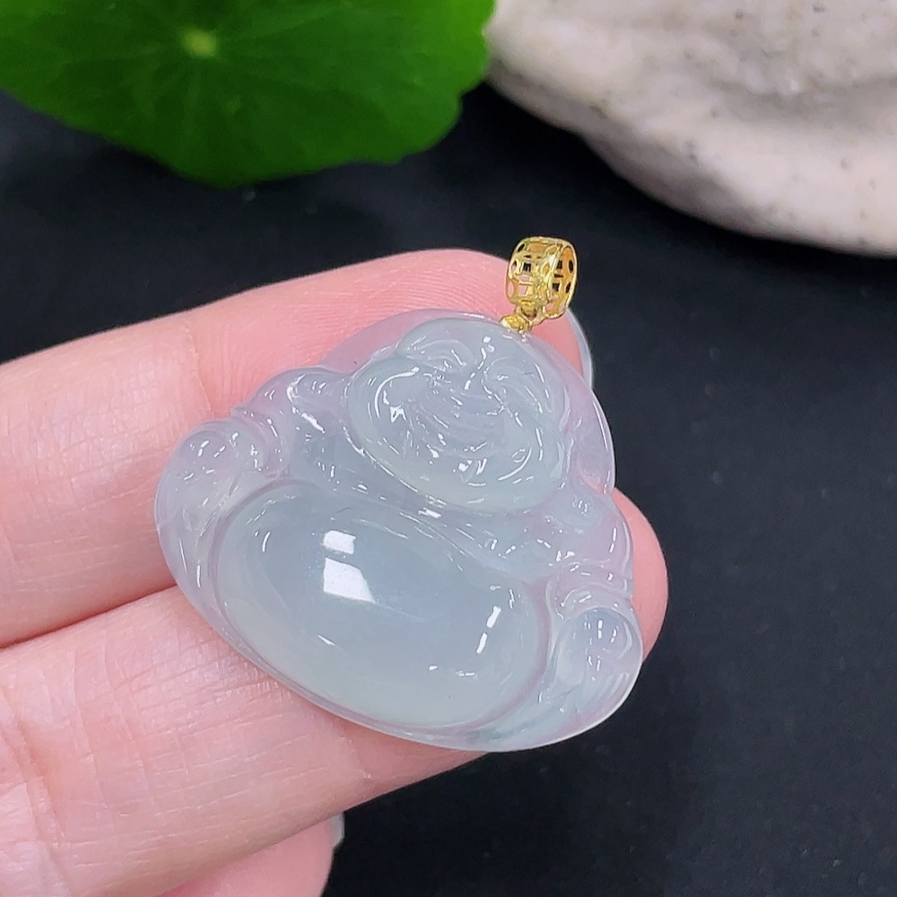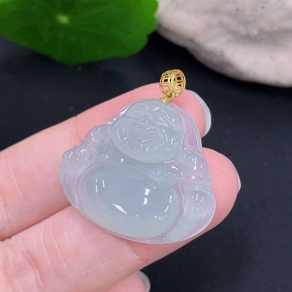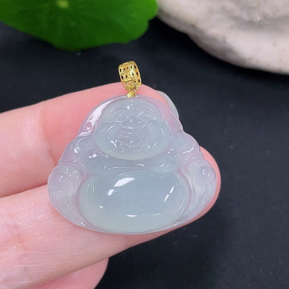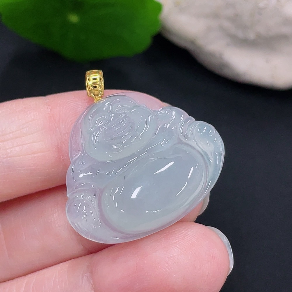 Jadeite Buddha Pendant 18K Gold Total Weight Approx. 5.9g