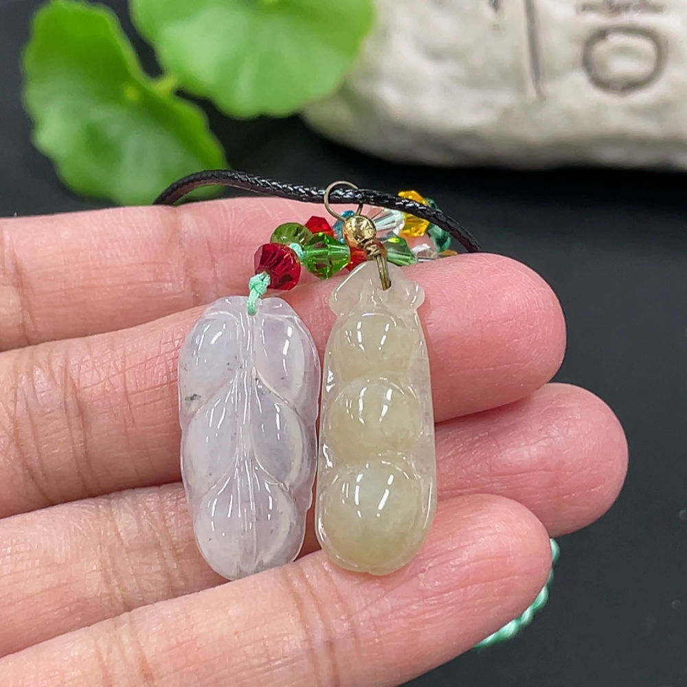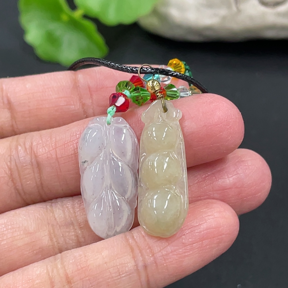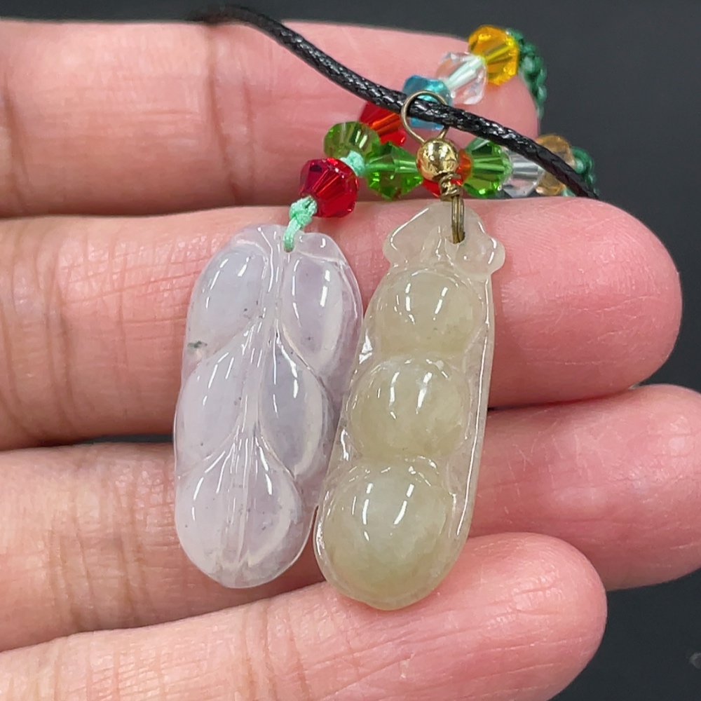 Jadeite Pendant Fu Dou Leaf with Non-A Beads Total Weight Approx. 7.75g Non-Gold Clasp