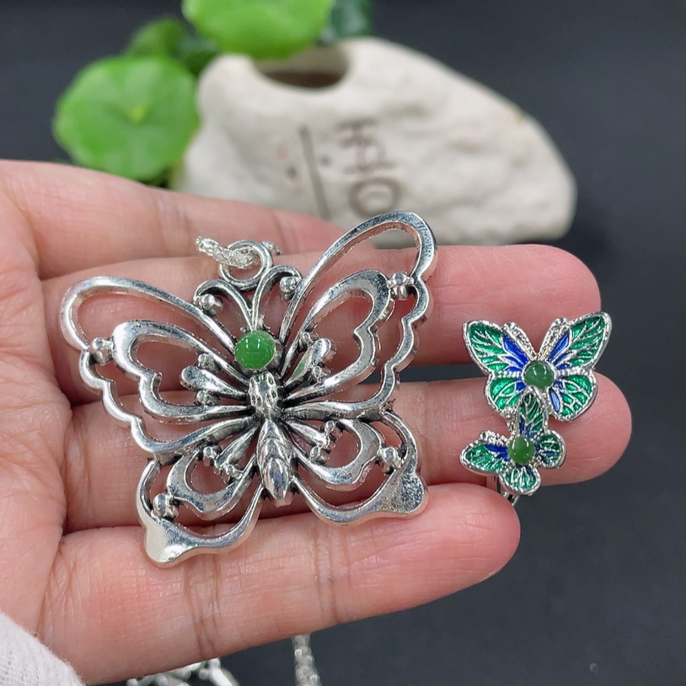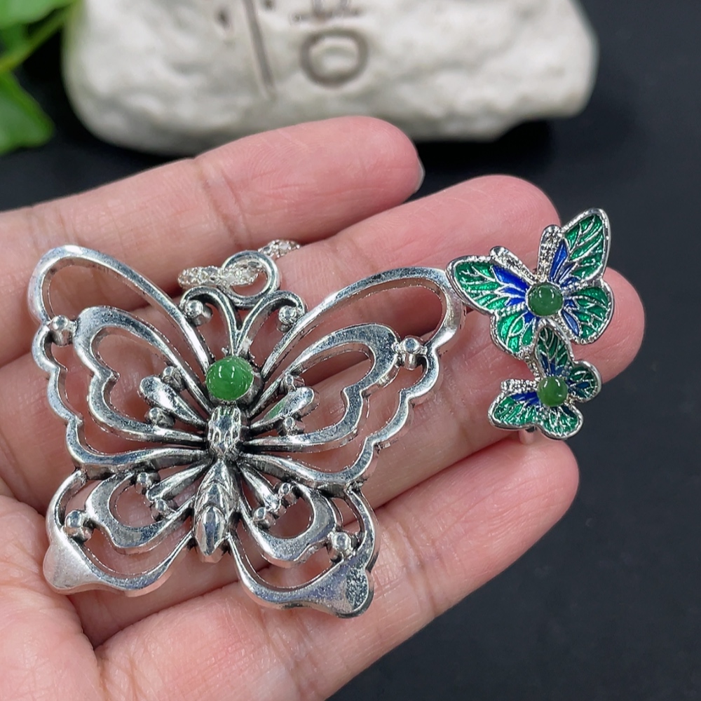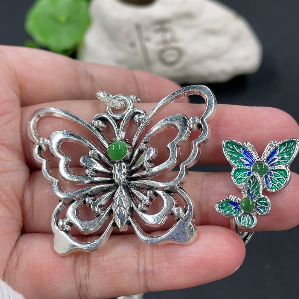 Jadeite Pendant + Ring Non-Gold Setting Adjustable Size Total Weight Approx. 17.85g