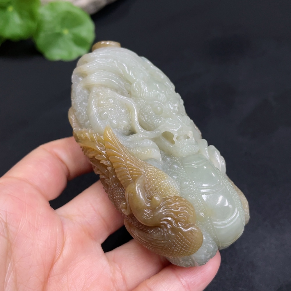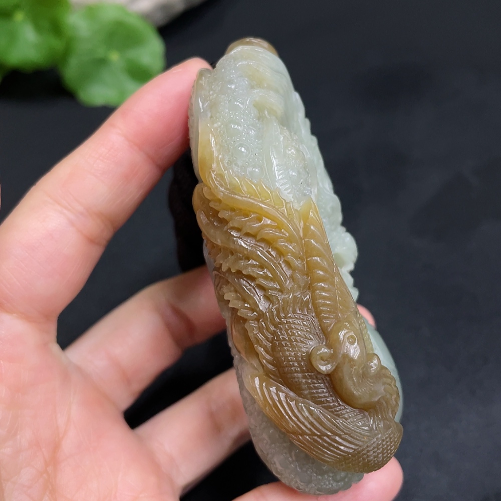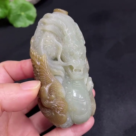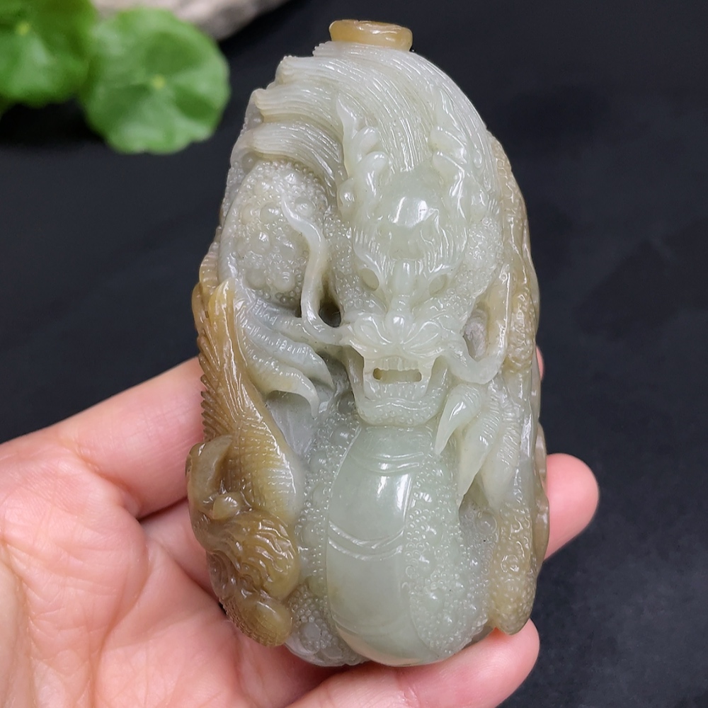 Hetian Jade Handheld Carving 'Dragon and Phoenix Bringing Prosperity'
