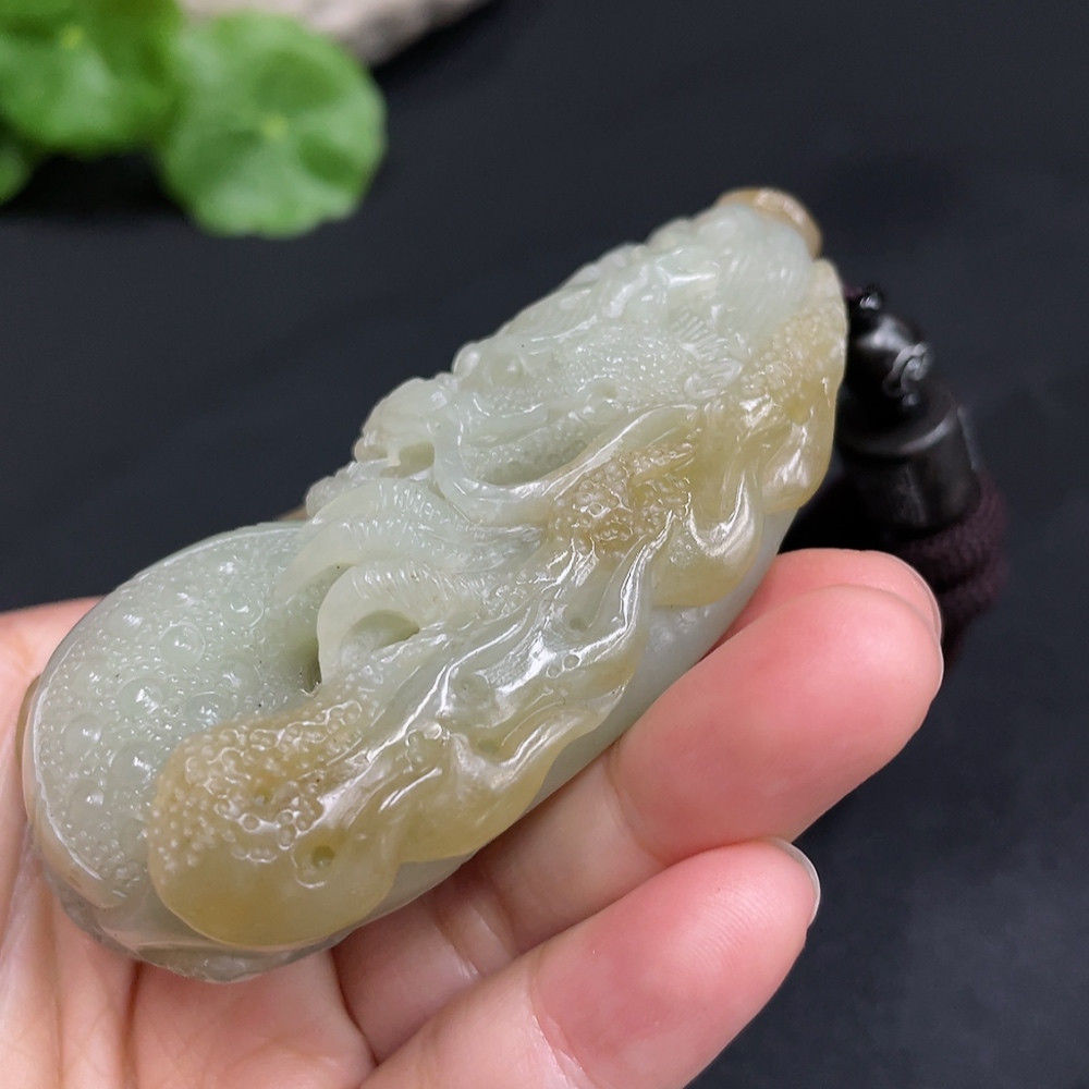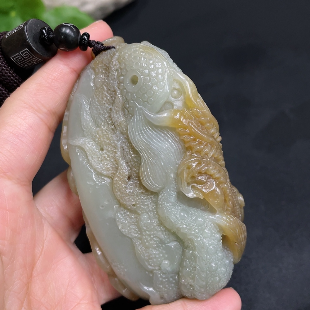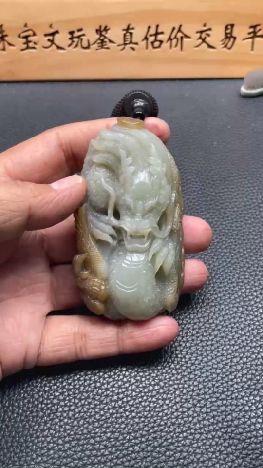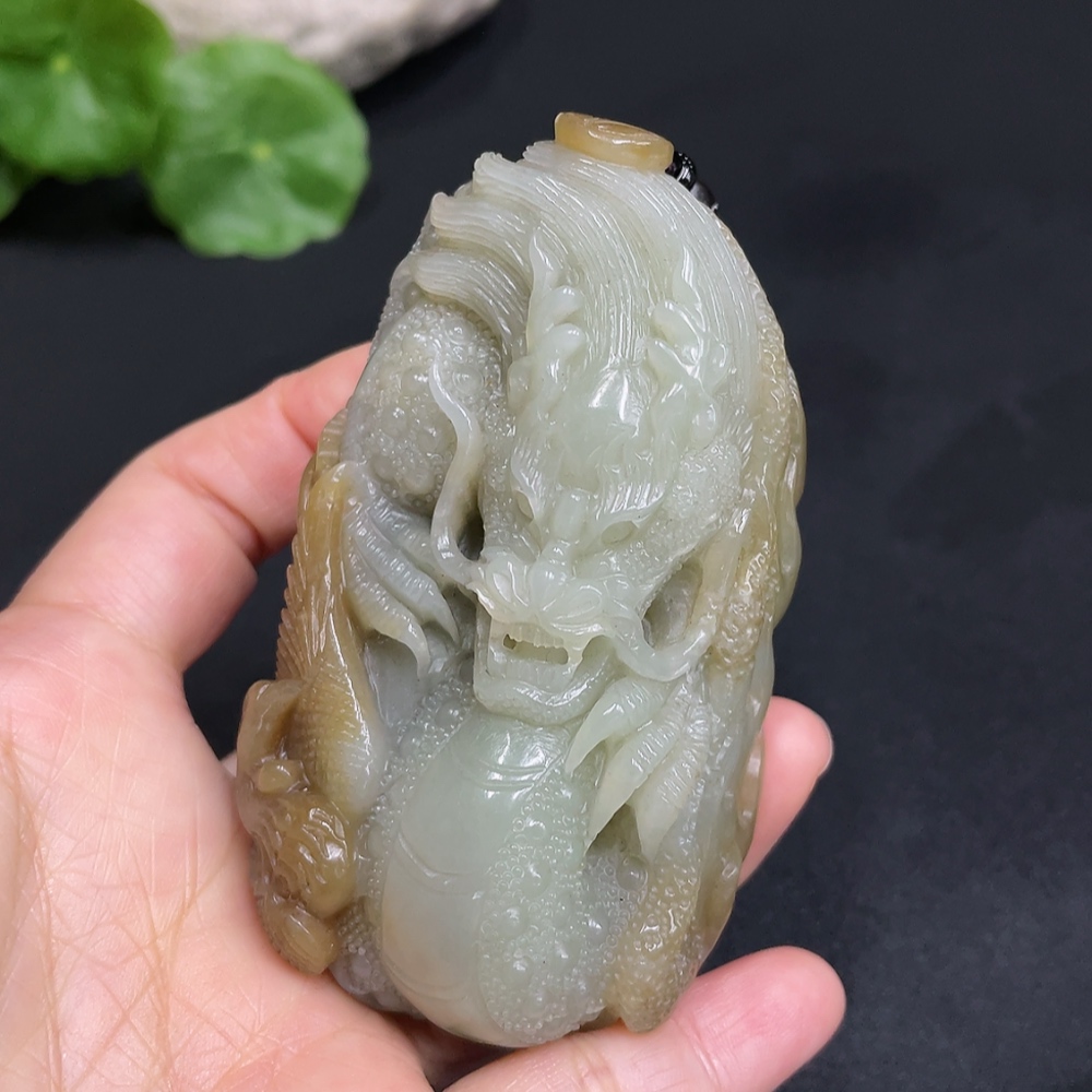 Hetian Jade Handheld Carving 'Dragon and Phoenix Bringing Prosperity'