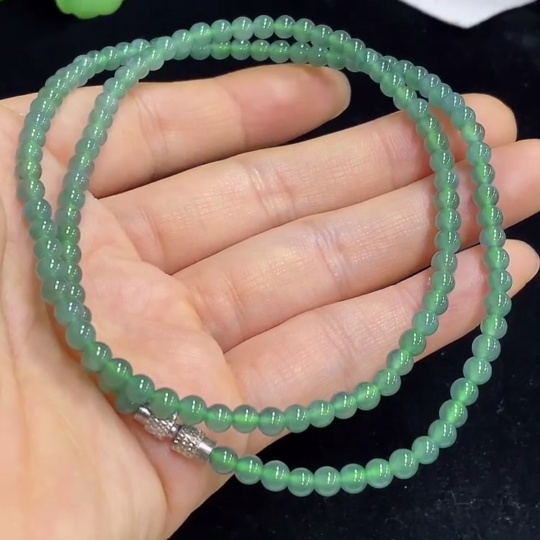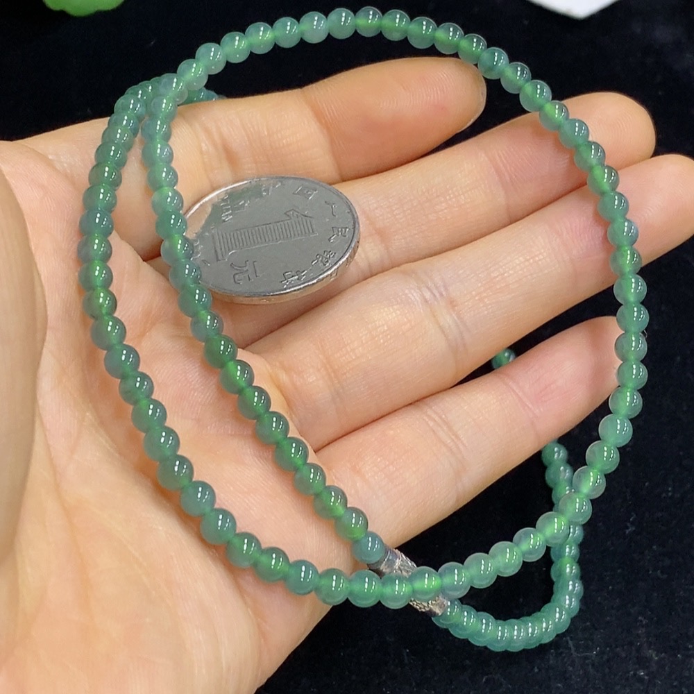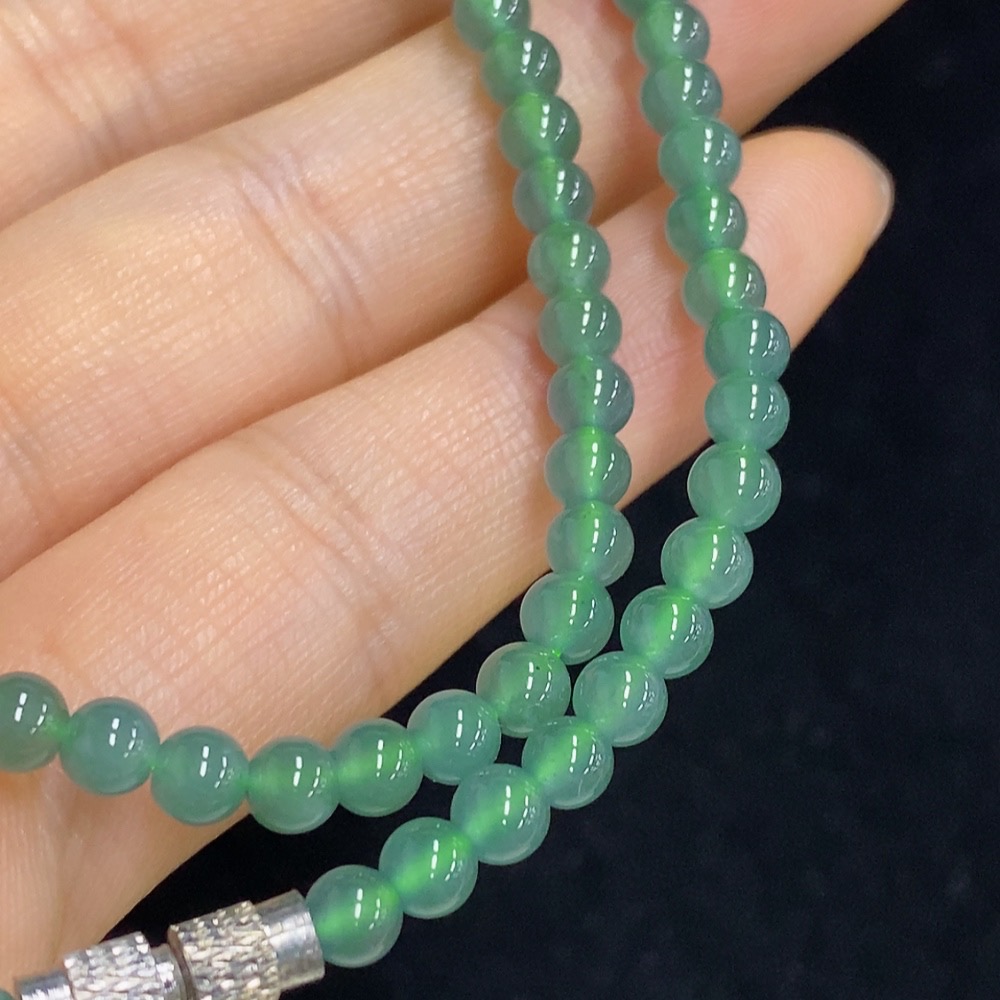 Jadeite Bead Necklace Approx. 4.1mm Non-Gold Total Weight Approx. 16.45g