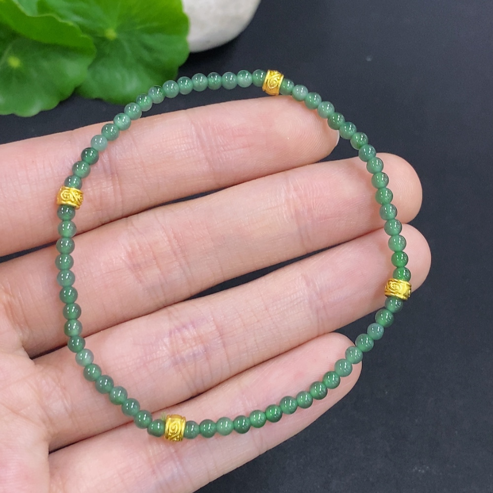 Jadeite Bead Necklace Card 2.9mm Non-Gold Total Weight Approx. 3.4g
