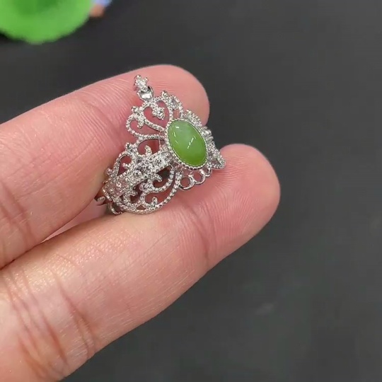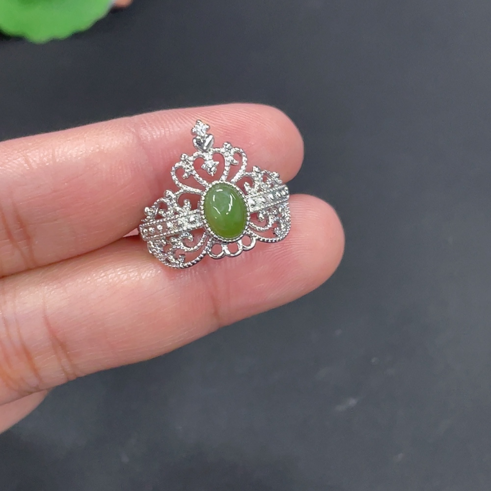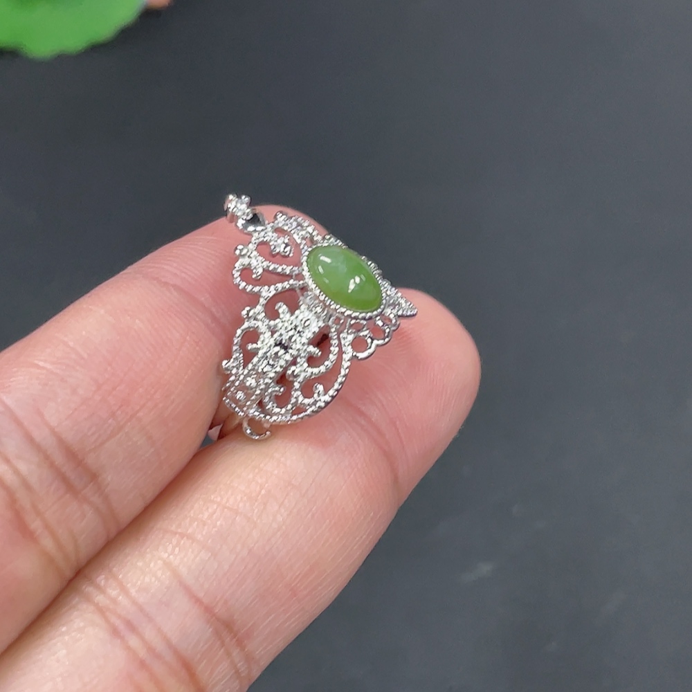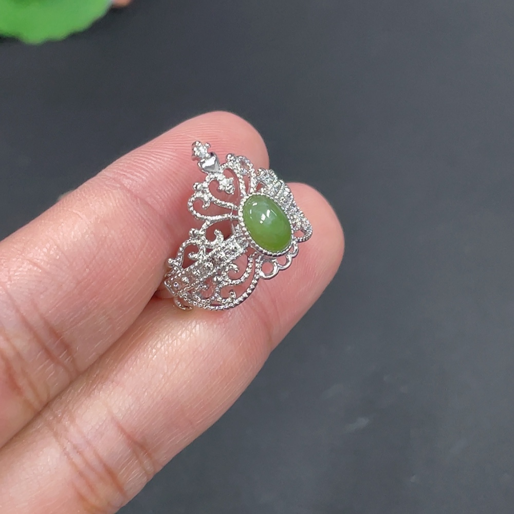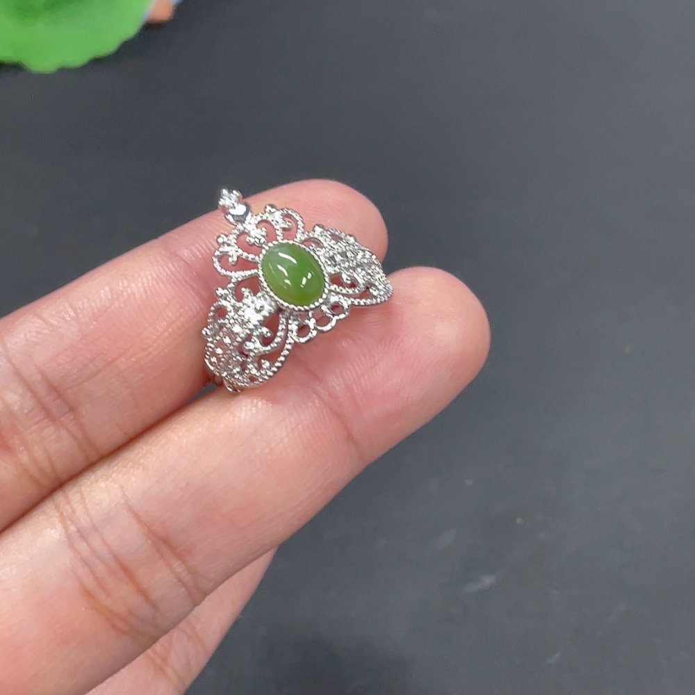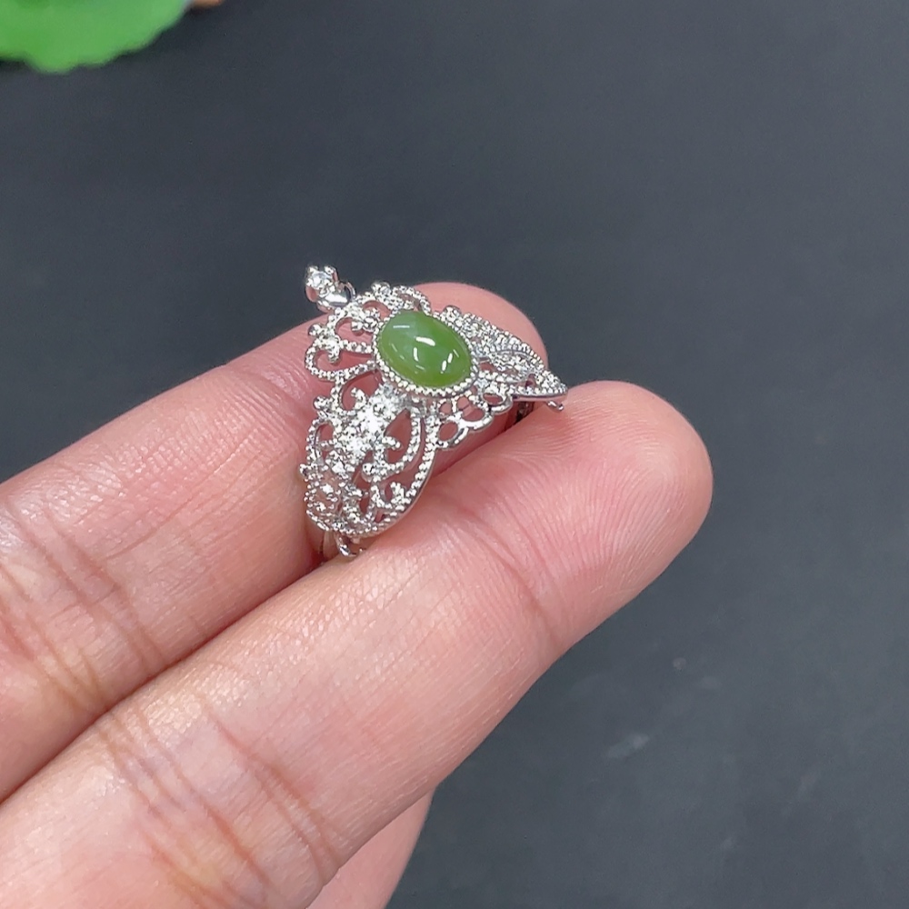 Hetian Jade Inlaid Adjustable Ring Non-Gold Inlaid Total Weight Approx. 2.8g
