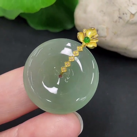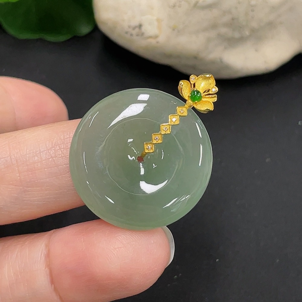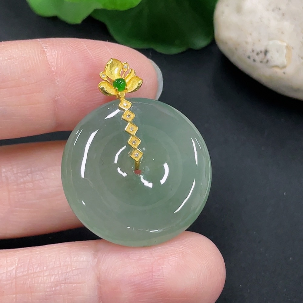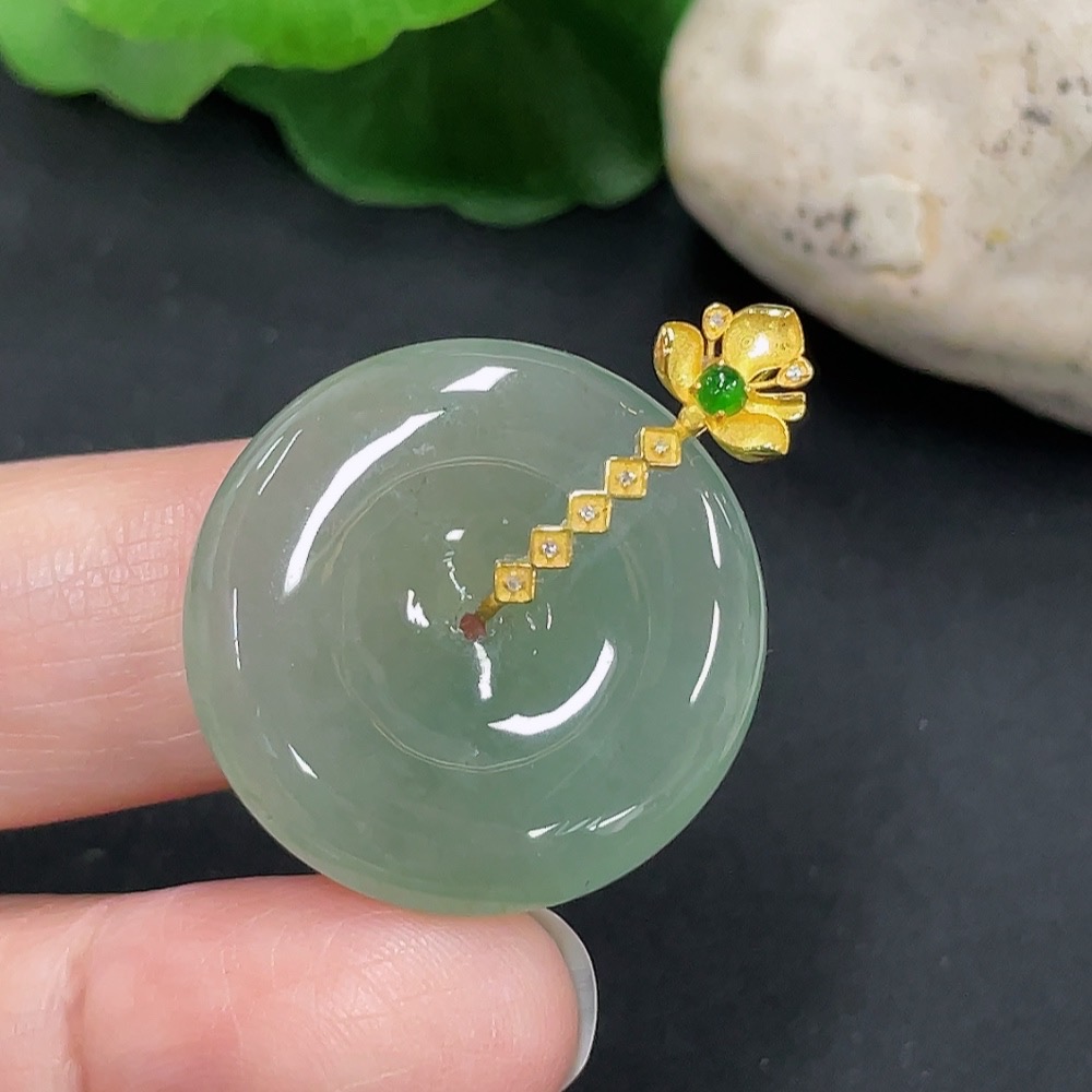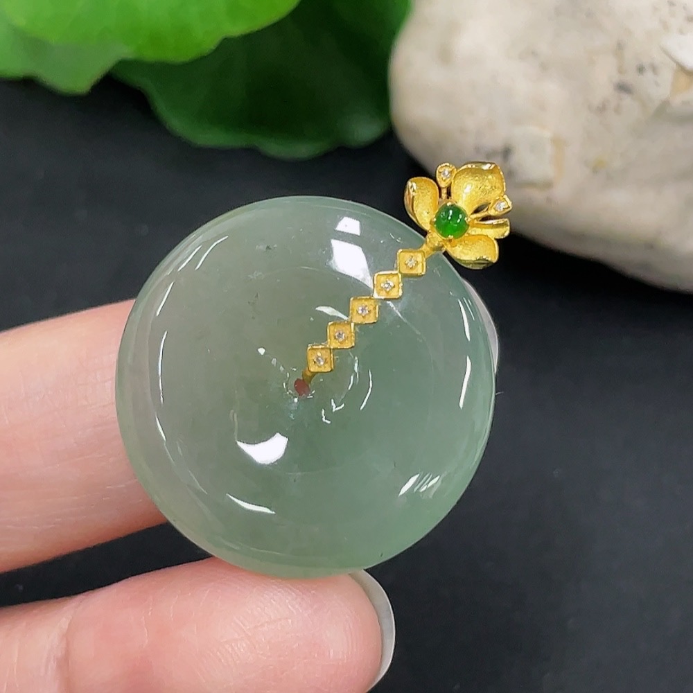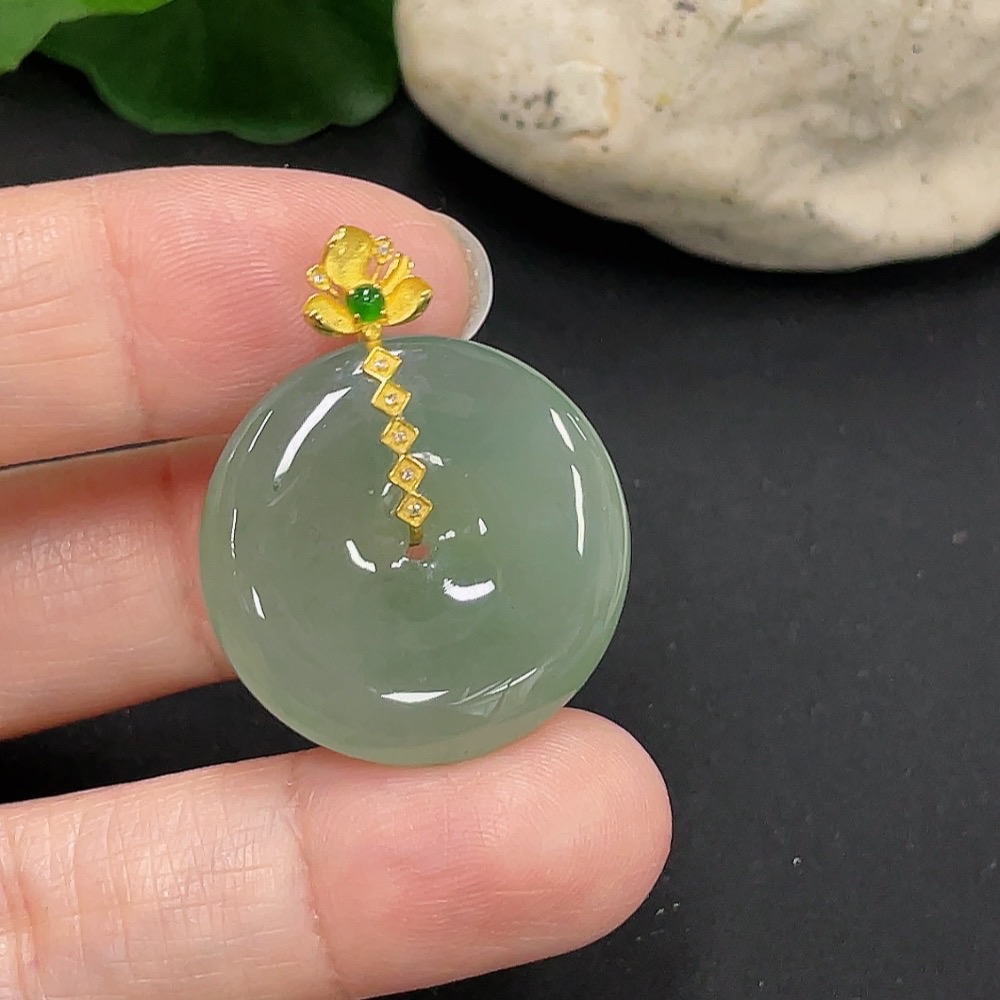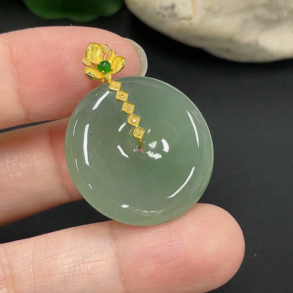 Jadeite Safety Buckle Pendant 18K Gold Total Weight Approx. 7.9g (with Diamond Accents)
