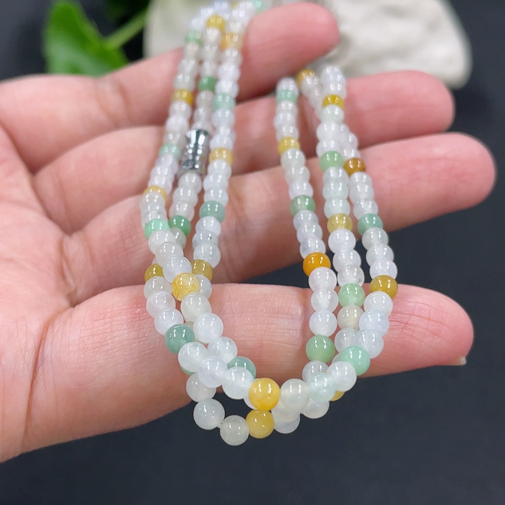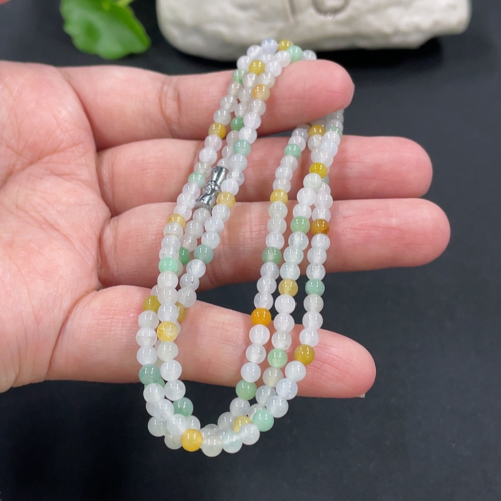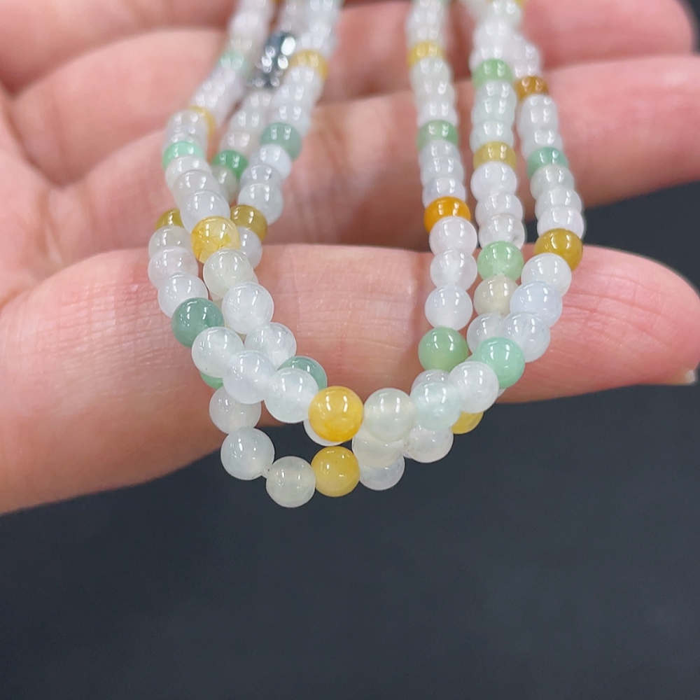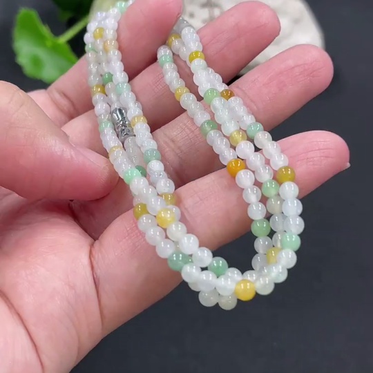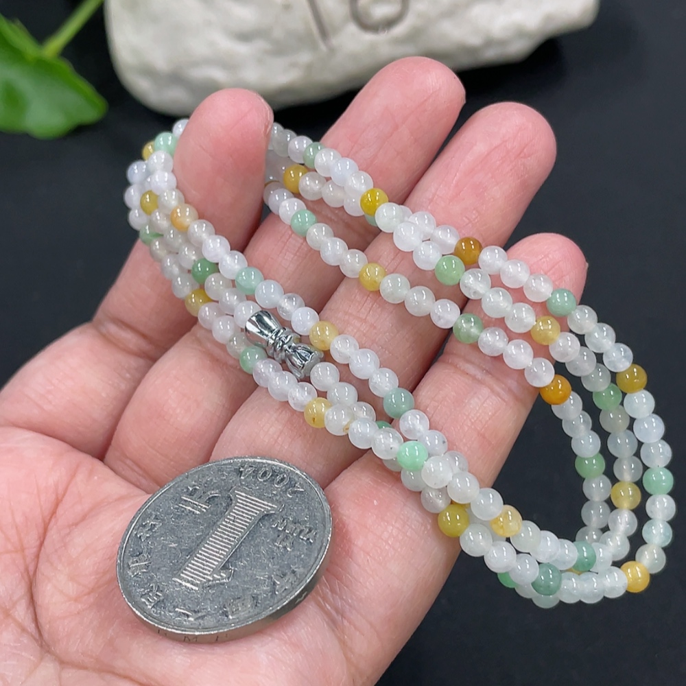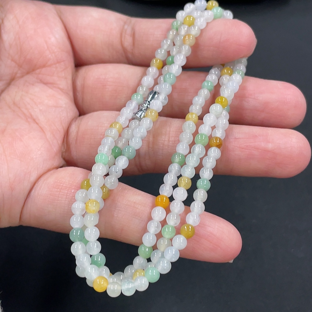 Jadeite Bead Necklace Approx. 3.5mm Non-Gold Clasp Total Weight Approx. 13.55g