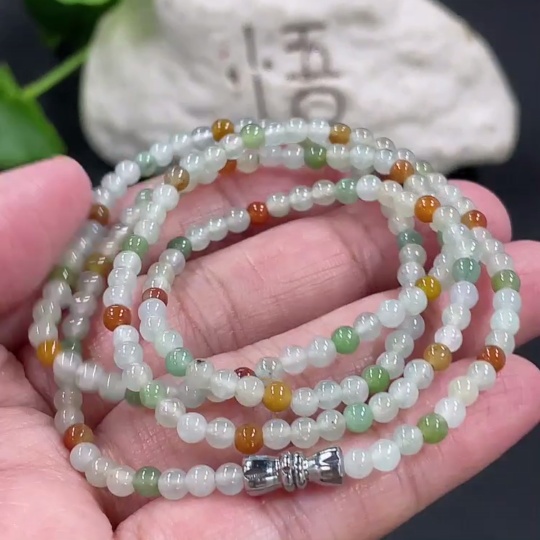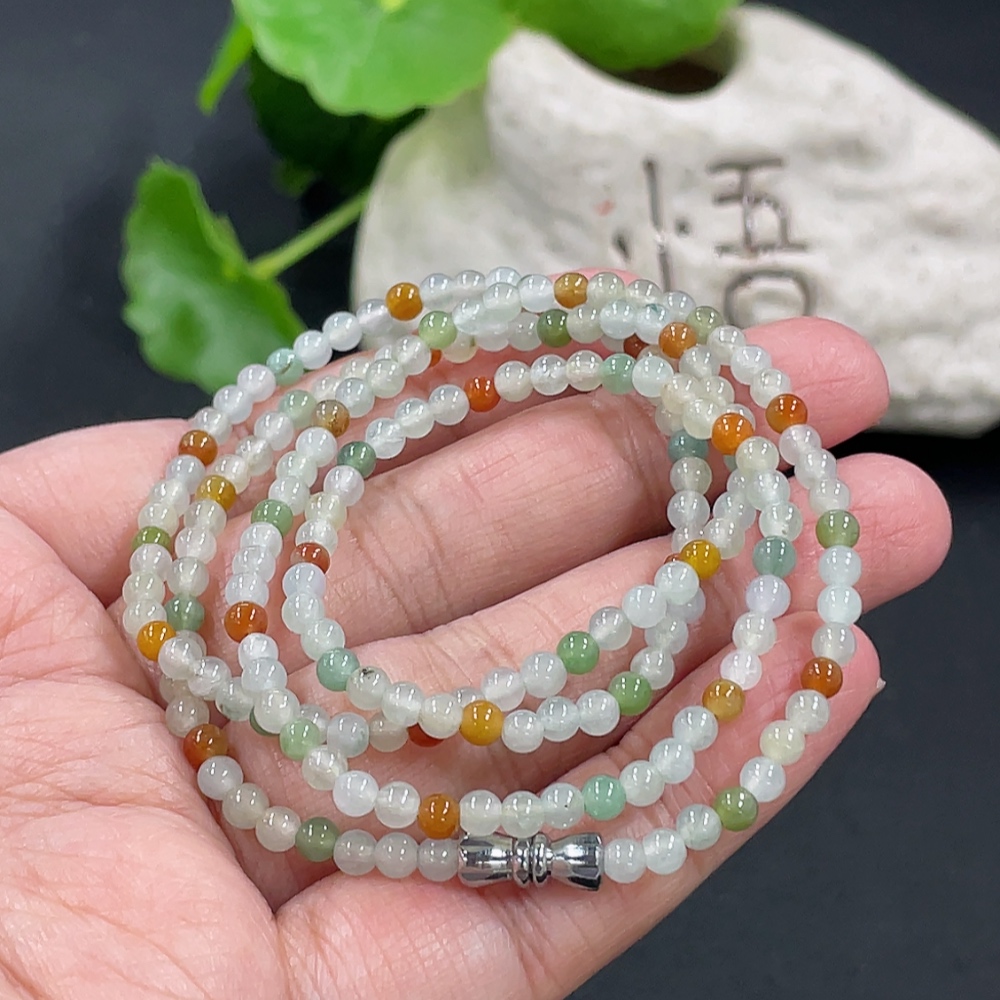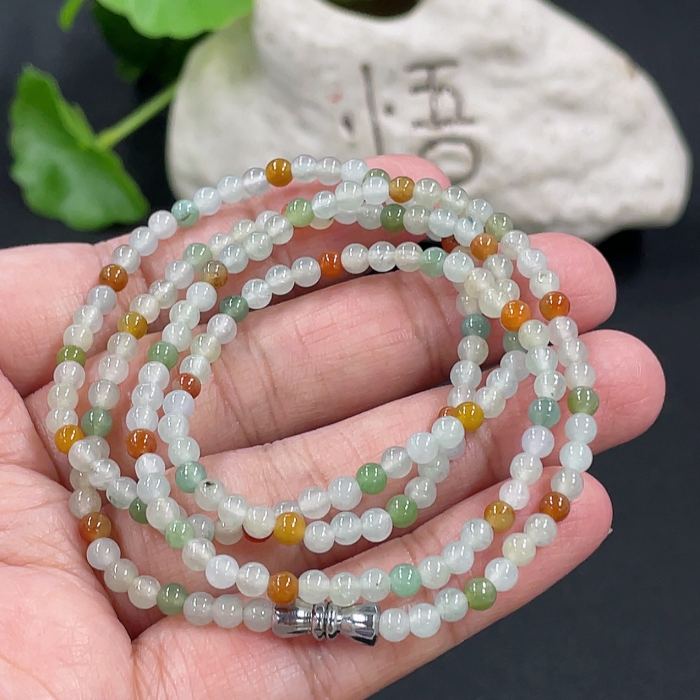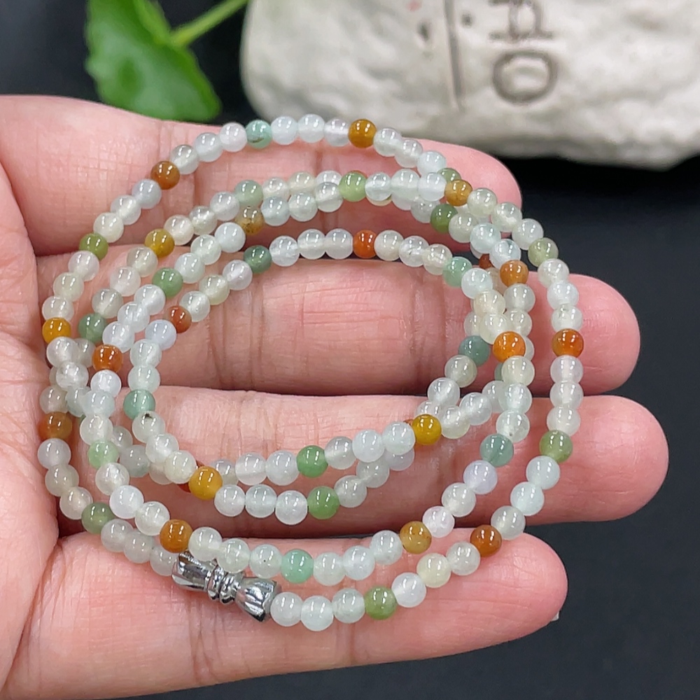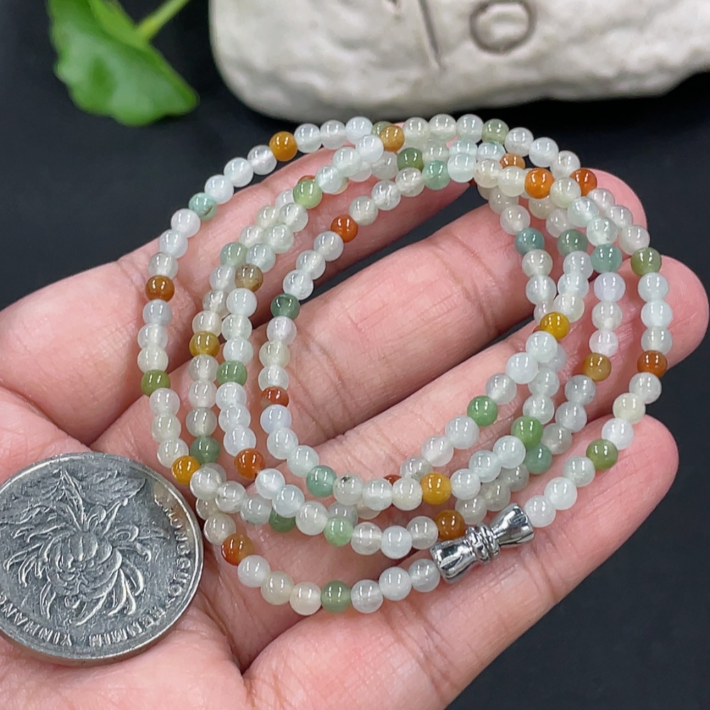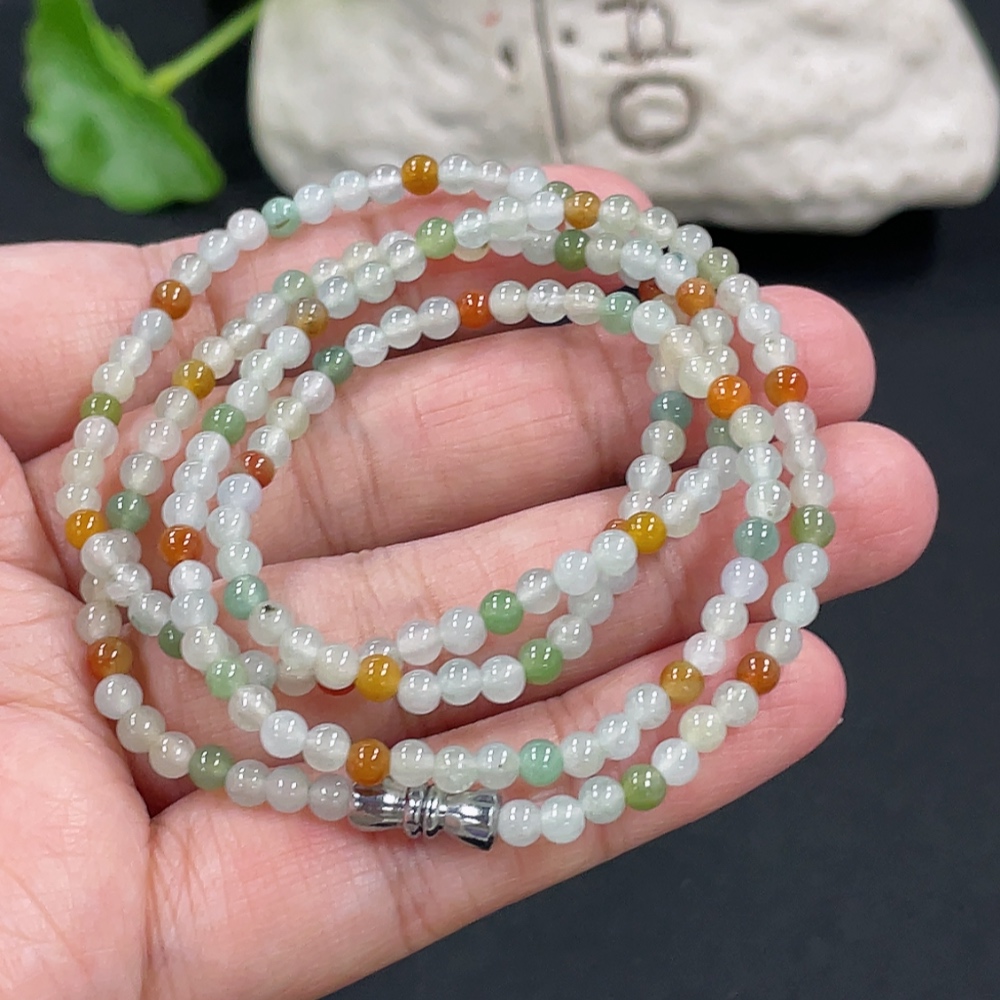 Jadeite Bead Necklace Approximately 3.4mm Rope Clasp Non-Gold Total Weight About 12.69g