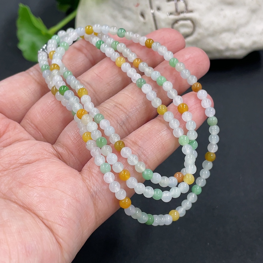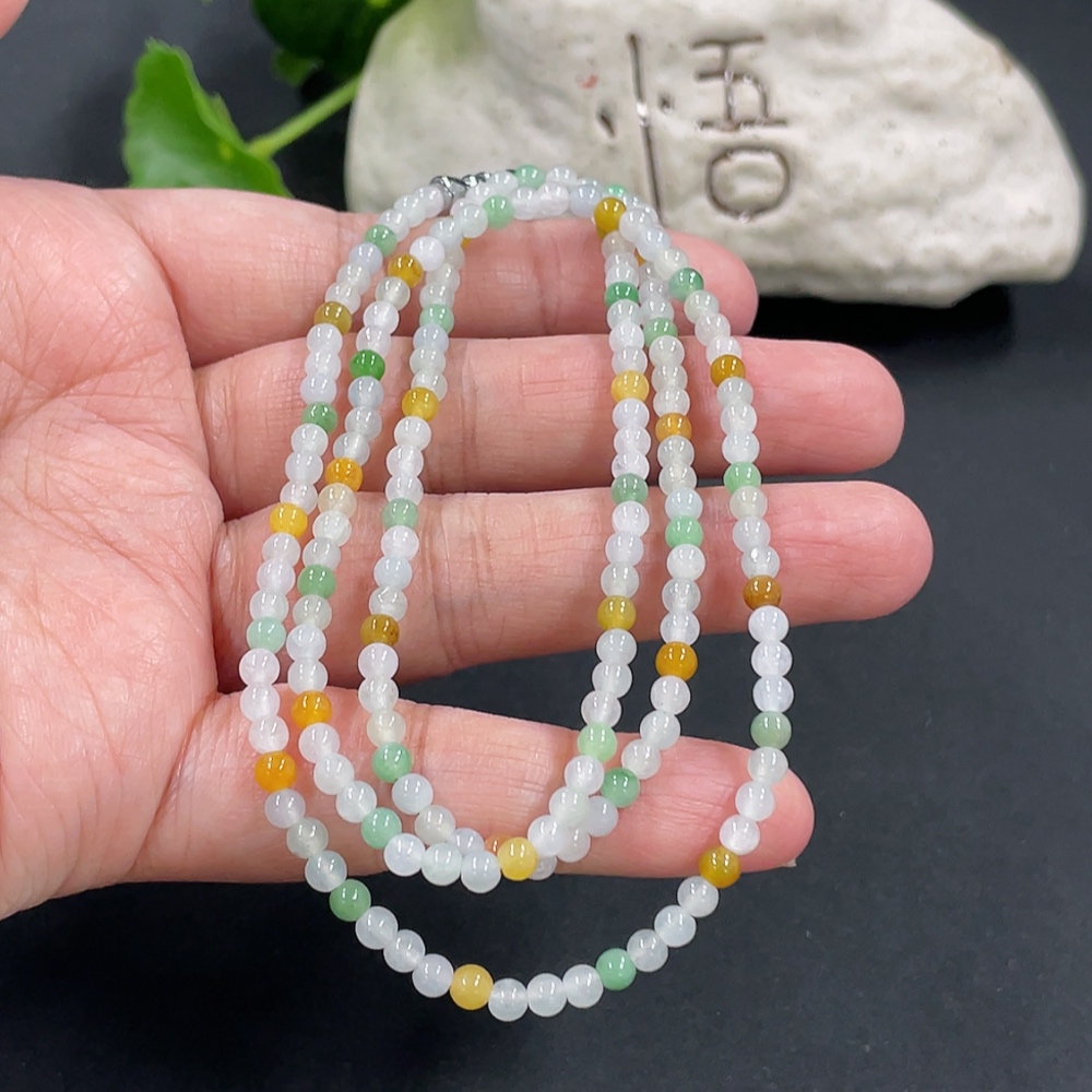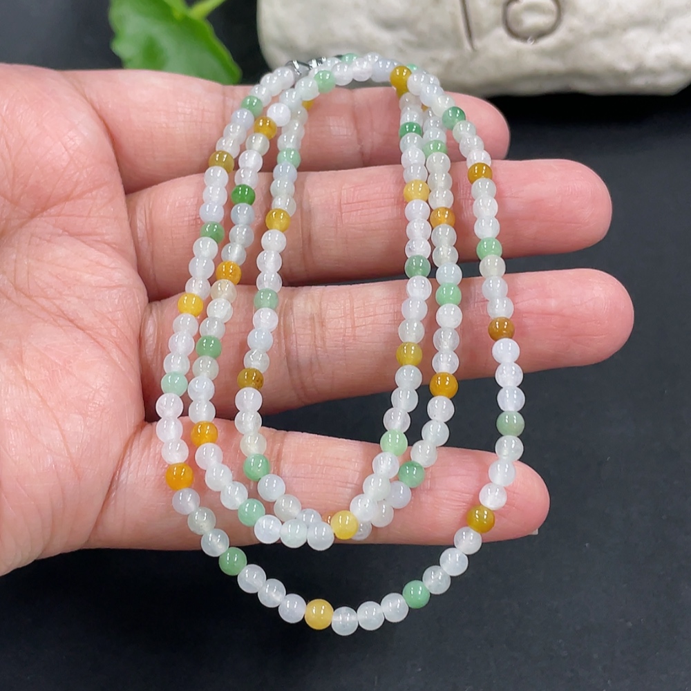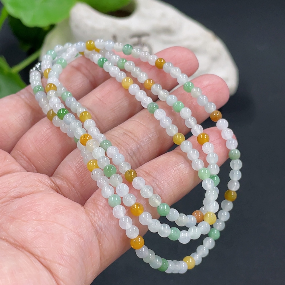 Jadeite Beaded Necklace Approx. 3.3mm Non-Gold Clasp Total Weight Approx. 13.1g