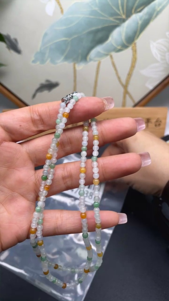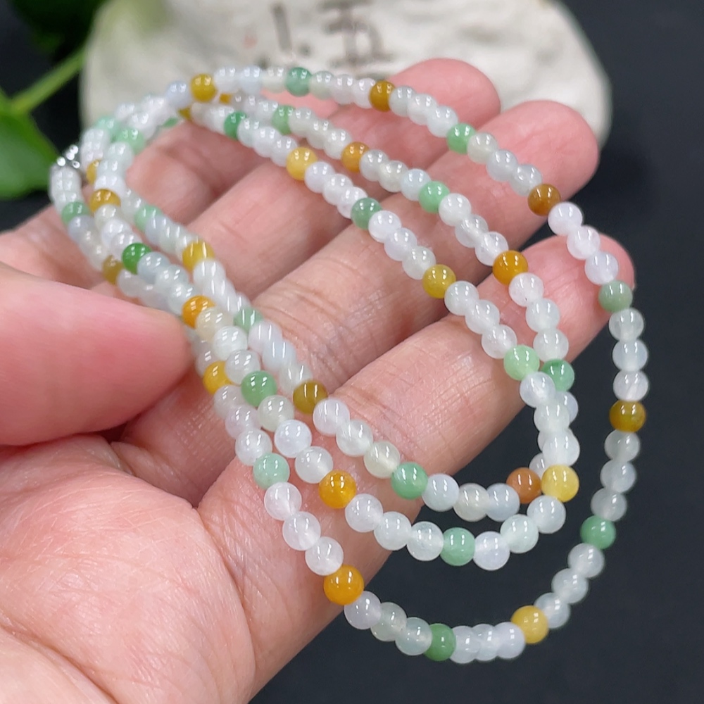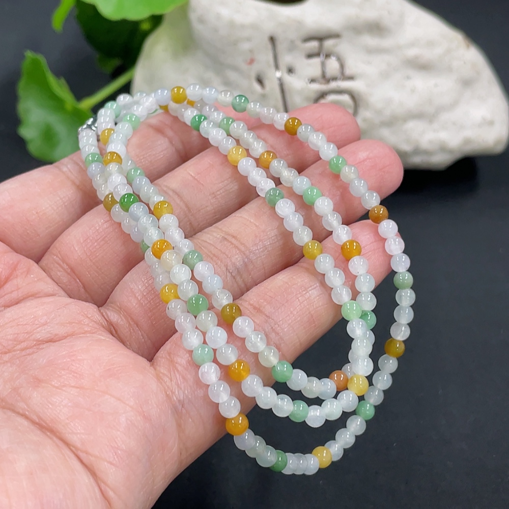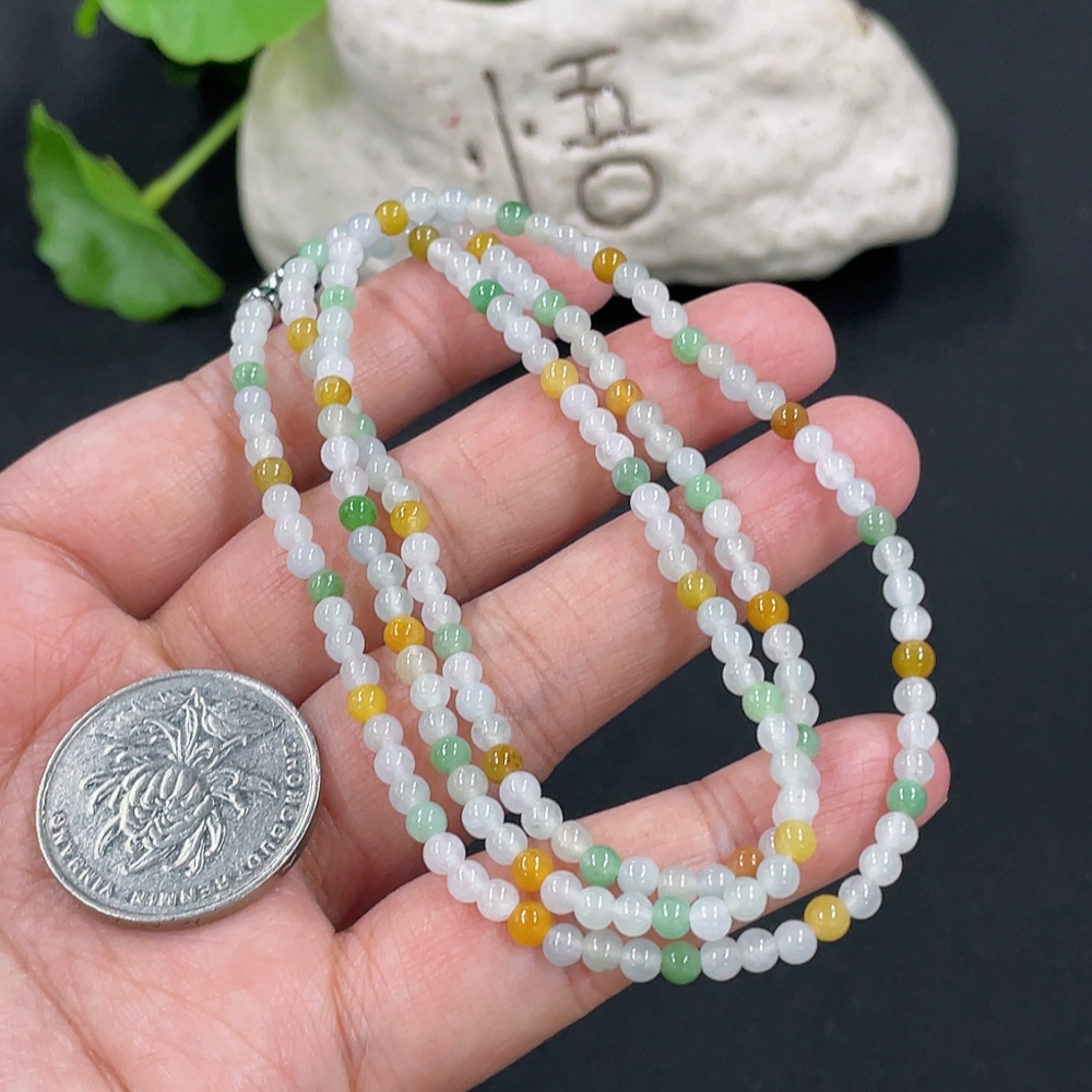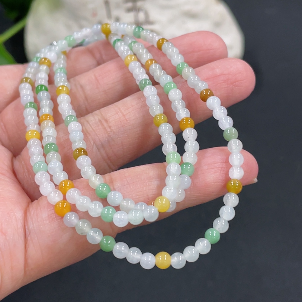 Jadeite Beaded Necklace Approx. 3.3mm Non-Gold Clasp Total Weight Approx. 13.1g