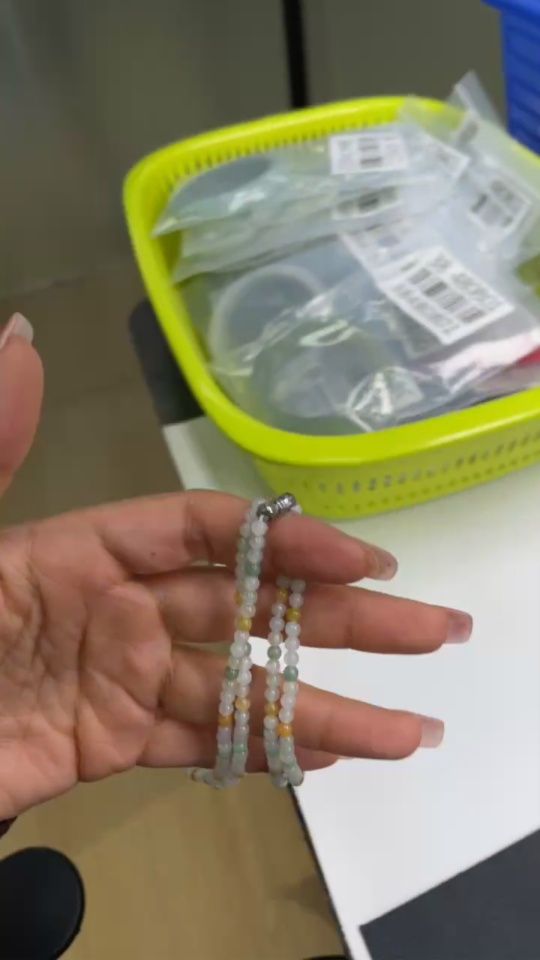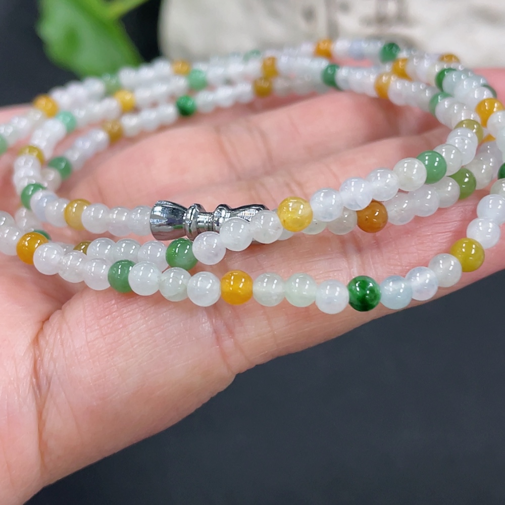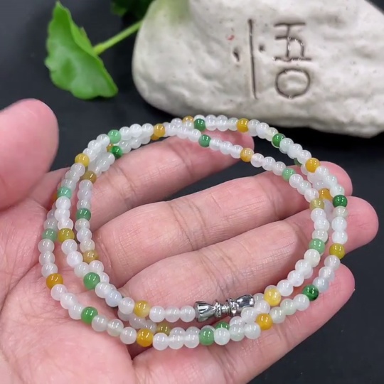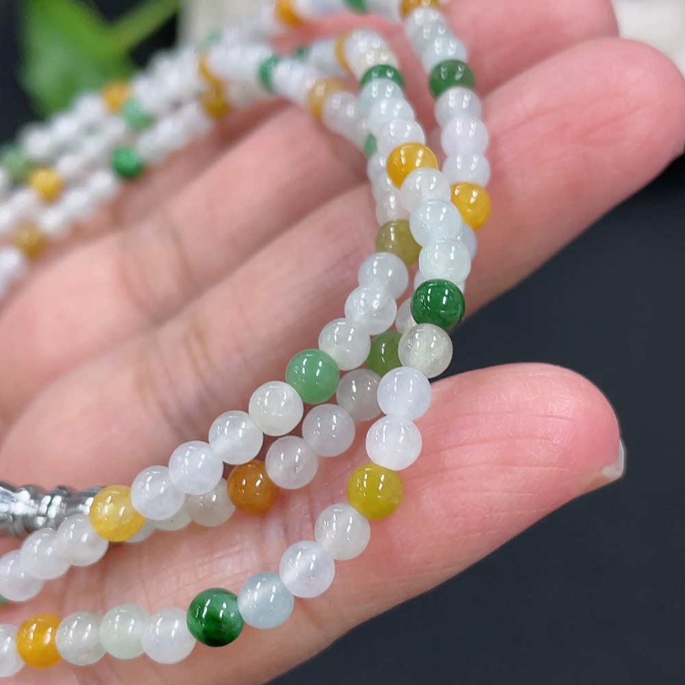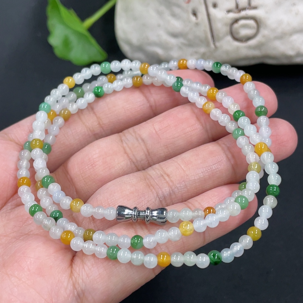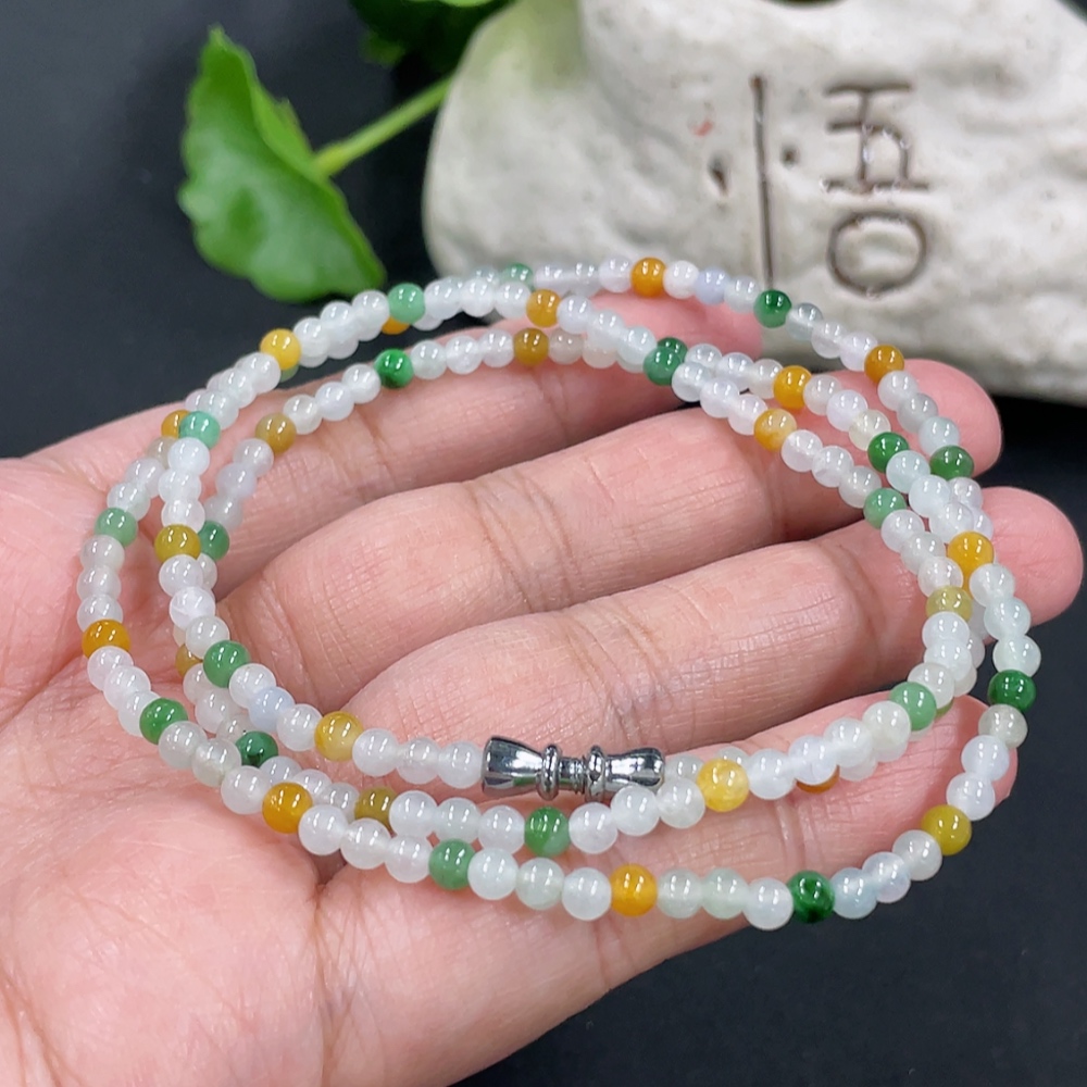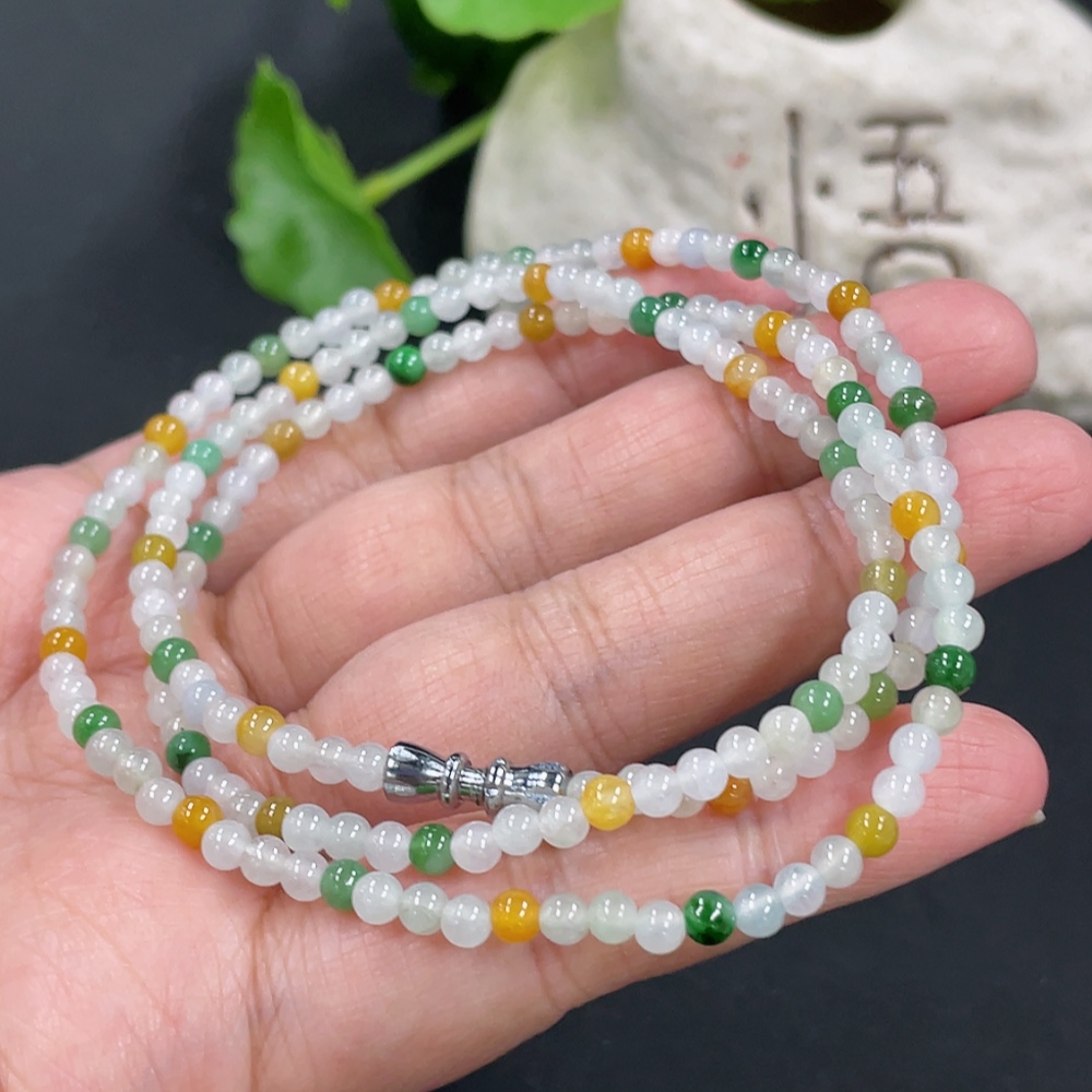 Jadeite Bead Necklace Approx. 3.5mm Non-Gold Clasp Total Weight Approx. 13.36g