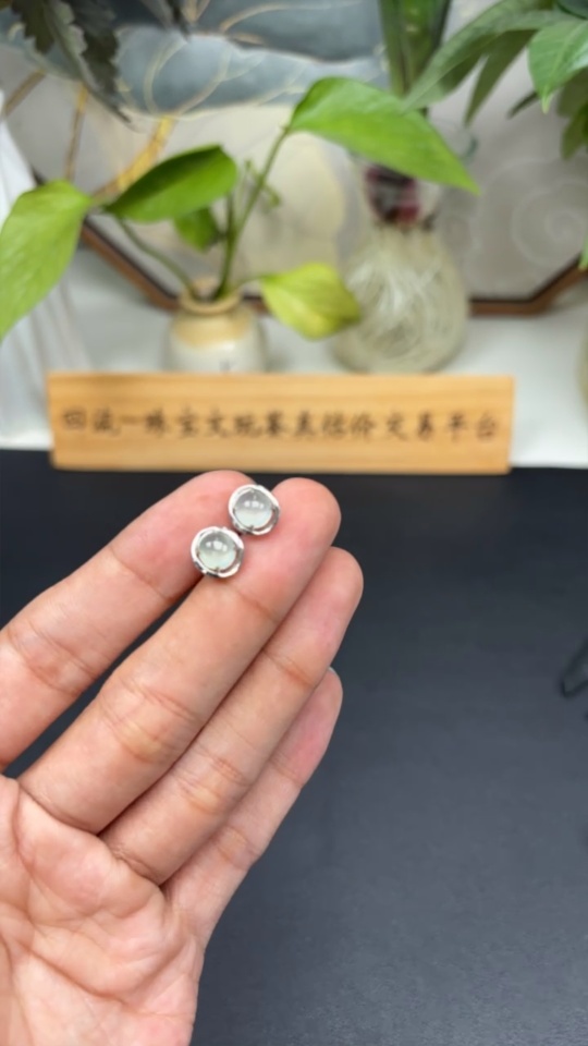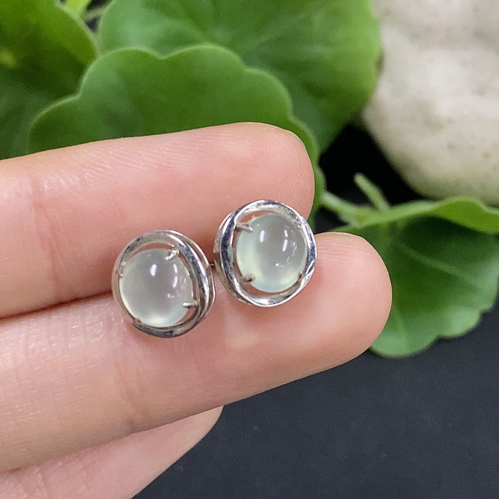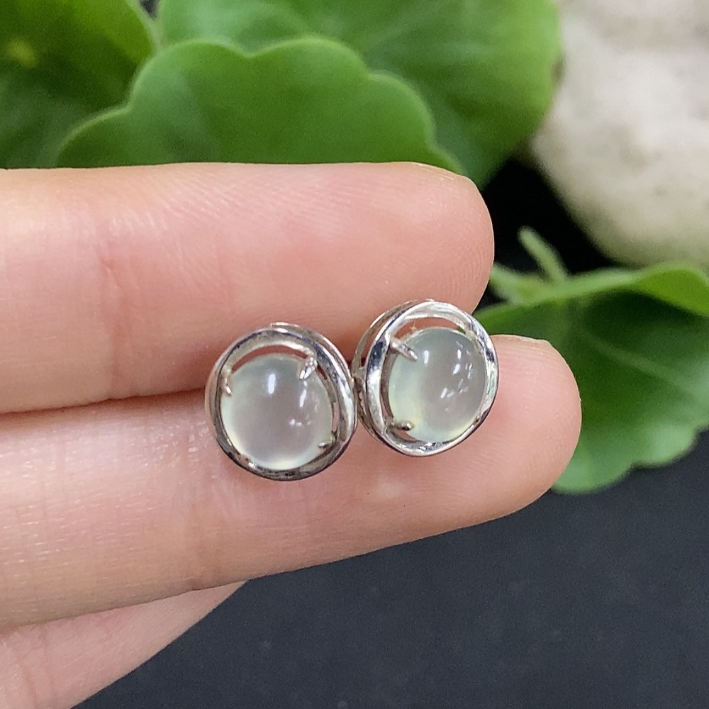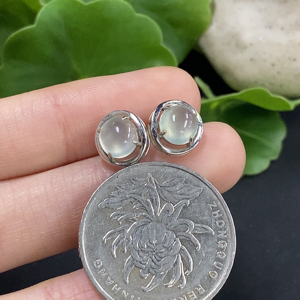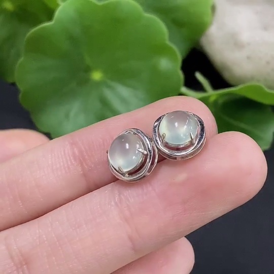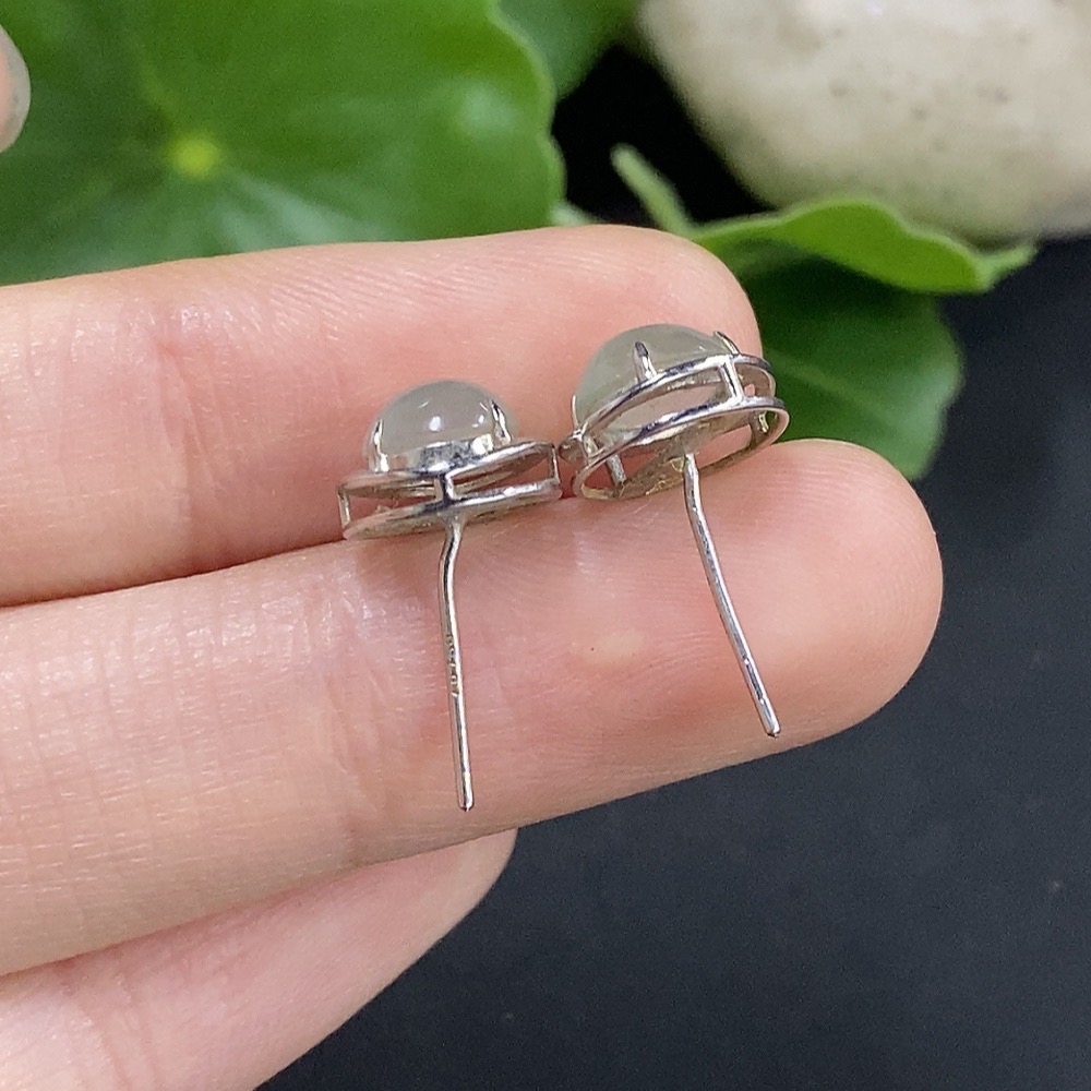 Jadeite cabochon earrings set in 18K gold, total weight approximately 1.6g