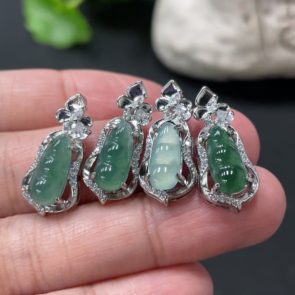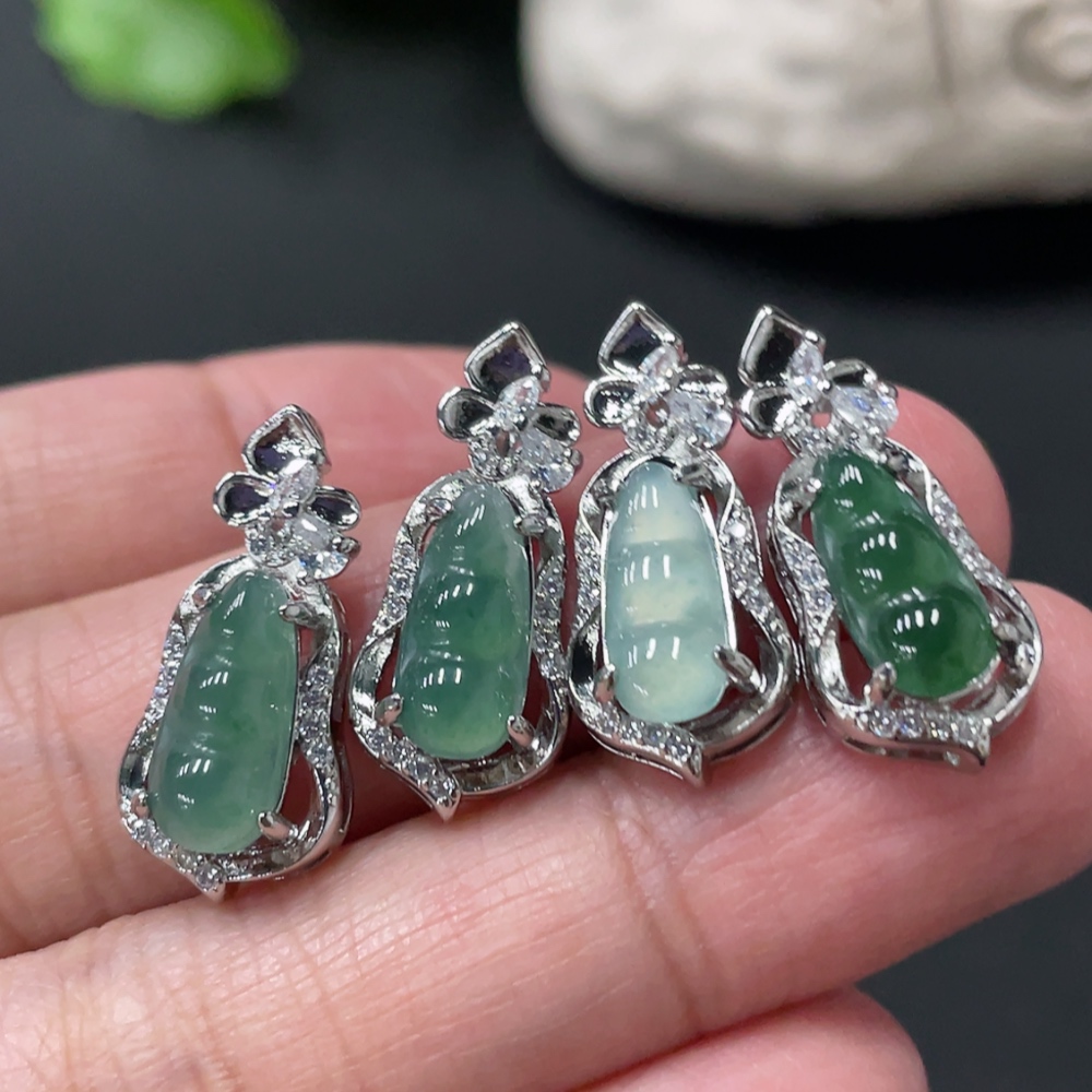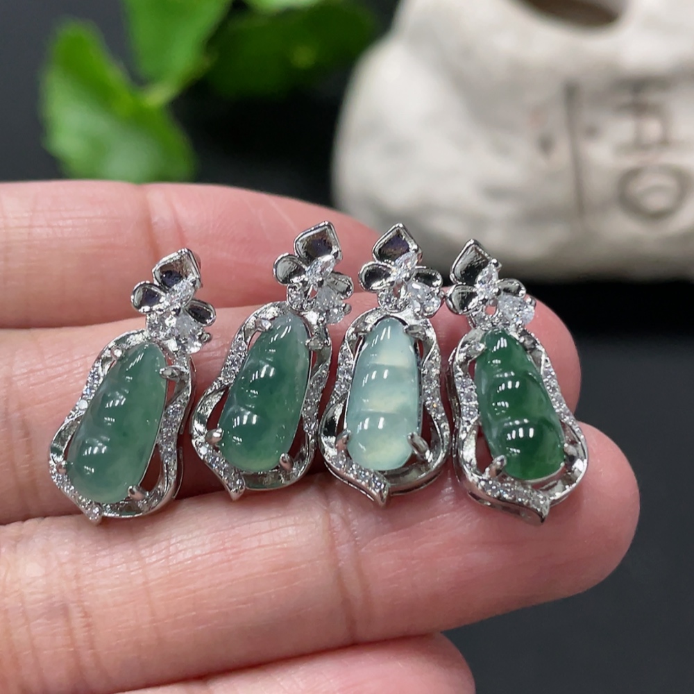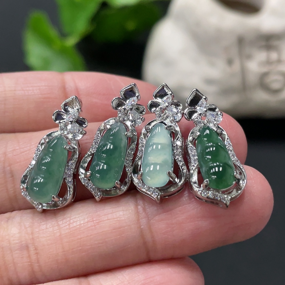 Jadeite Lucky Bean Inlaid Pendant Non-Gold Inlaid Sell as a Lot