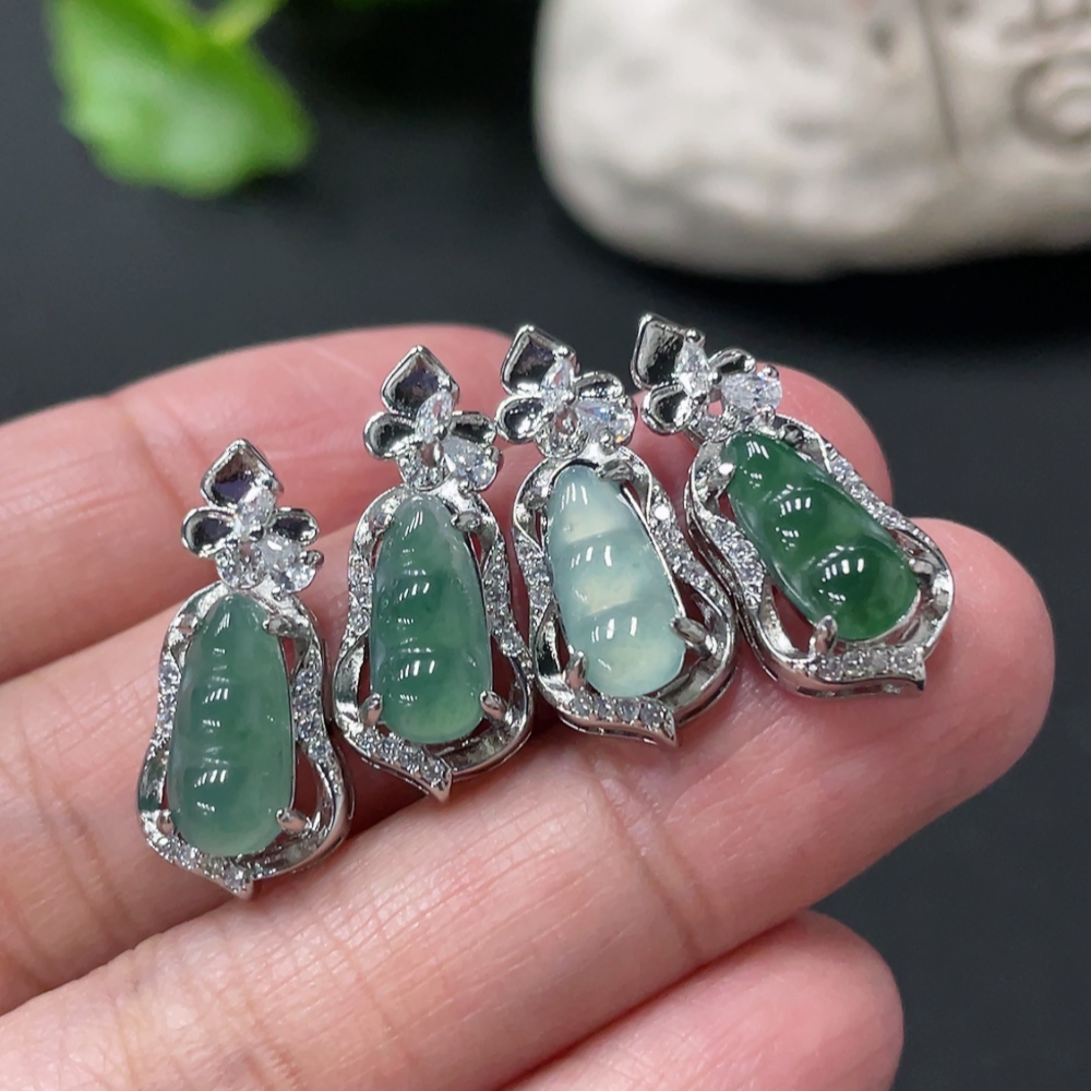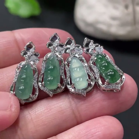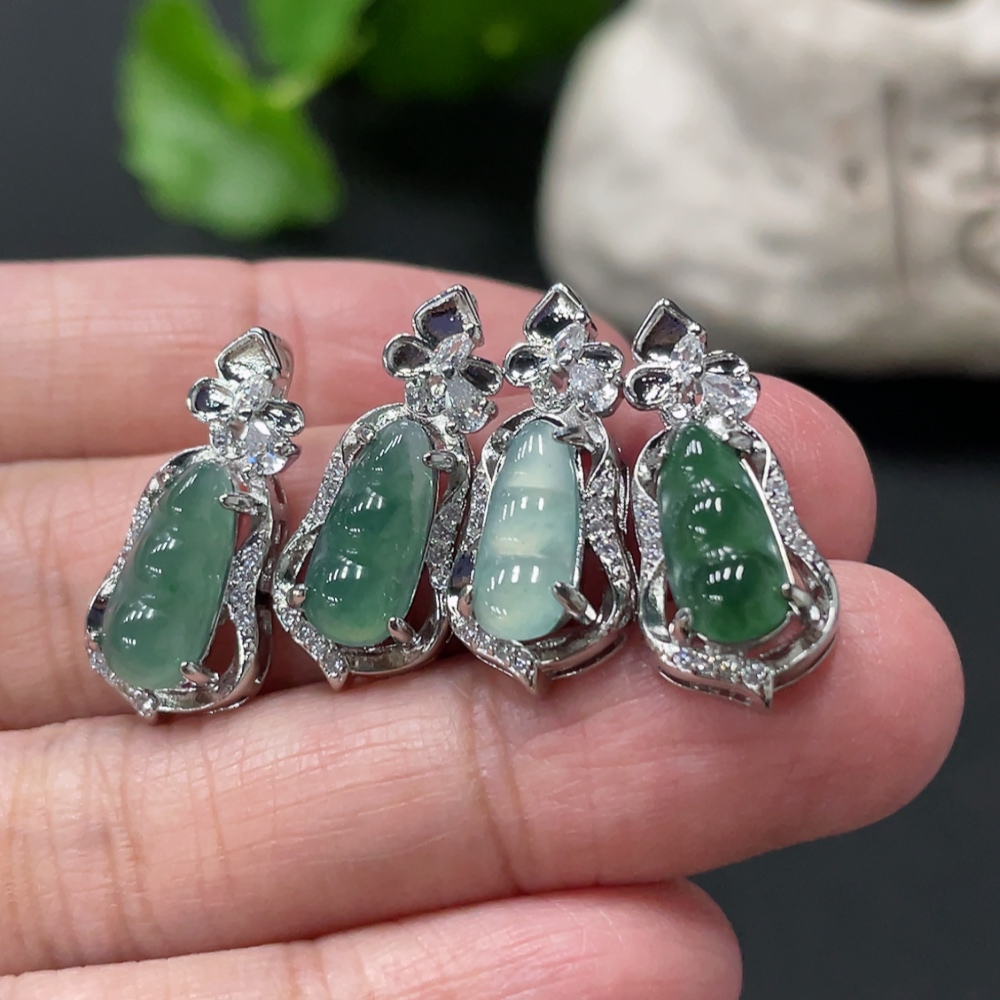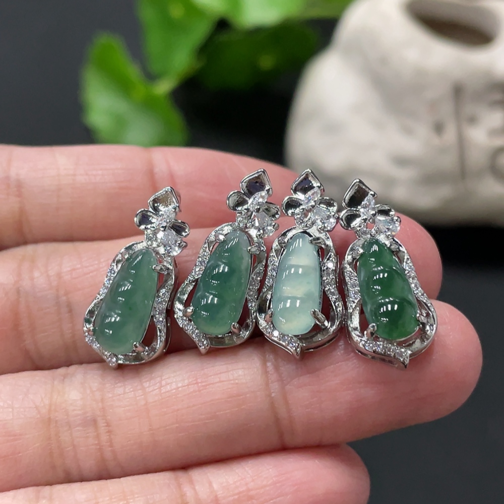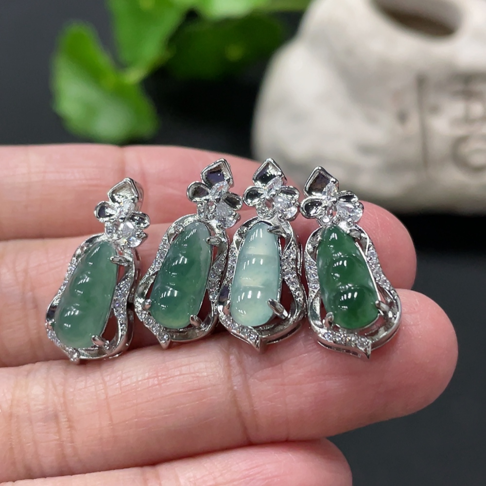 Jadeite Lucky Bean Inlaid Pendant Non-Gold Inlaid Sell as a Lot