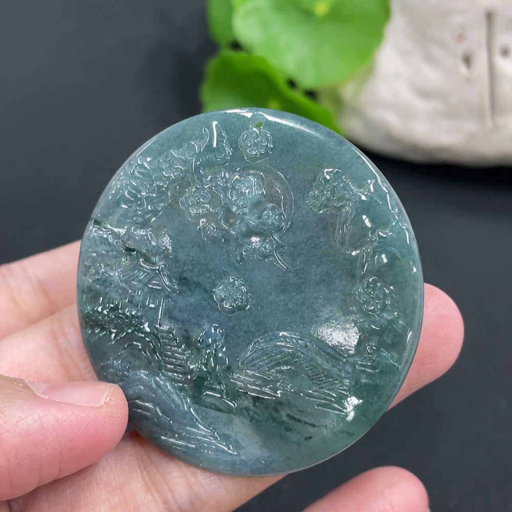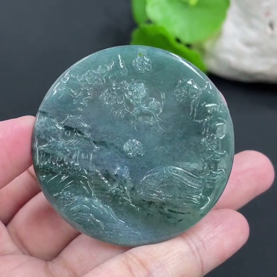 Jadeite Landscape Pendant Total Weight Approx. 14.77g