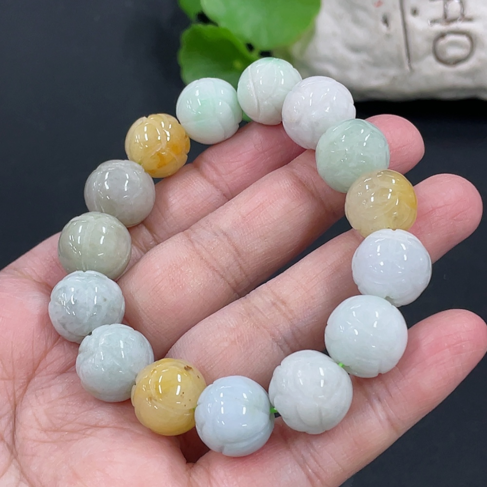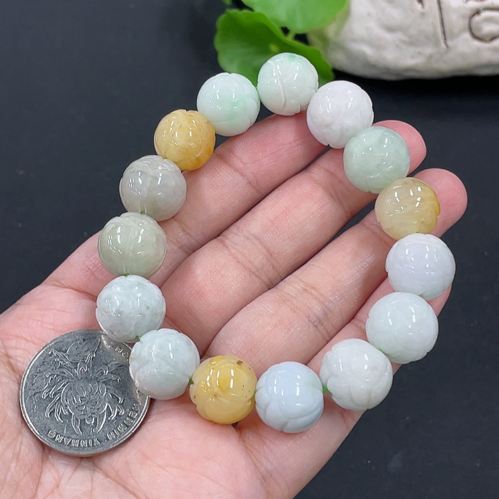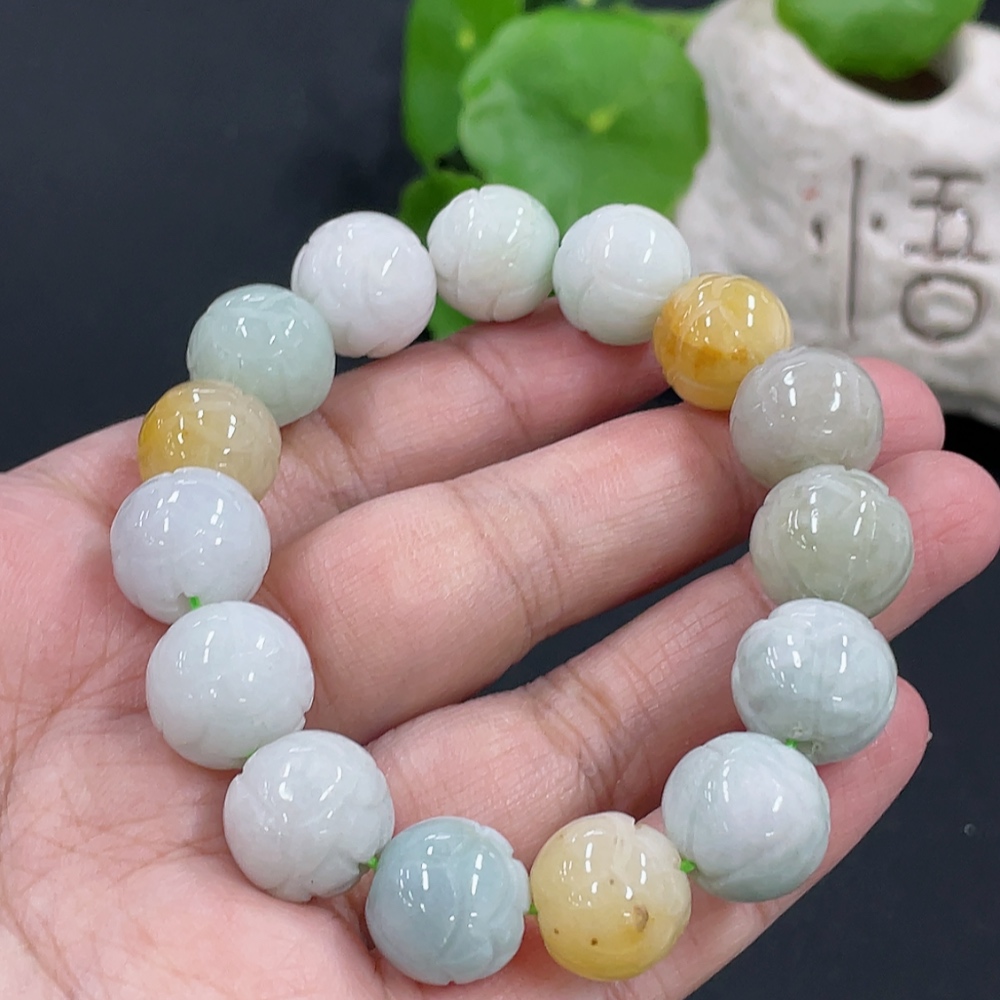 Jadeite Bracelet Approx. 13.1mm Total Weight Approx. 54.8g with Non-Grade A Beads