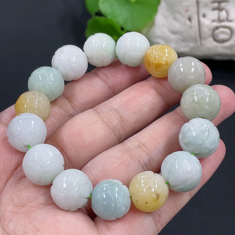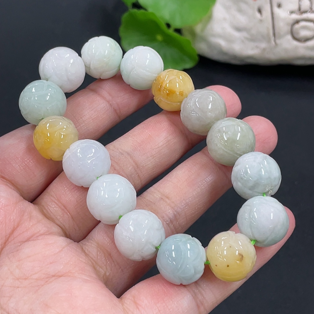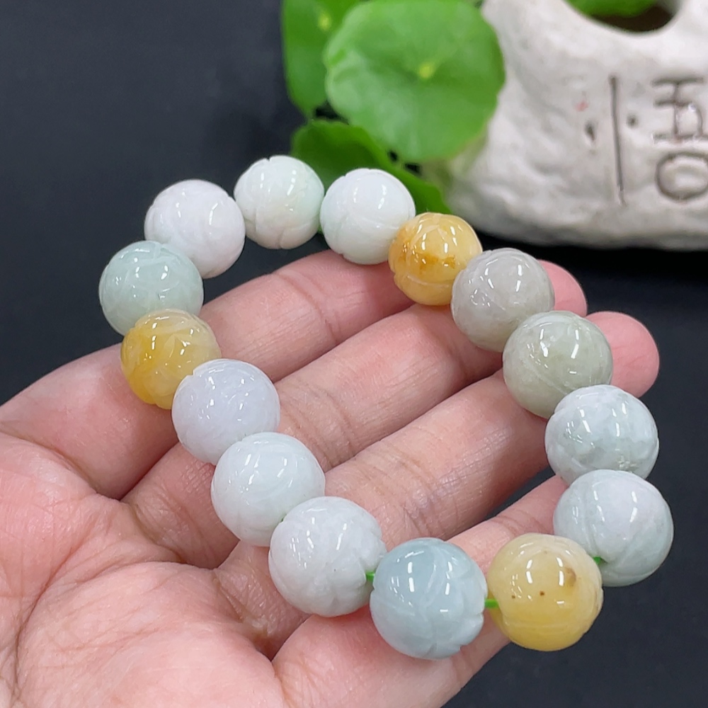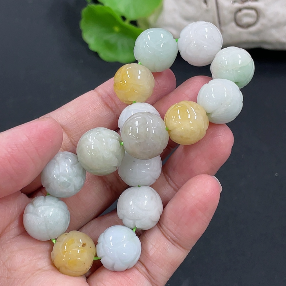 Jadeite Bracelet Approx. 13.1mm Total Weight Approx. 54.8g with Non-Grade A Beads
