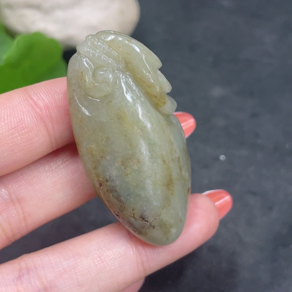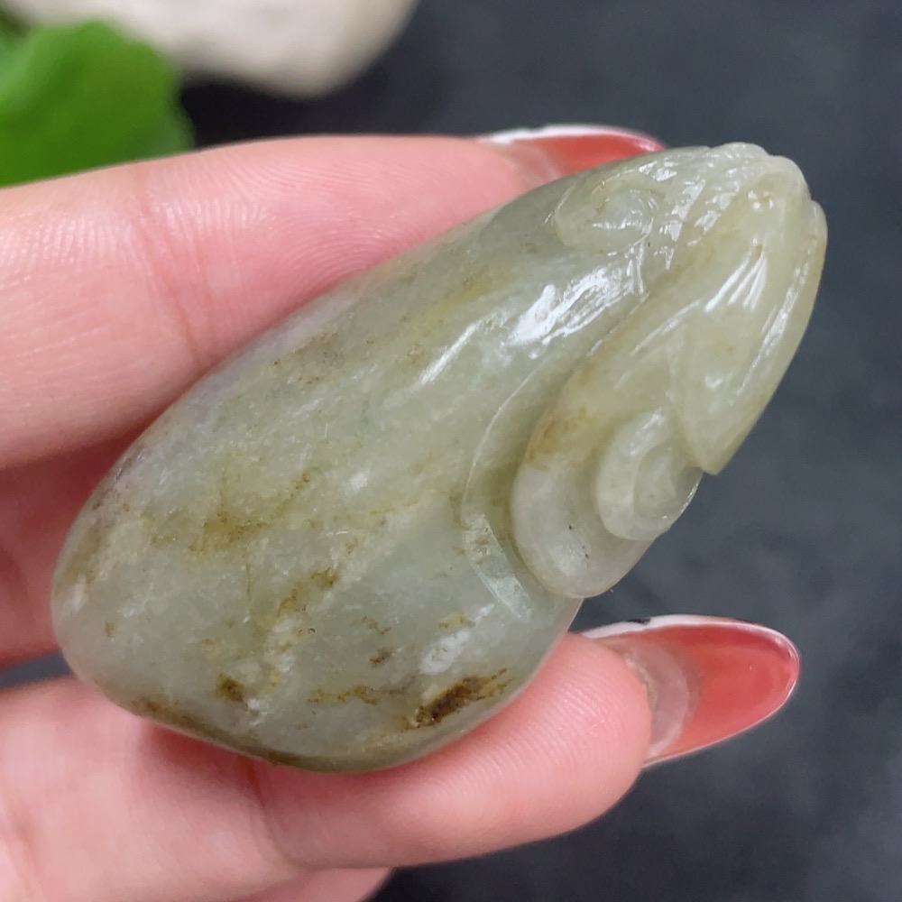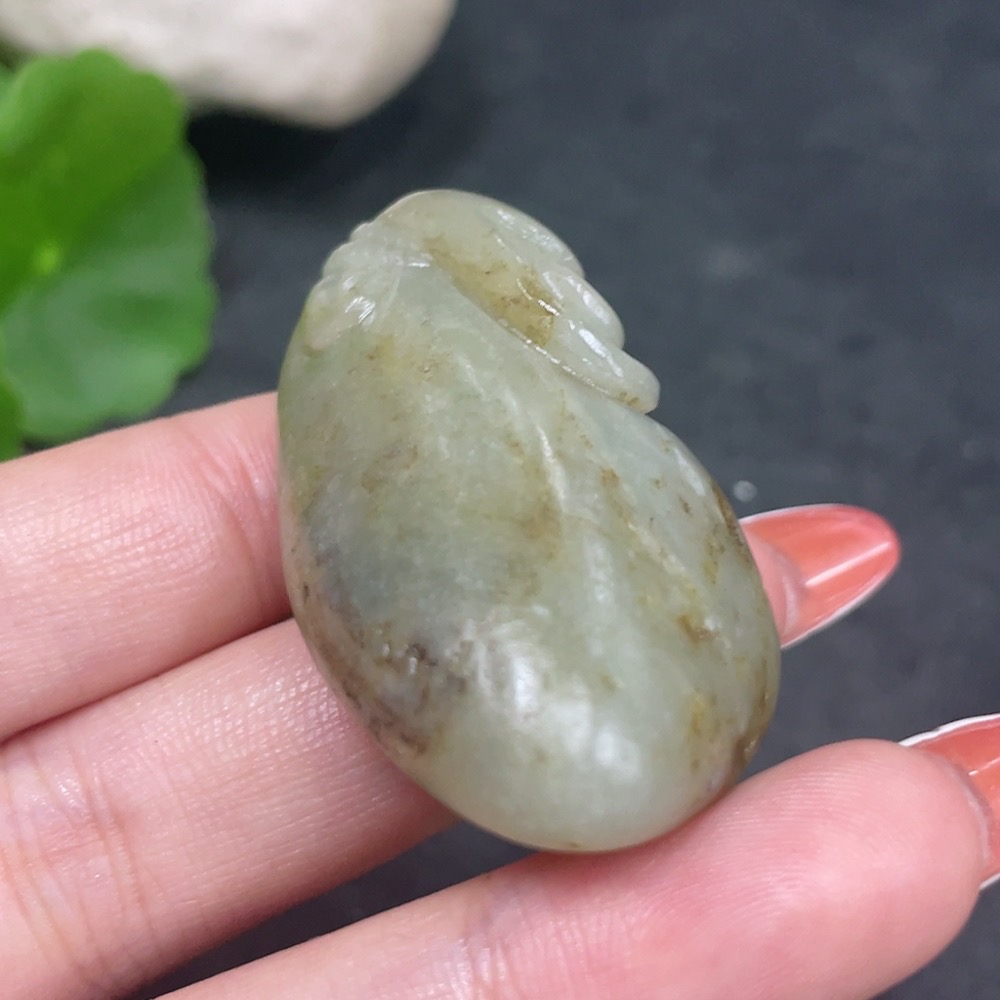 Hetian Jade Pendant, Money Bag, Containing Other Mineral Components, Undetermined Skin Color Origin, Total Weight Approximately 31.9g