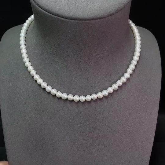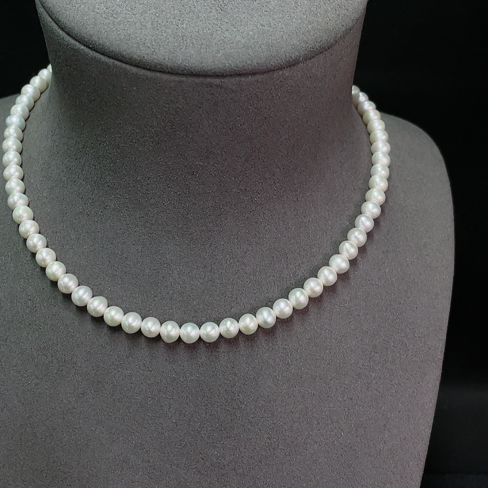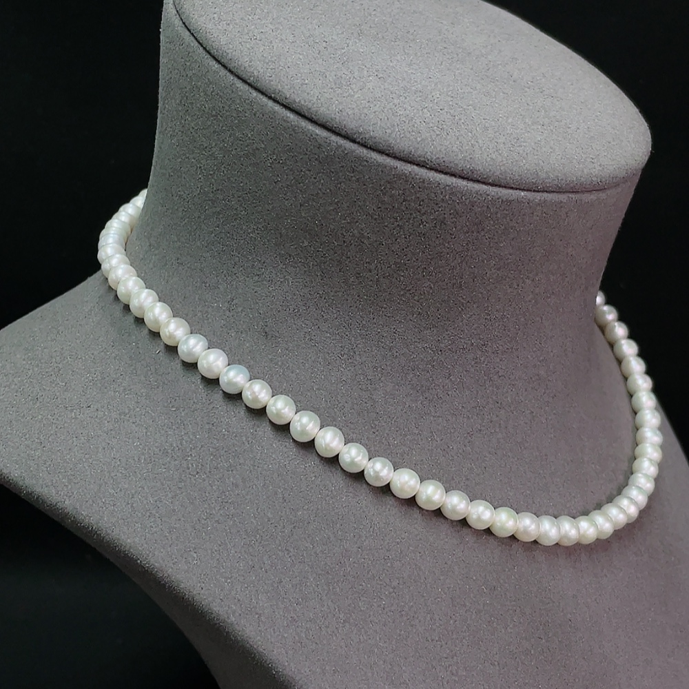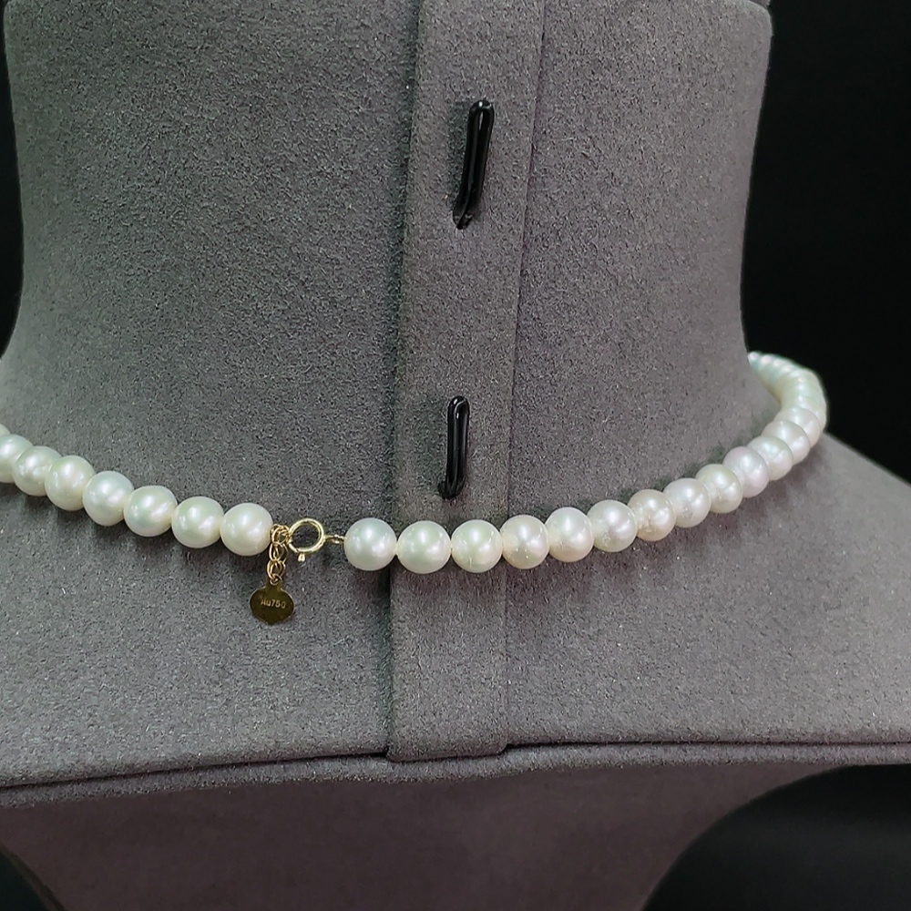 18k Pearl Bead Necklace, Total Weight Approx. 19.52g, Bead Size About 5.8mm