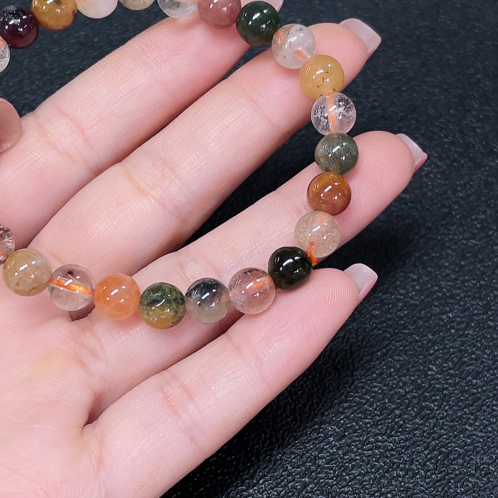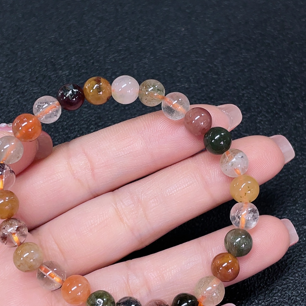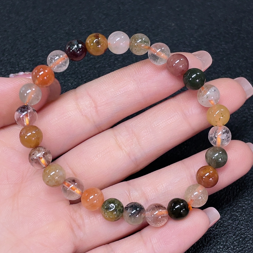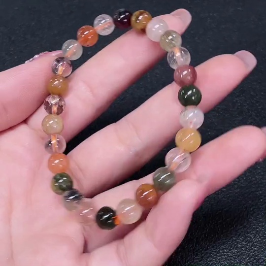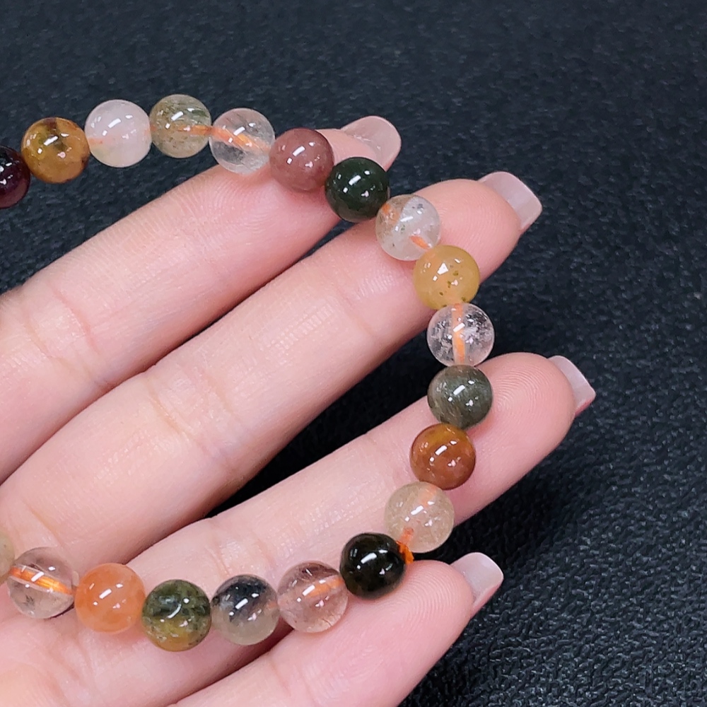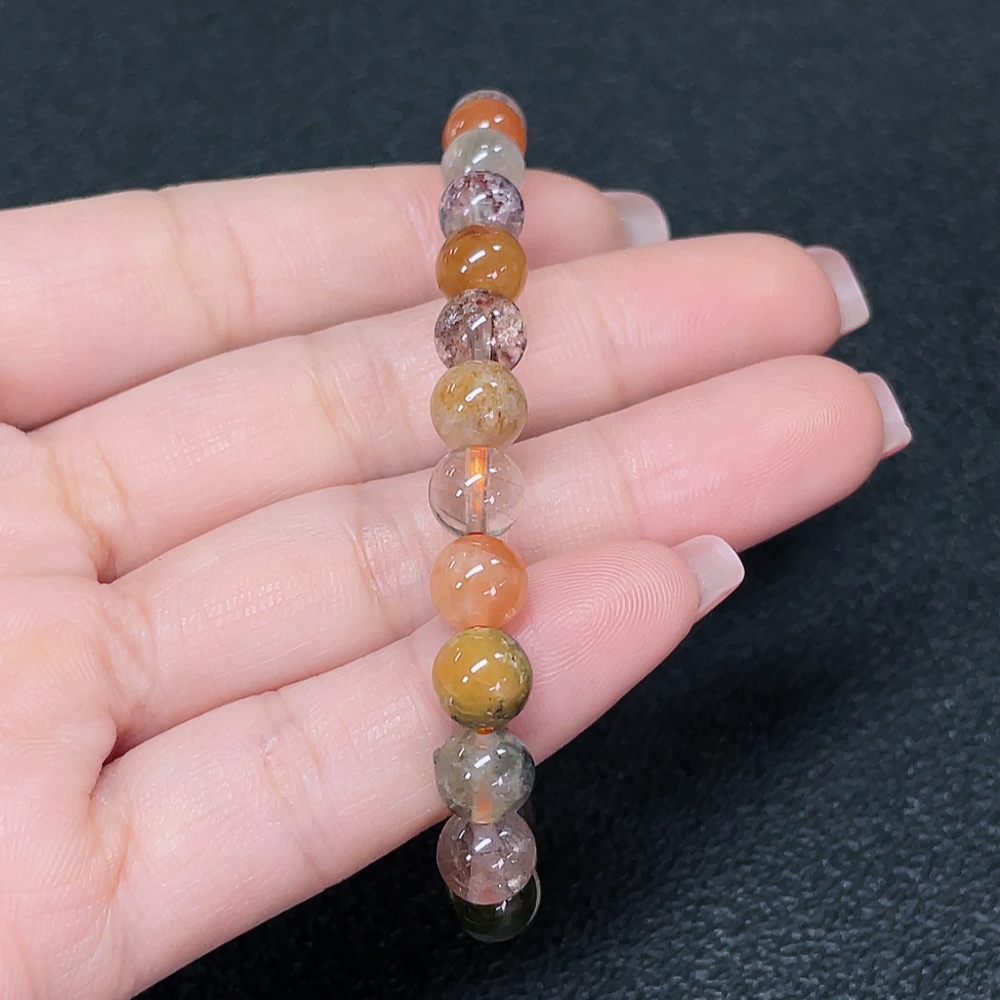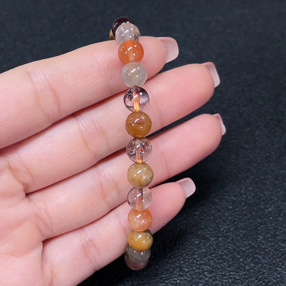 Crystal bracelet, color origin undetermined, organic matter visible, total weight approx. 13.34g, size about 7.2mm (color, filled)