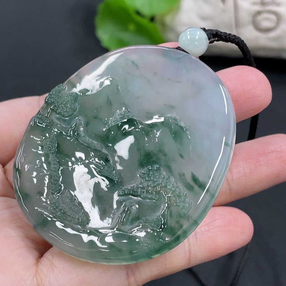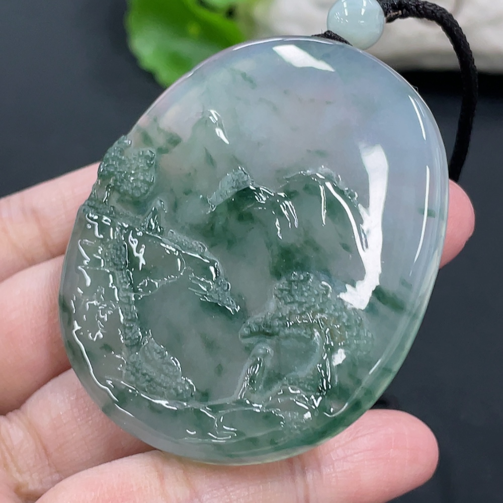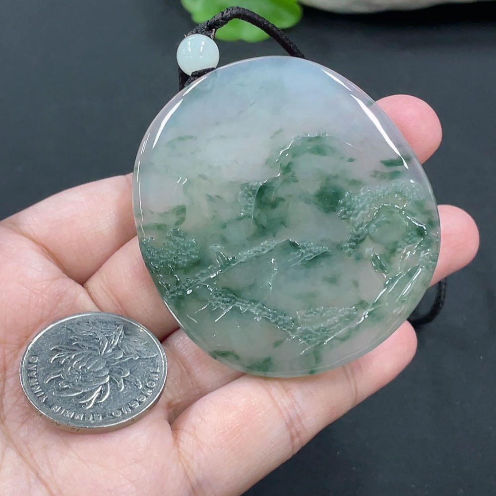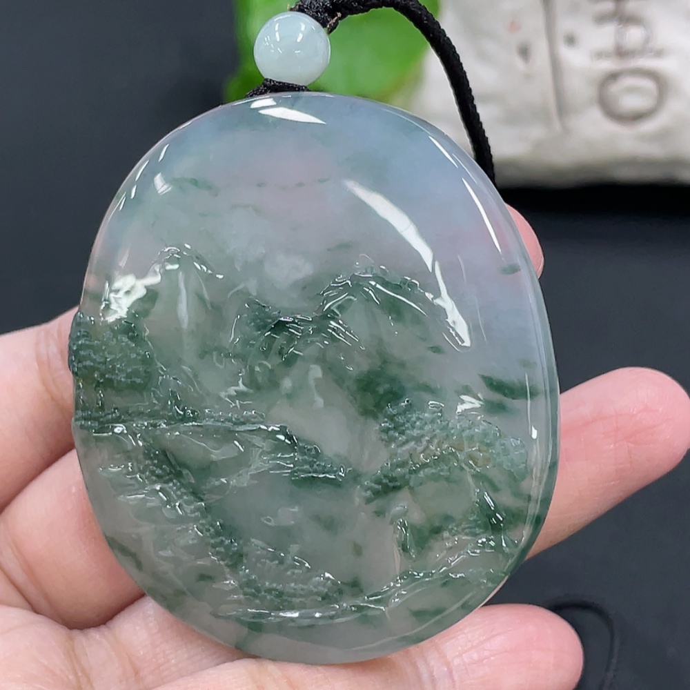 Jadeite Landscape Pendant, Total Weight Approx. 49.7g