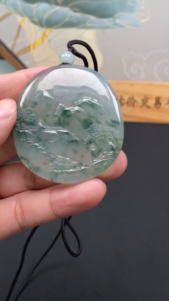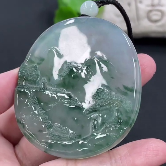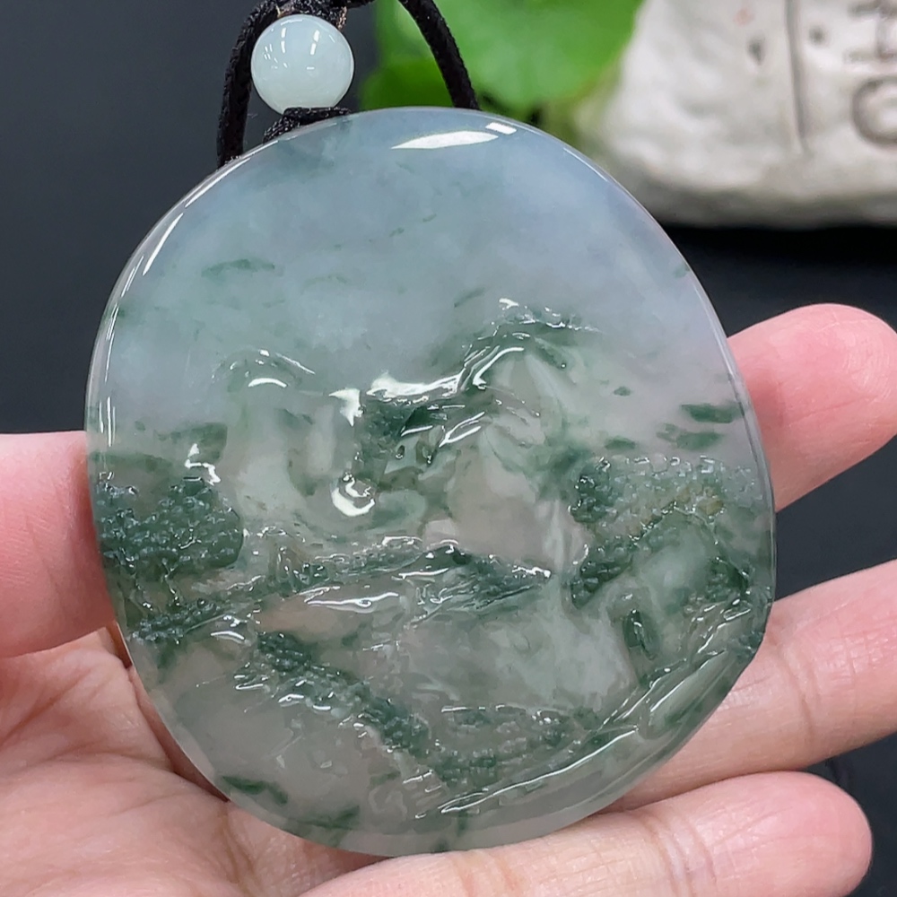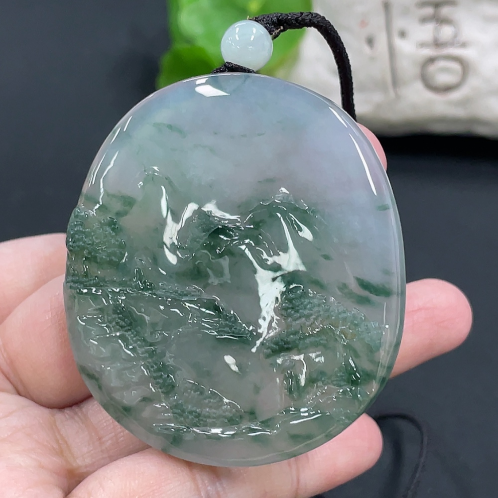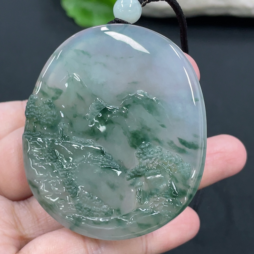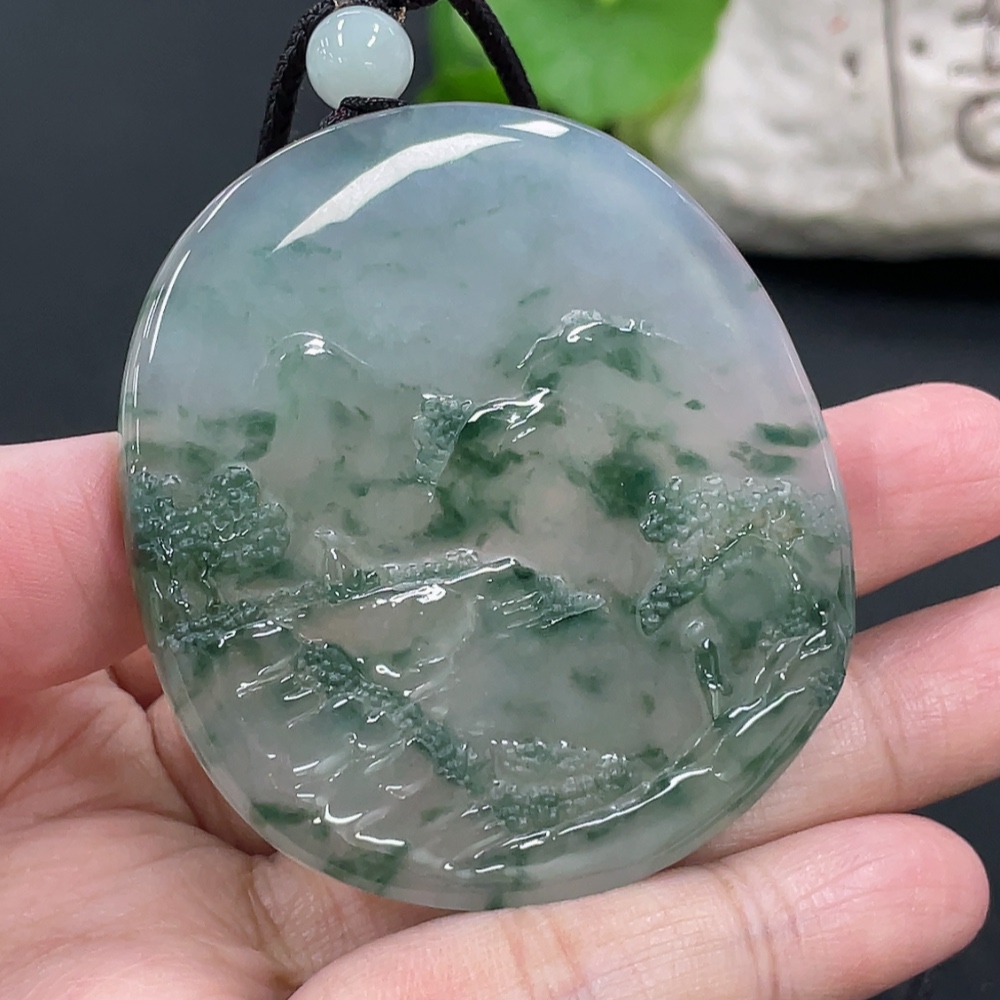 Jadeite Landscape Pendant, Total Weight Approx. 49.7g