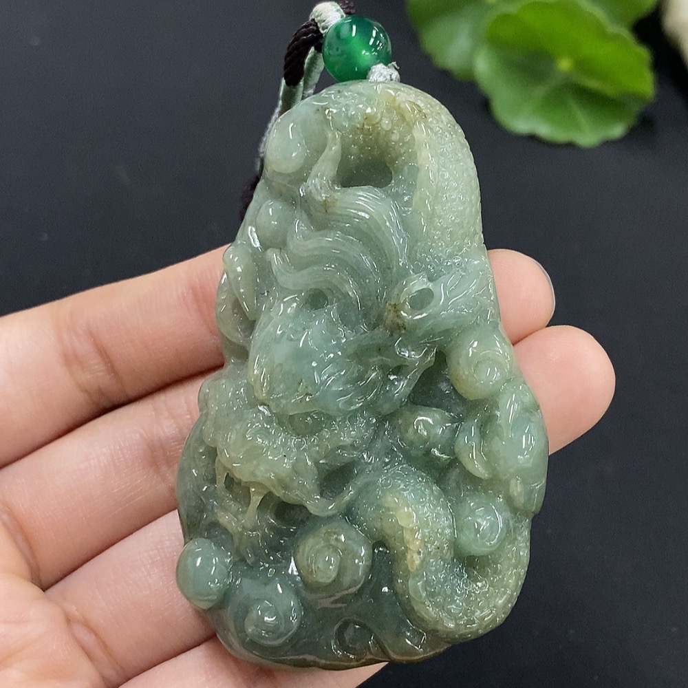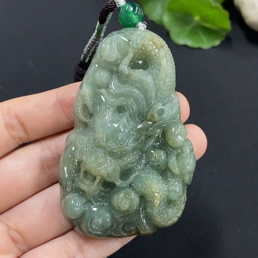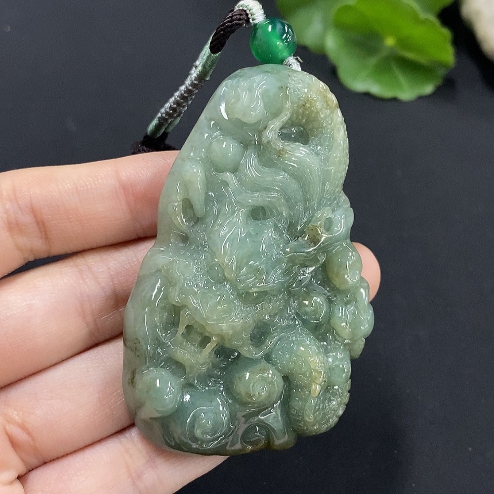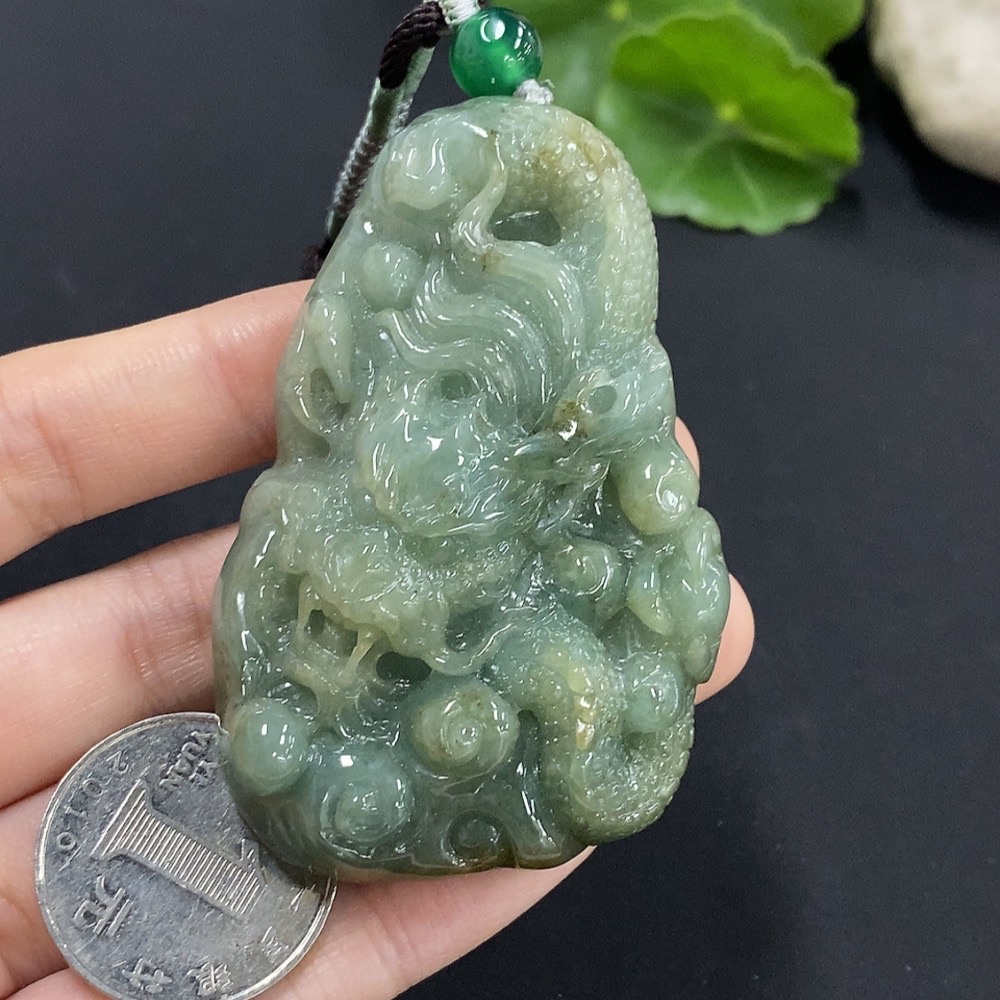 Jadeite Dragon Pendant with Non-Grade A Beads, Total Weight Approx. 69.46g