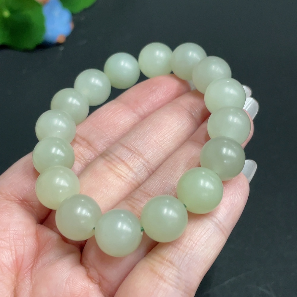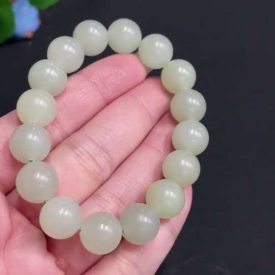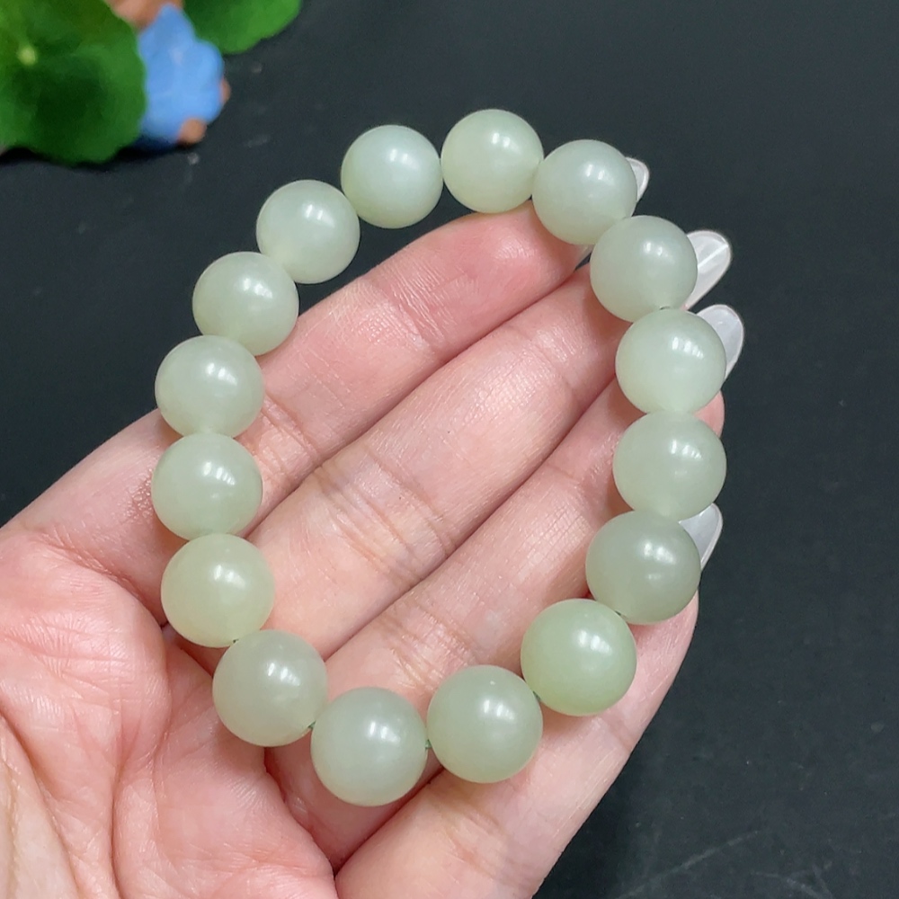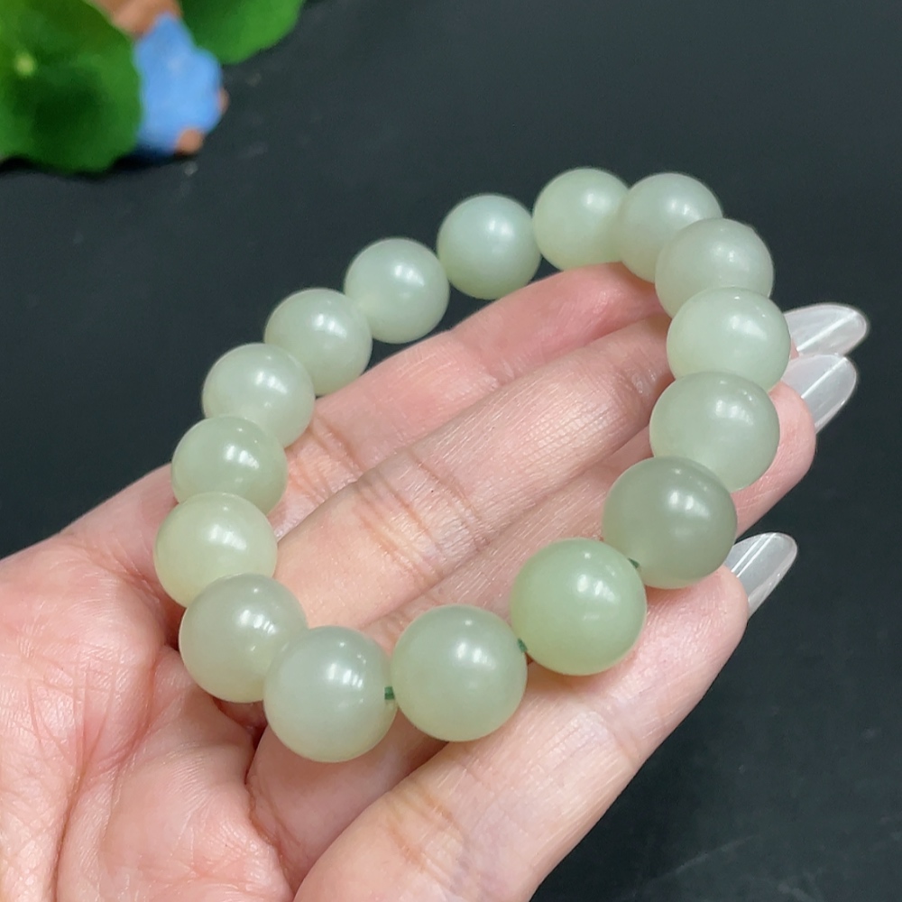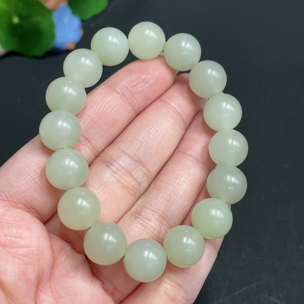 Hetian Jade Bracelet, approx. 11.6mm beads, total weight about 41.2g