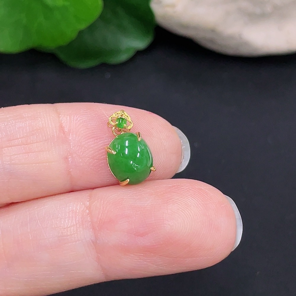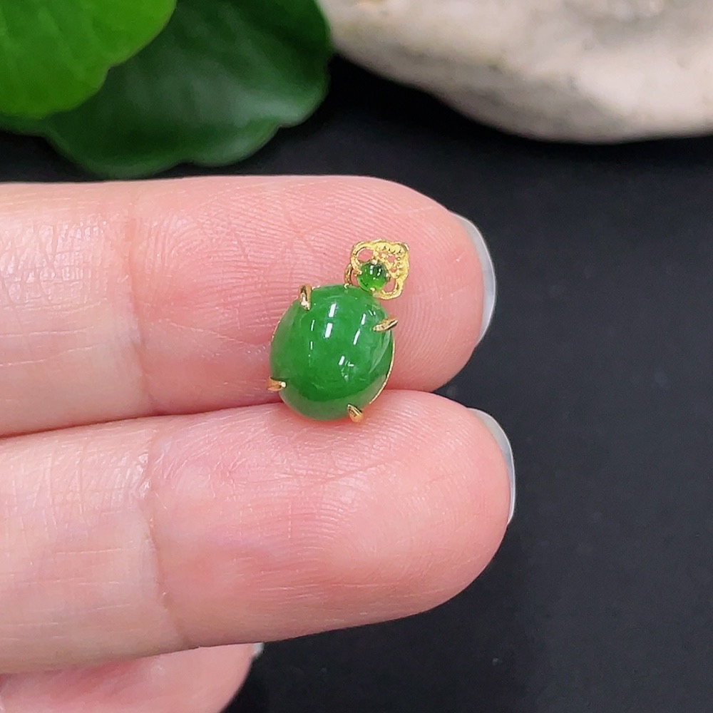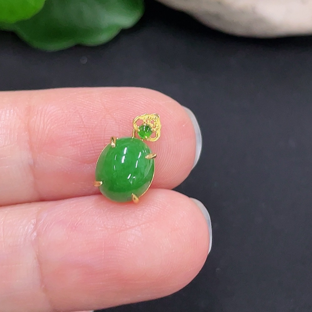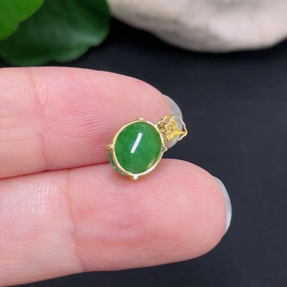 Jadeite Cabochon Pendant with 18K Gold Mount, Total Weight Approx. 0.59g