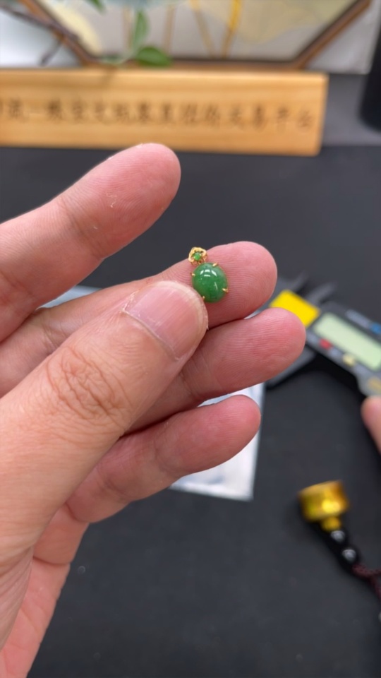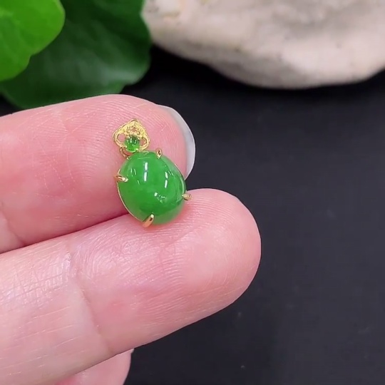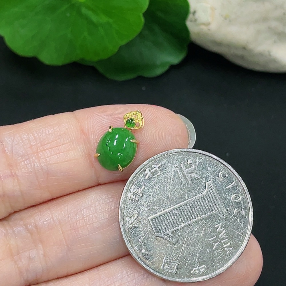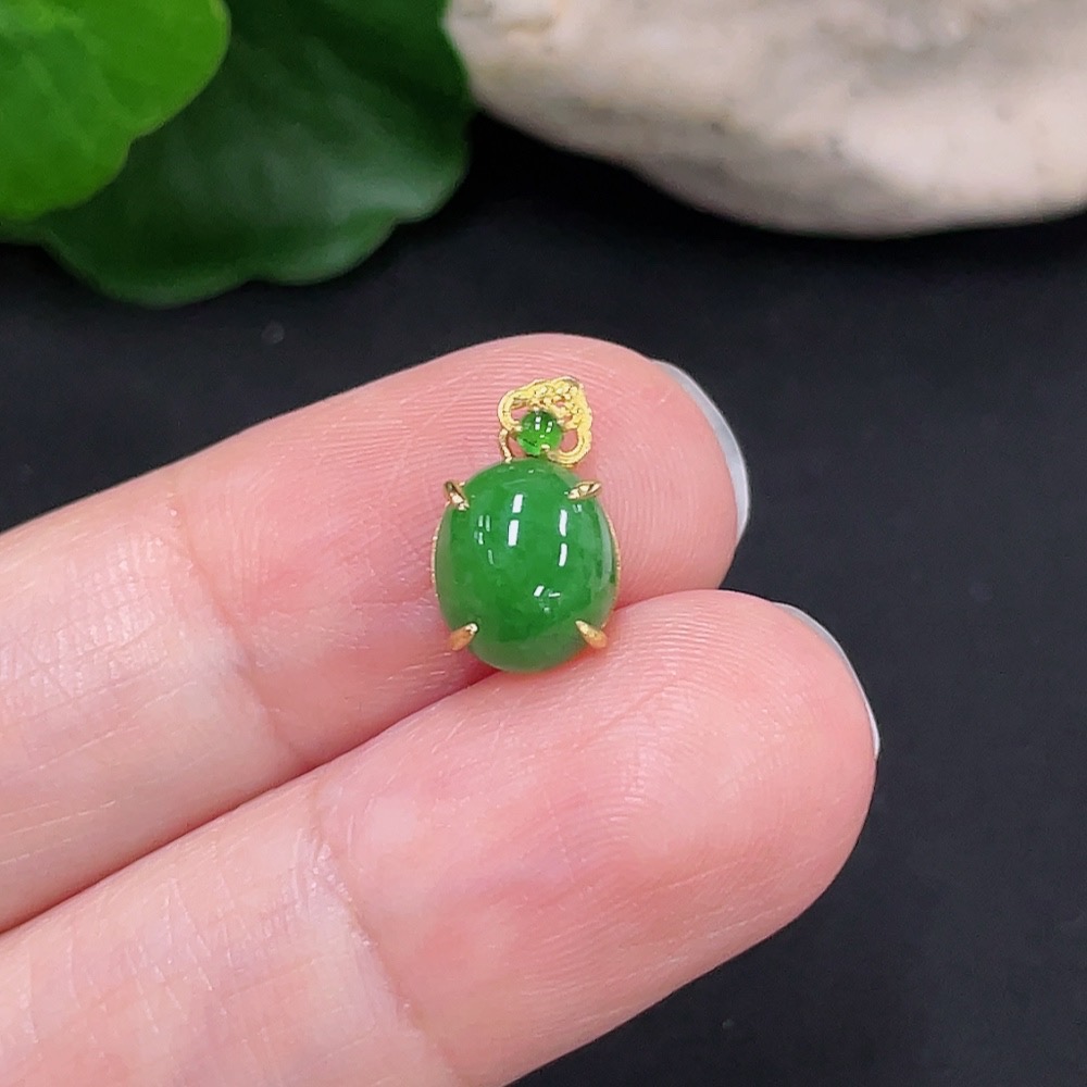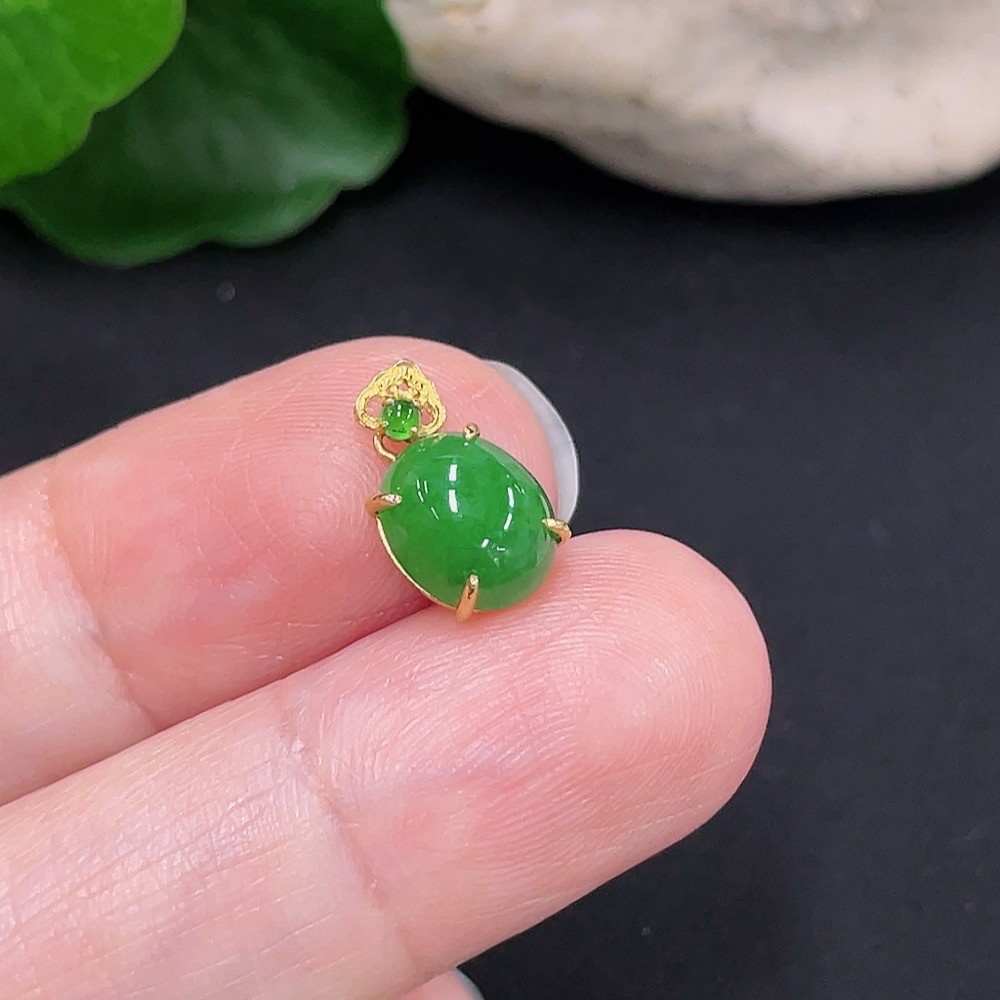 Jadeite Cabochon Pendant with 18K Gold Mount, Total Weight Approx. 0.59g