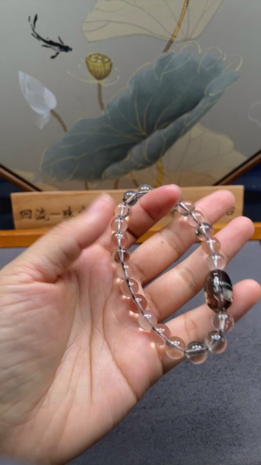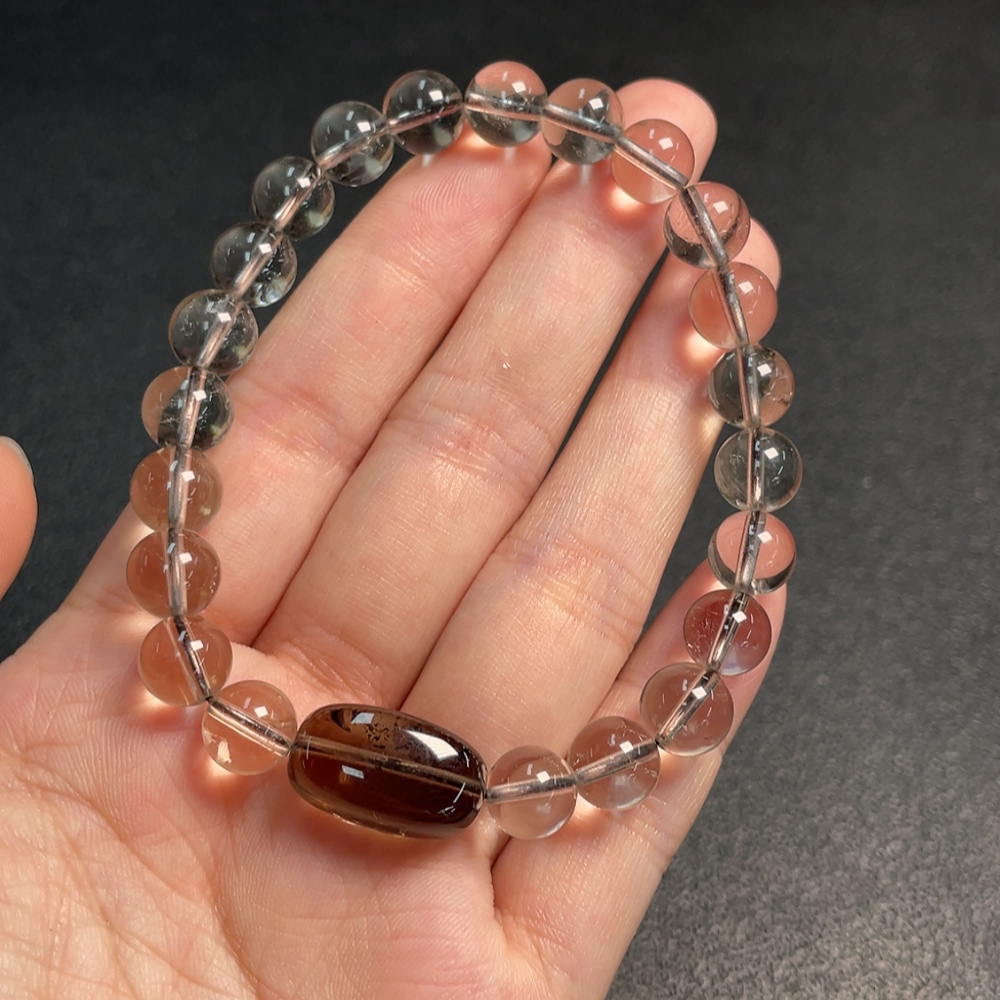 Crystal Bracelet with Visible Organic Matter, Total Weight Approx. 22.80g, Size 8.3-10.1mm