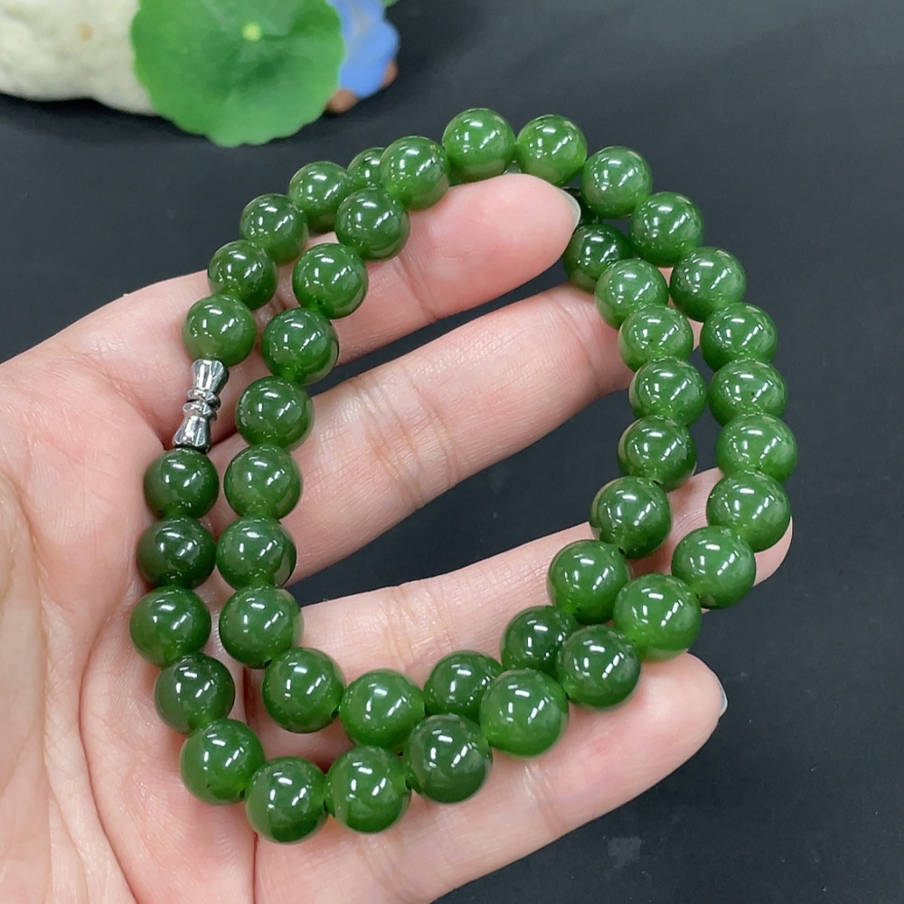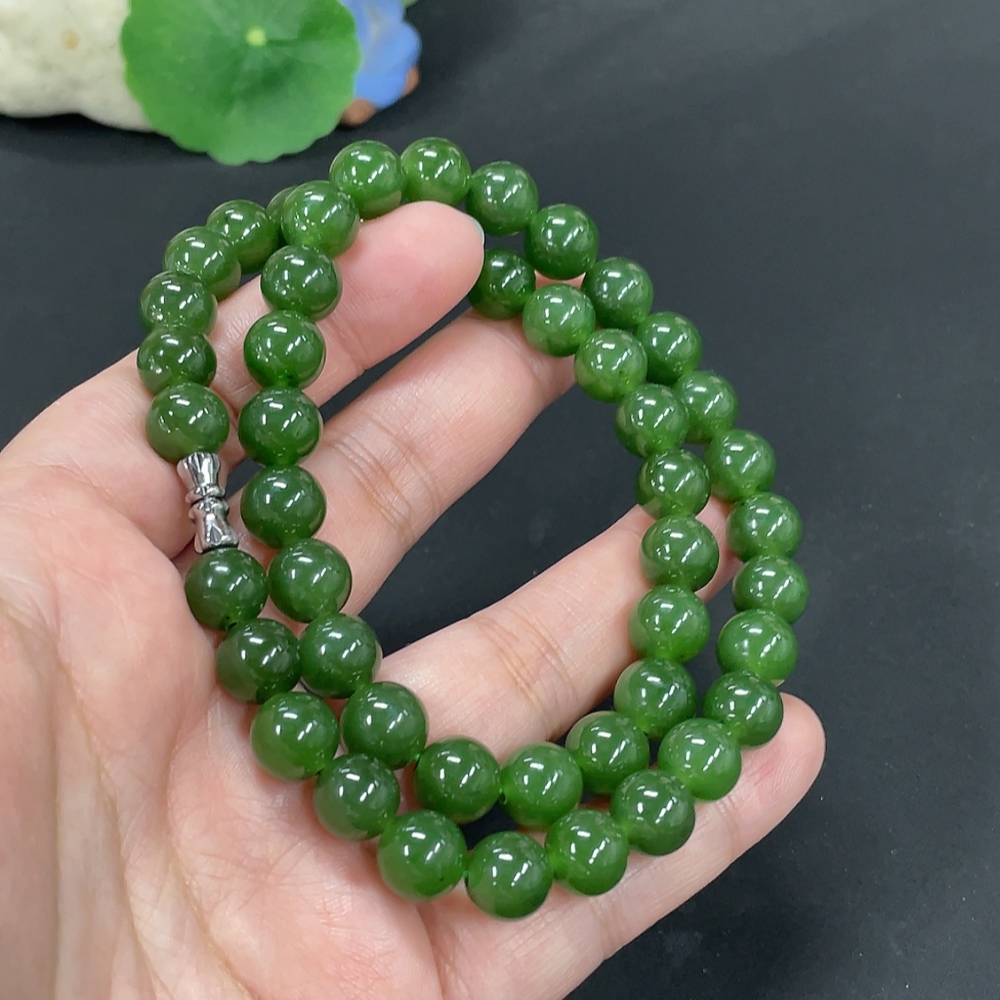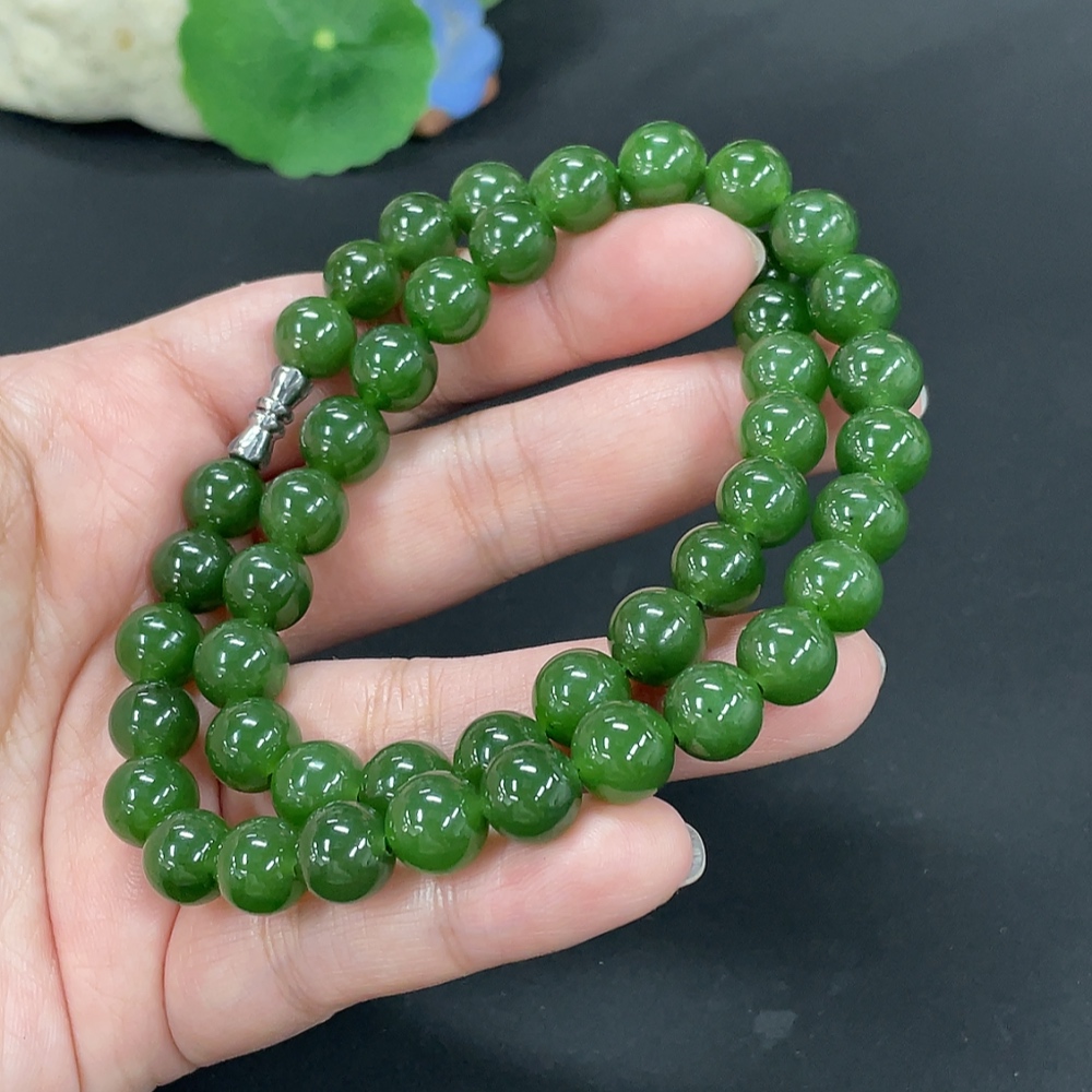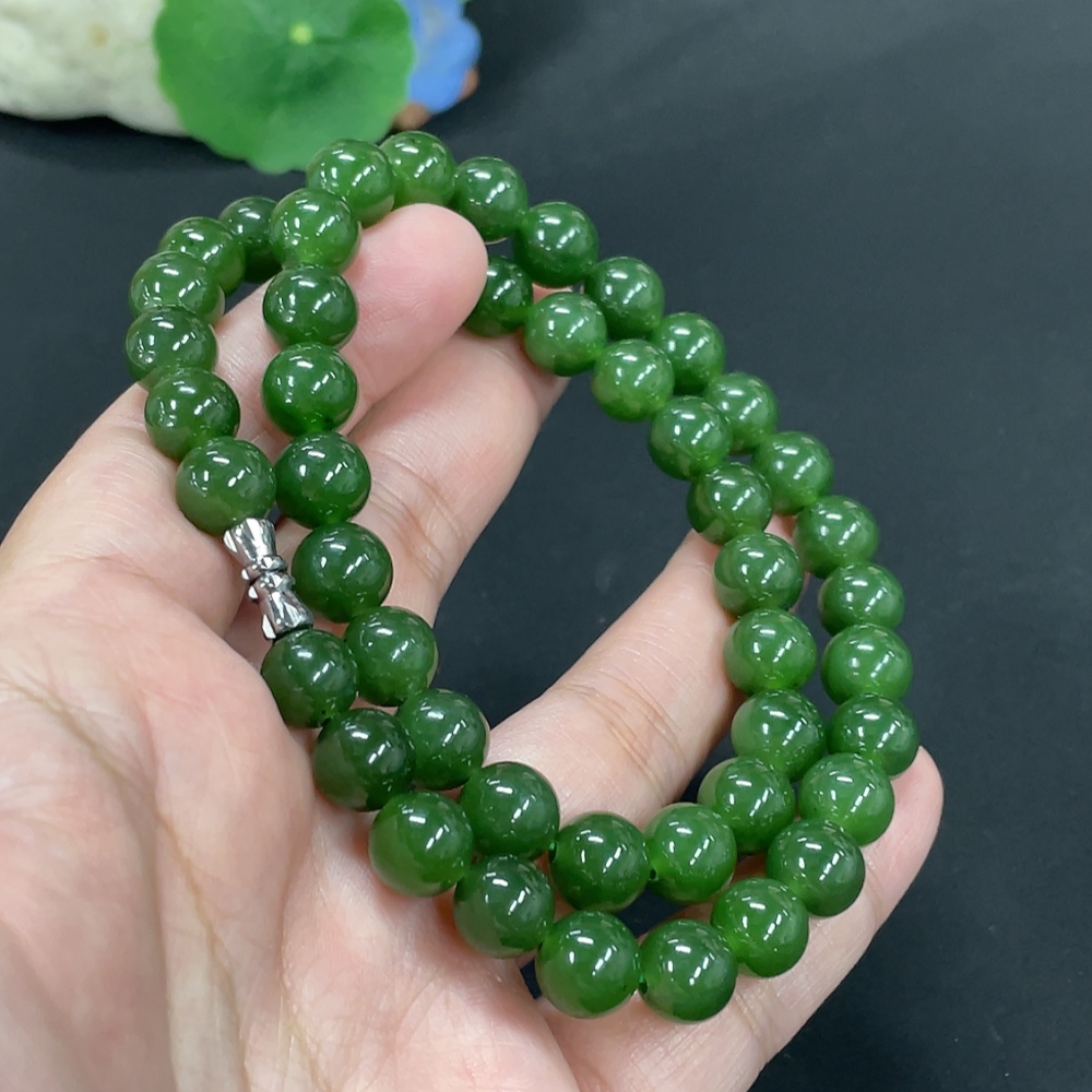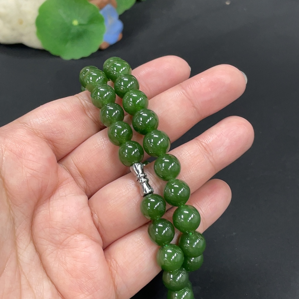 Hetian Jade Bead Necklace, Approx. 9.2mm, Total Weight Approx. 59.8g