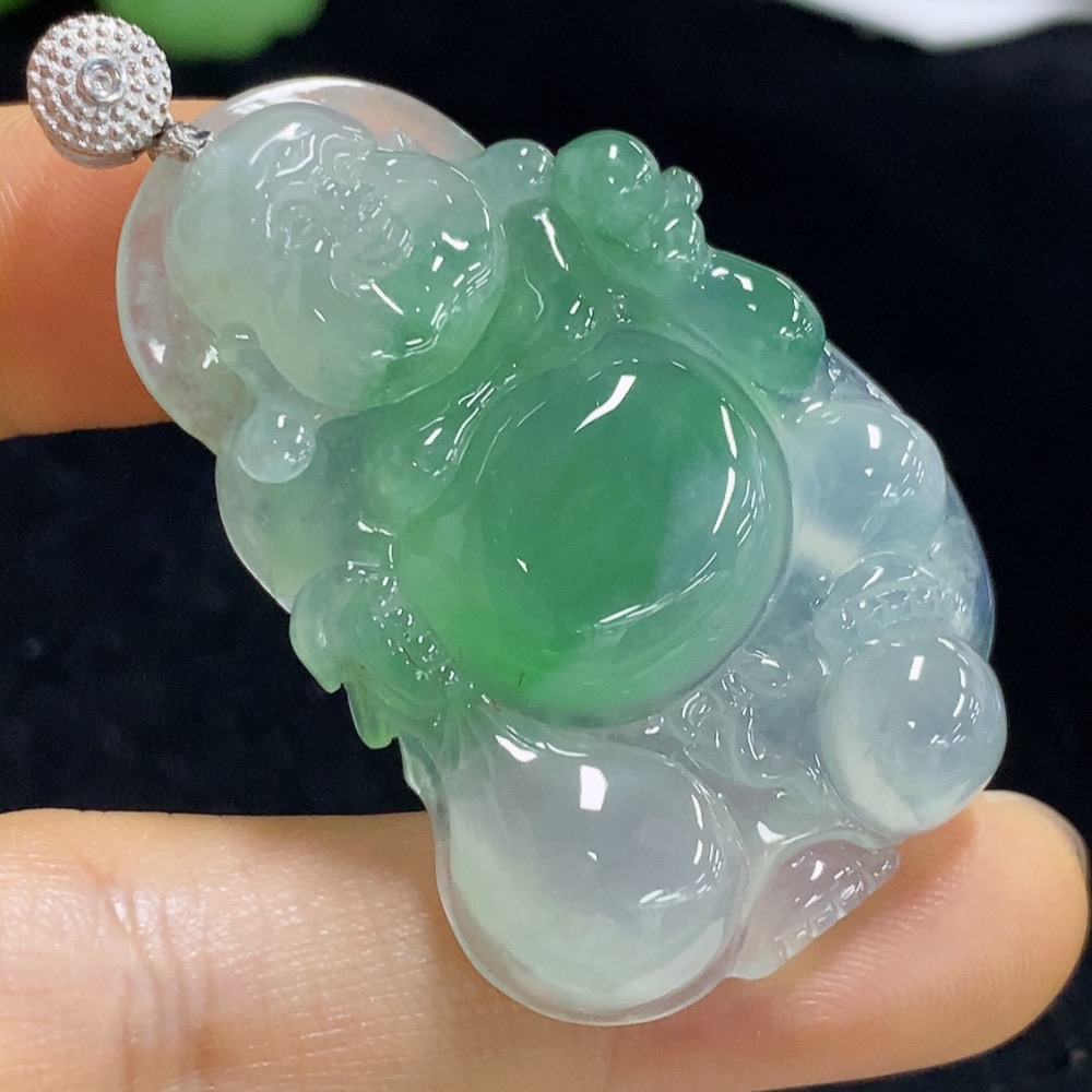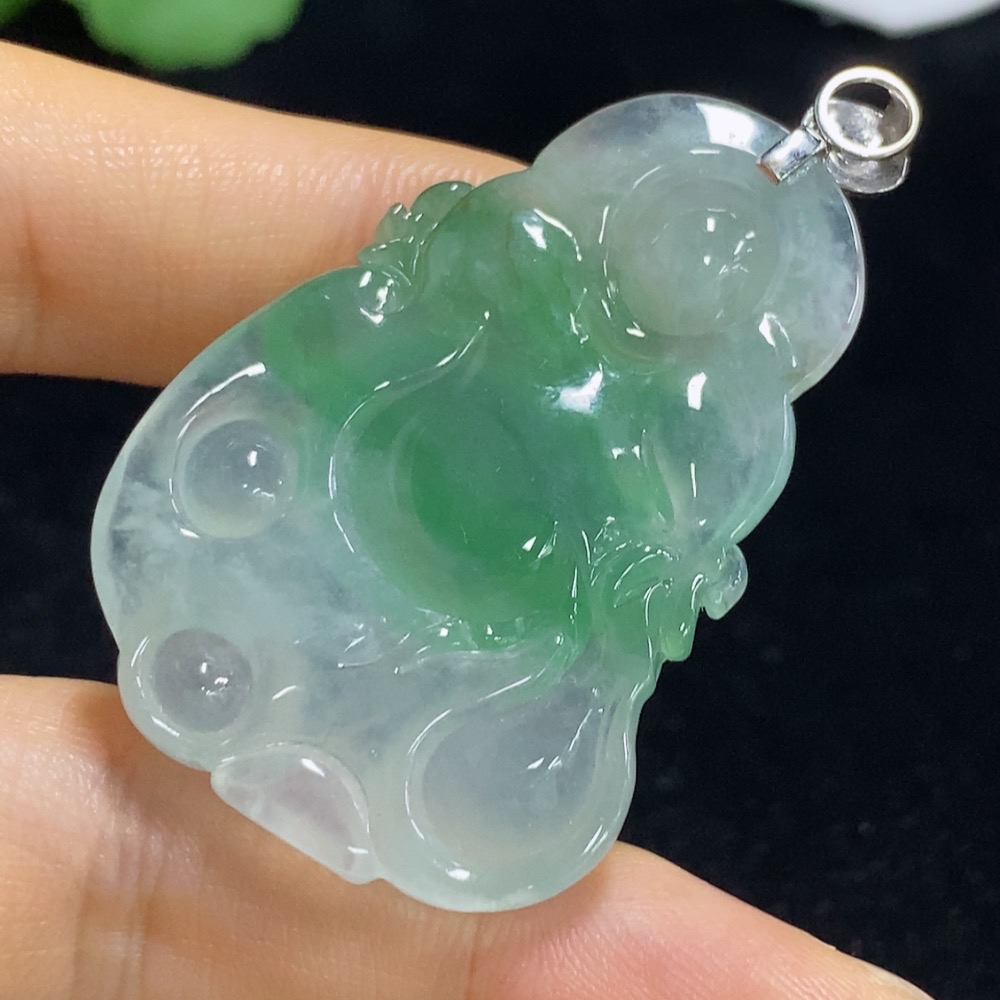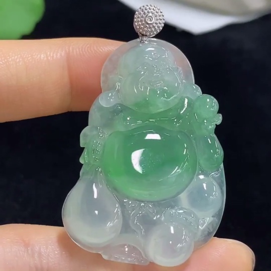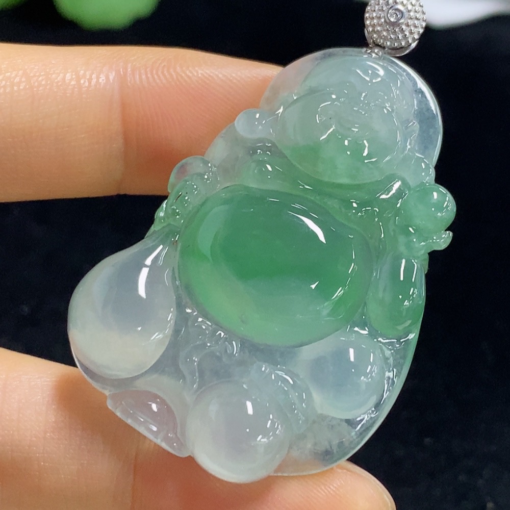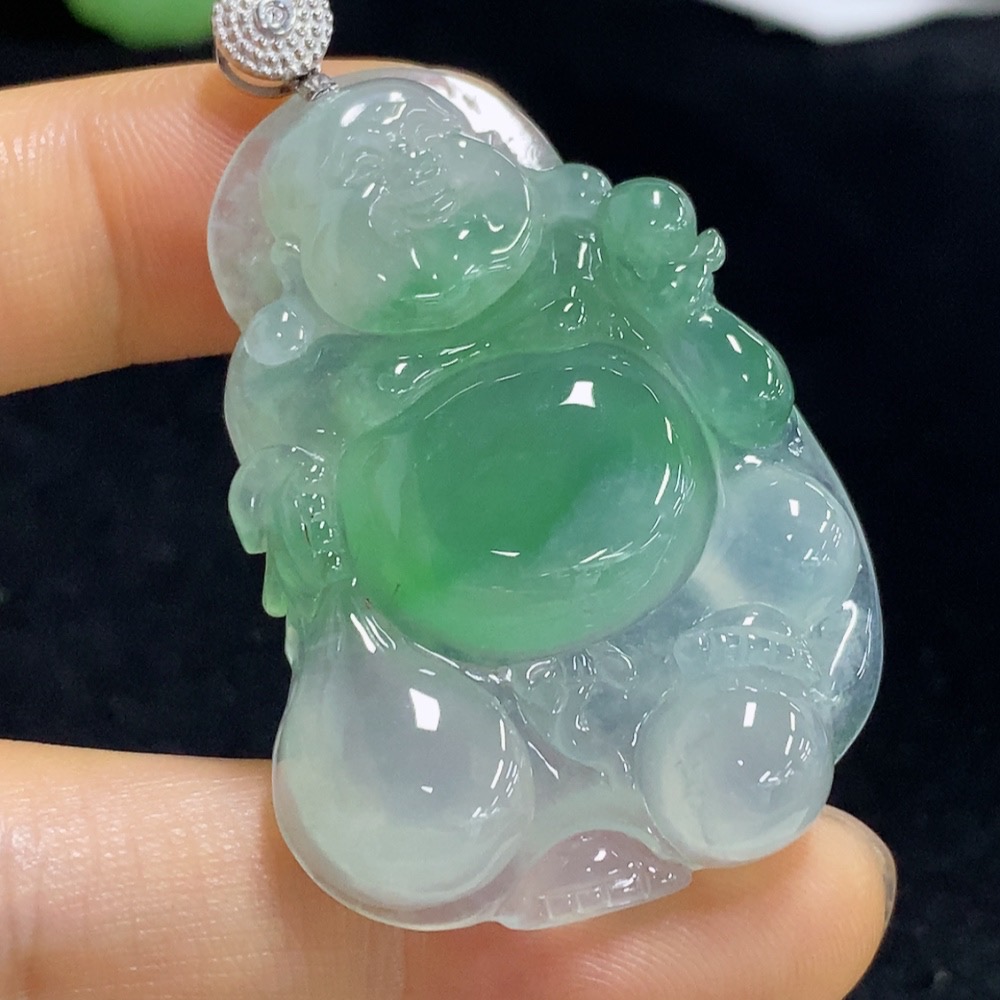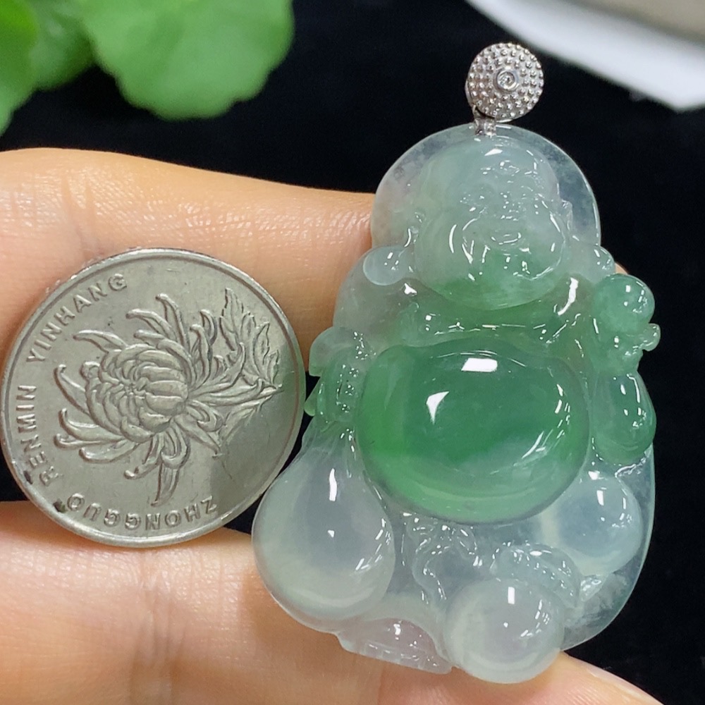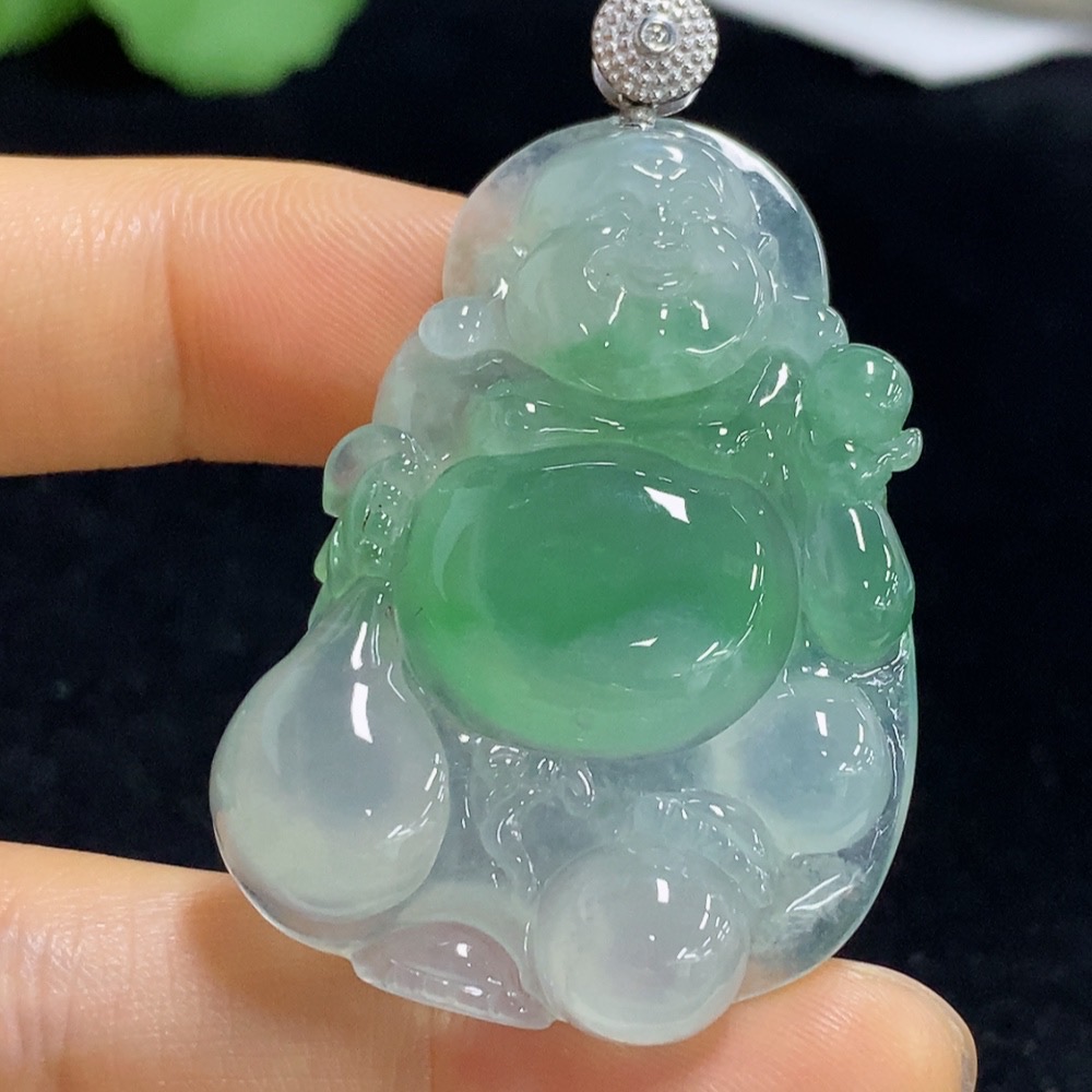 Jadeite Buddha Pendant with 18K Gold and Diamond Accents, Total Weight Approx. 16.84g