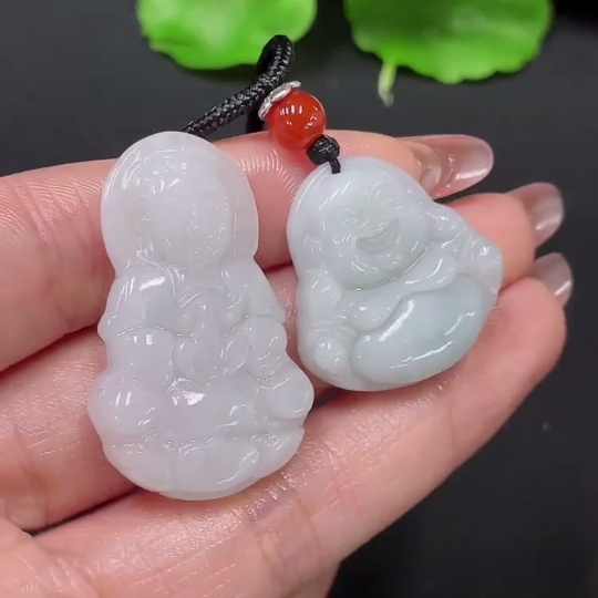 Jadeite Pendants Sell as a Lot Guanyin + Buddha