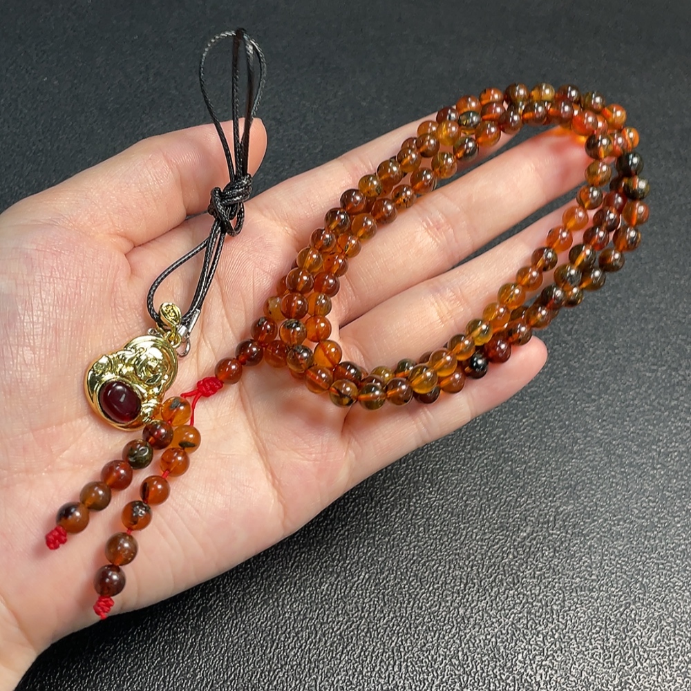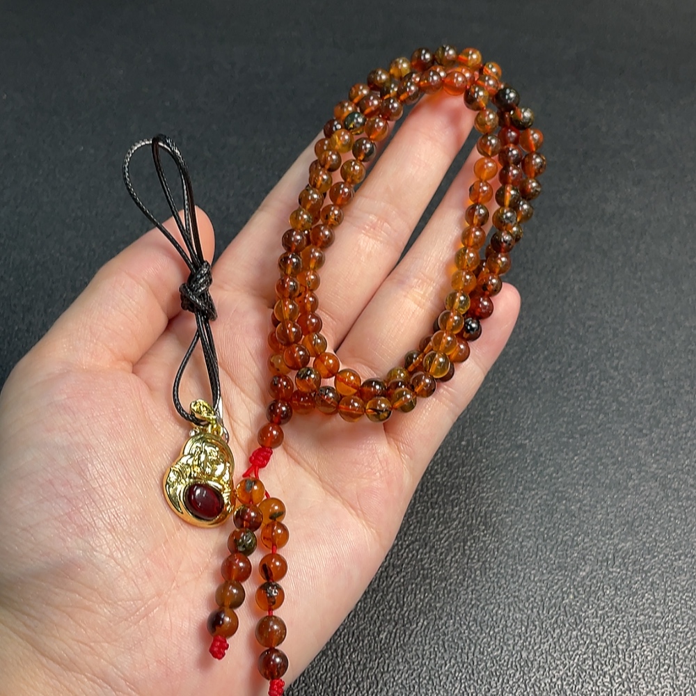 Amber Beeswax Bead Necklace + Pendant Non-Gold Total Weight Approx. 16.37g Sell as a Lot